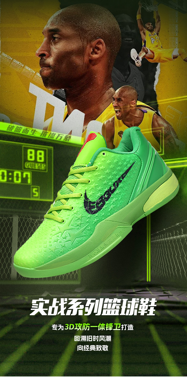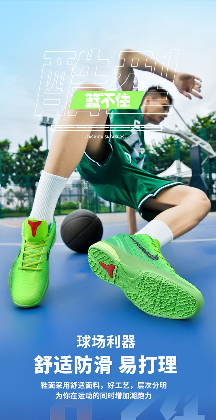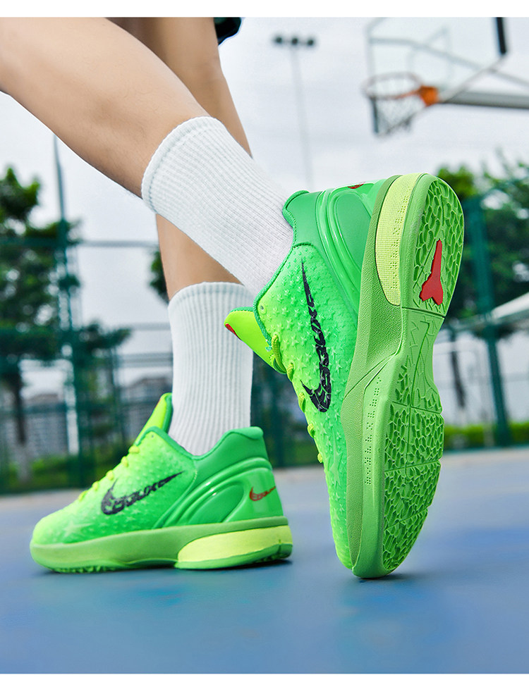 Kobe Bryant 6Th Generation Basketball Shoes Green Hornet Low-Top Practical Children's Sports Shoes 8Th Generation Shock-Absorbing Professional Sports Shoes for Teenagers