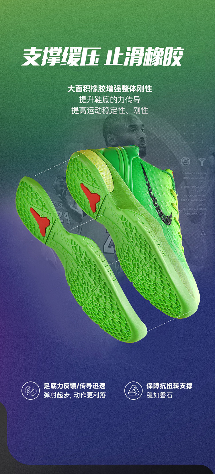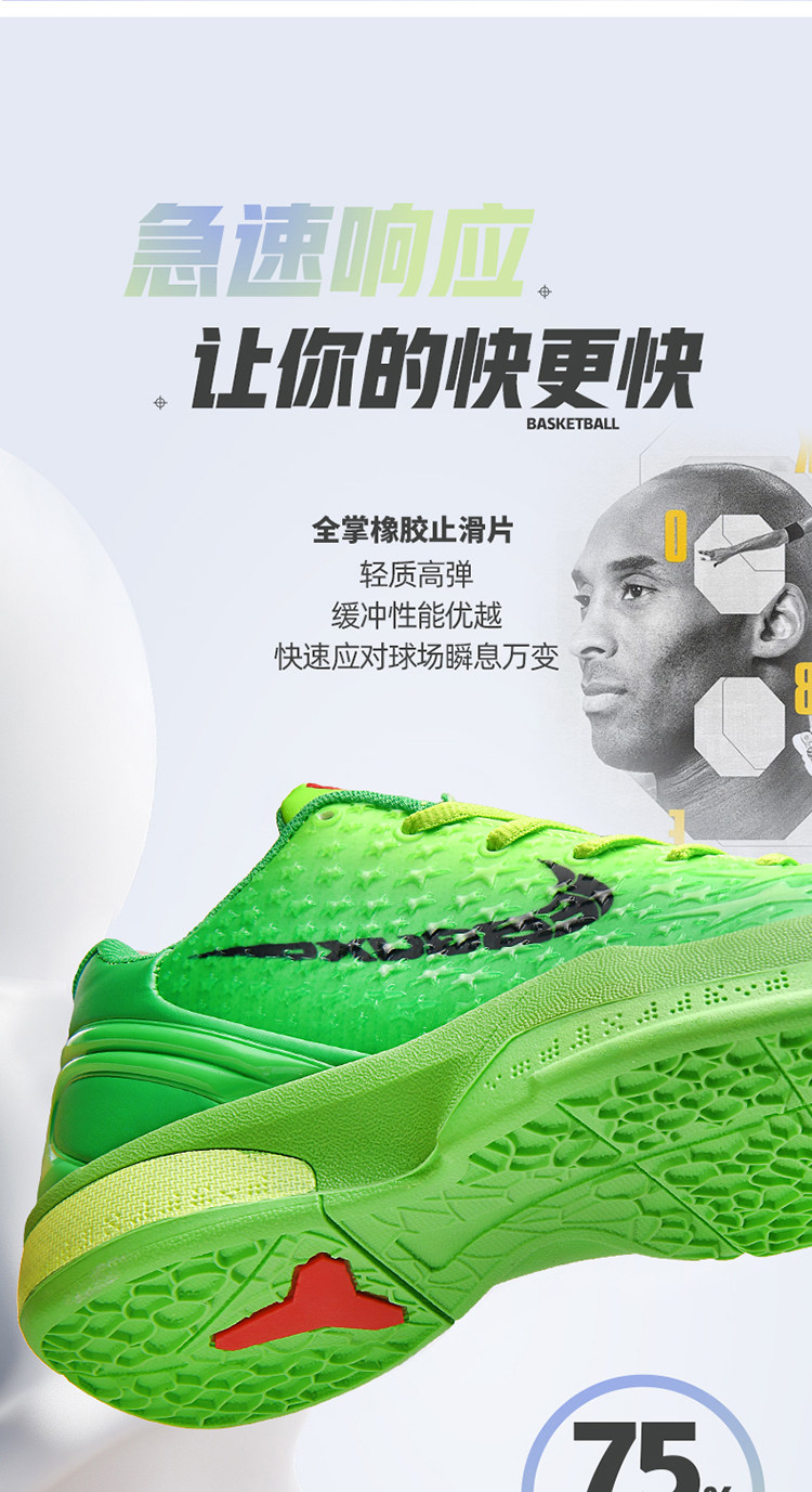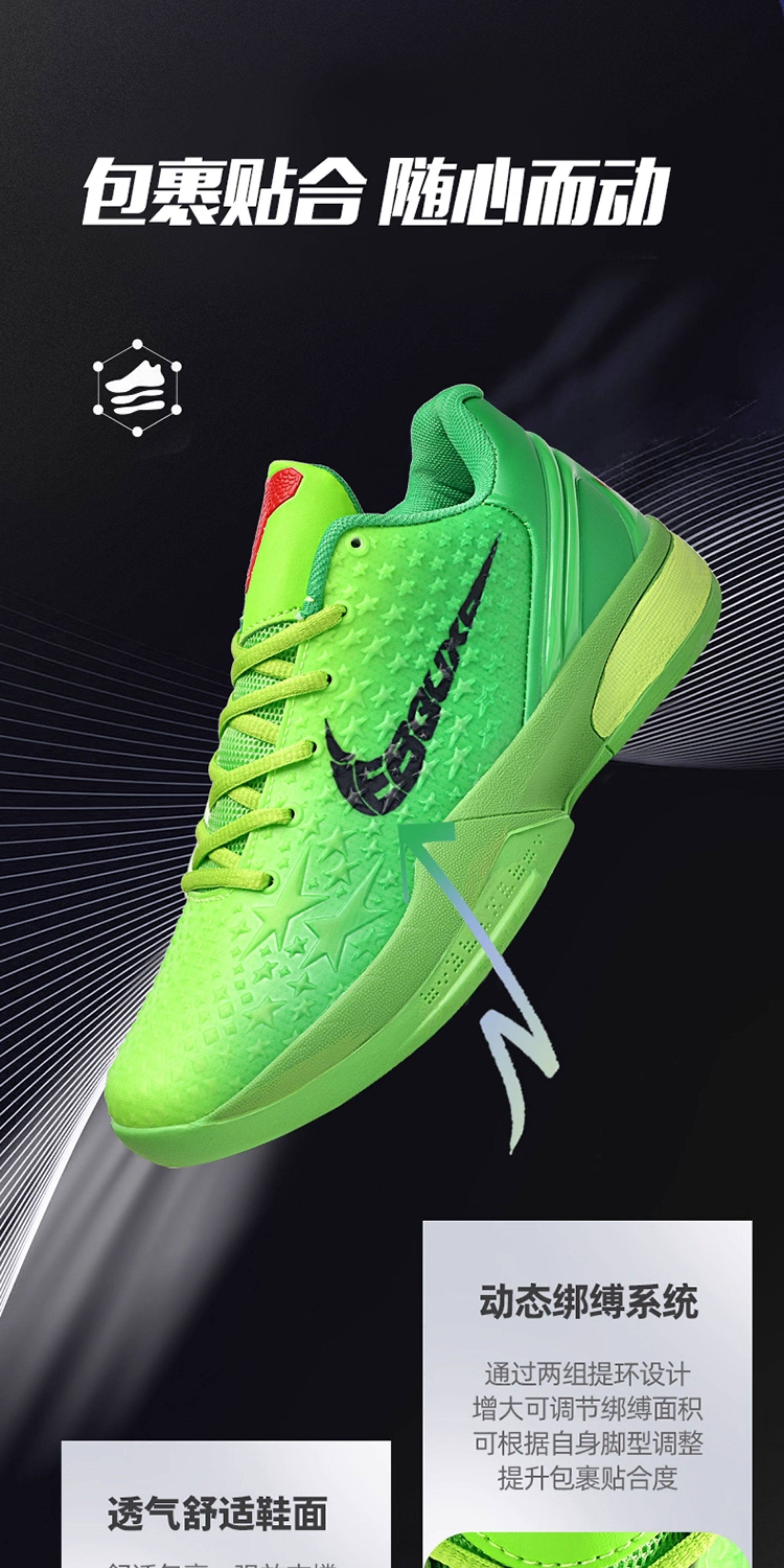 Kobe Bryant 6Th Generation Basketball Shoes Green Hornet Low-Top Practical Children's Sports Shoes 8Th Generation Shock-Absorbing Professional Sports Shoes for Teenagers
