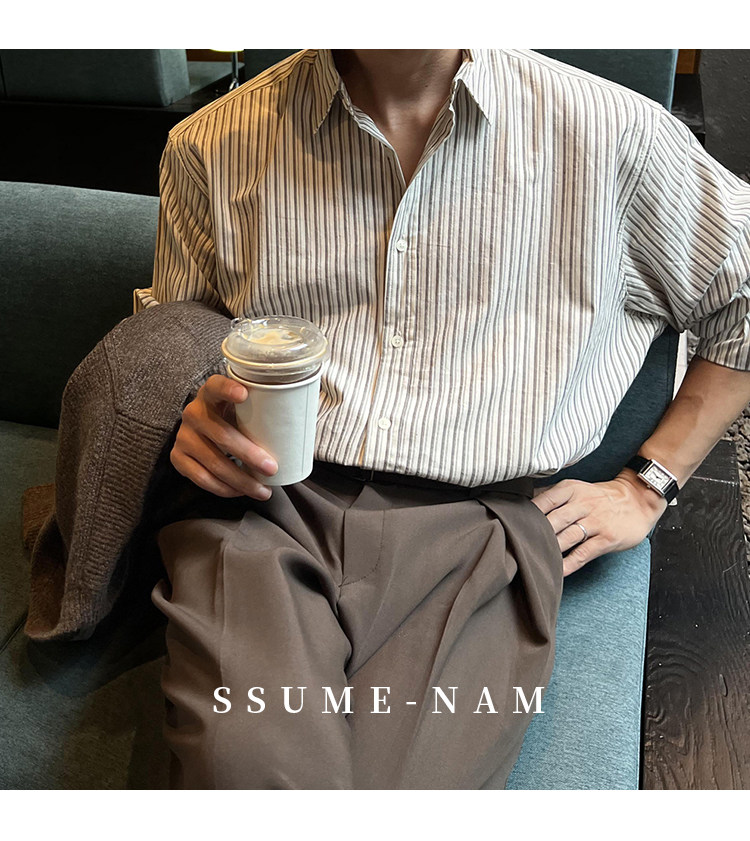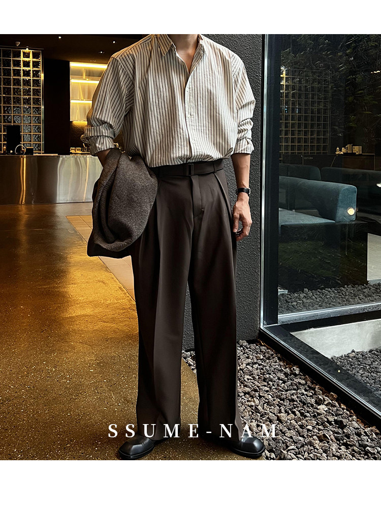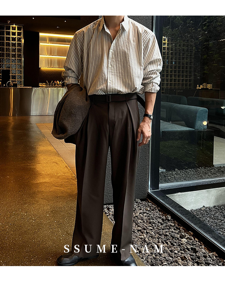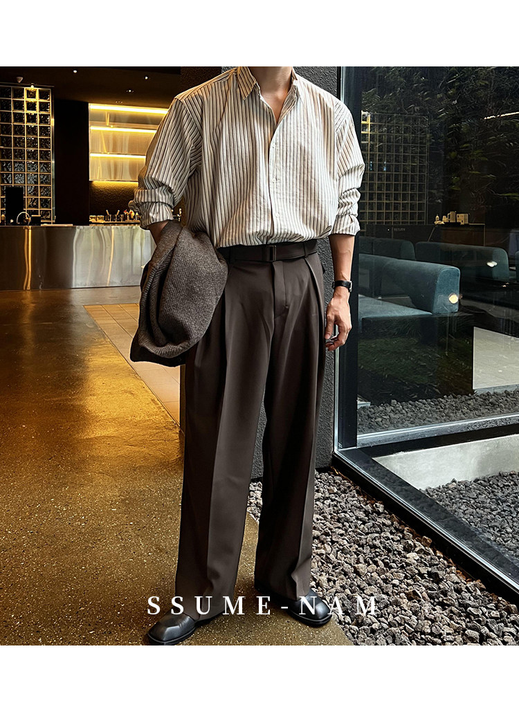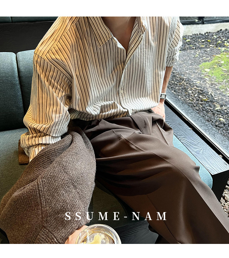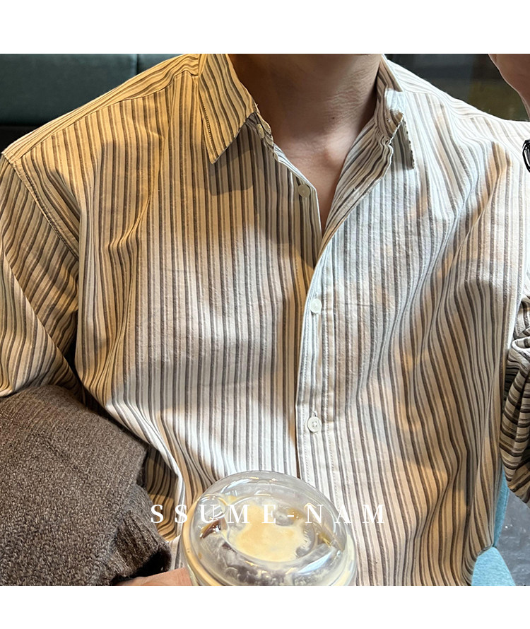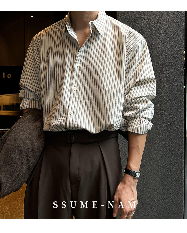 Ssumenam'Classic Stripes' Long-Sleeved Shirt for Men, Loose and Versatile, High-End Feel, Mature Style for Autumn