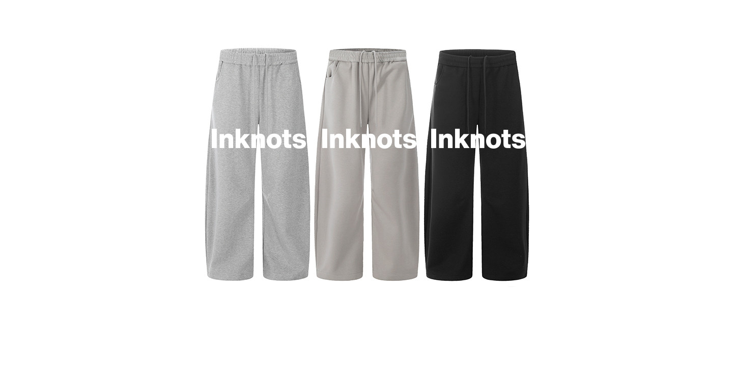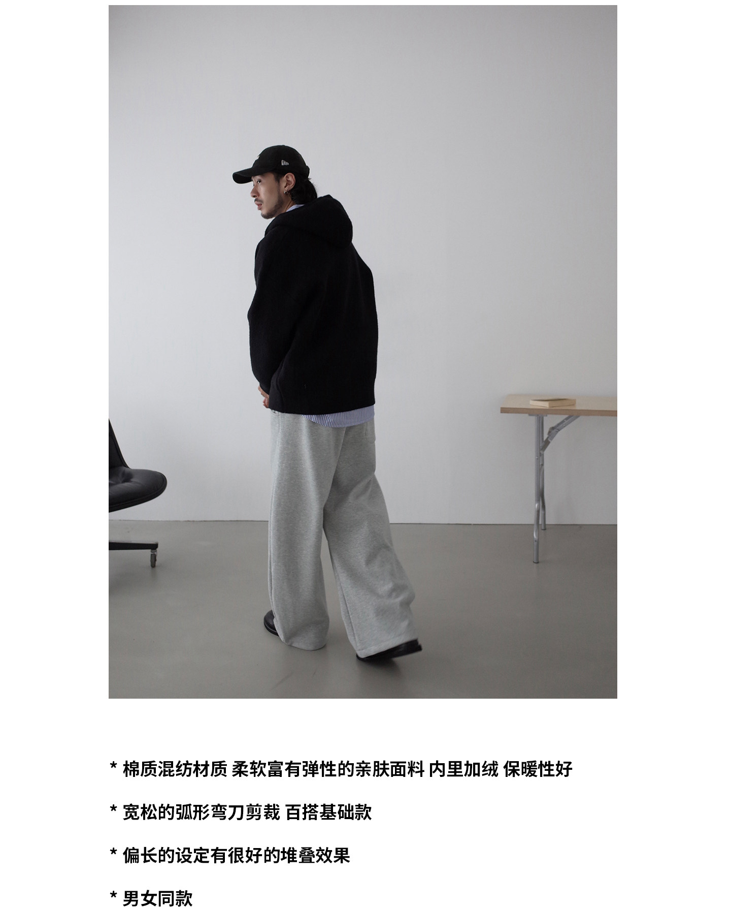 Inknots American Retro Deconstructed Drape Fleece-Lined Curved Hem Casual Sweatpants Unisex Loose Wide-Leg Straight Pants Trendy