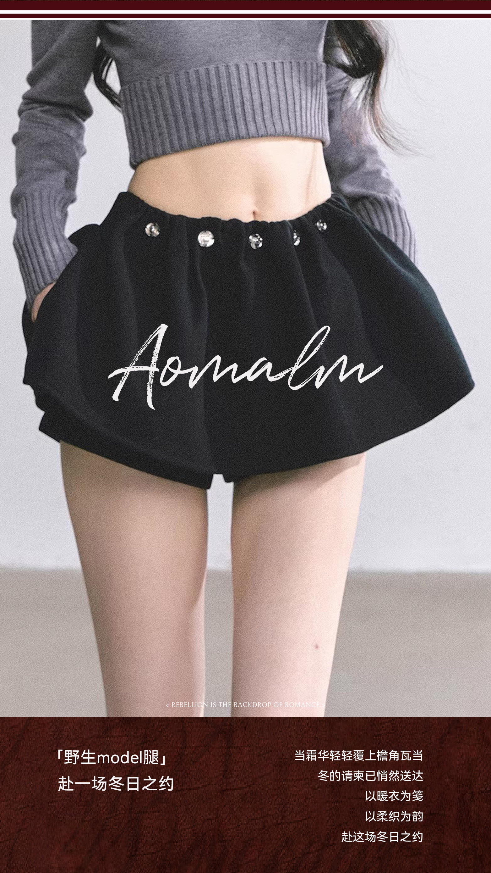 Aomalm Young Girl's Wild Model Legs% French Woolen Puffy Skirt Women's Autumn Umbrella Skirt Hot Girl Short Skirt
