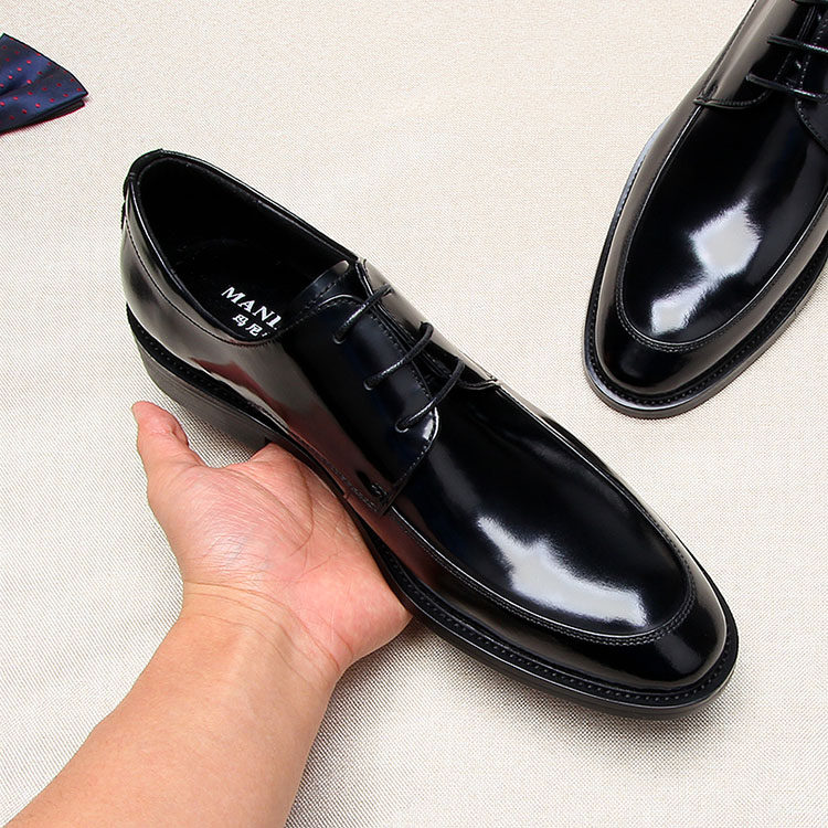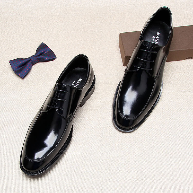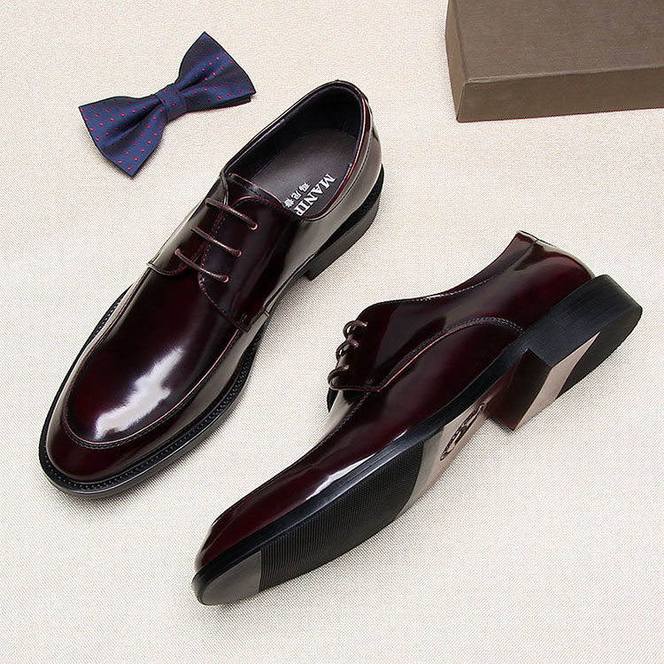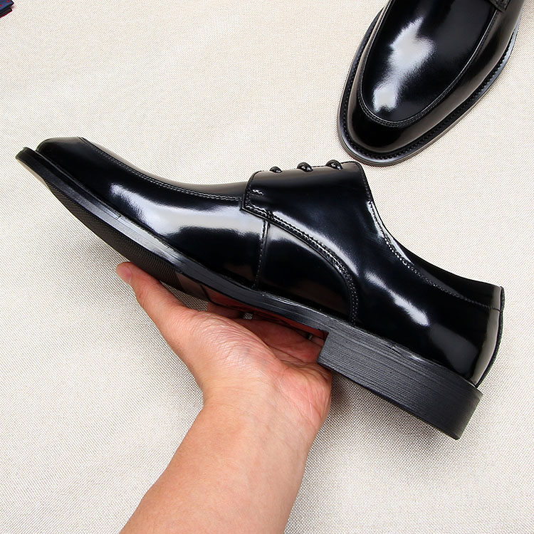 British Style Men's Leather Shoes, Business Formal Wear, Genuine Leather Casual Handmade Shoes, Shiny Leather Trendy Derby Shoes, Groom's Wedding Shoes for Men