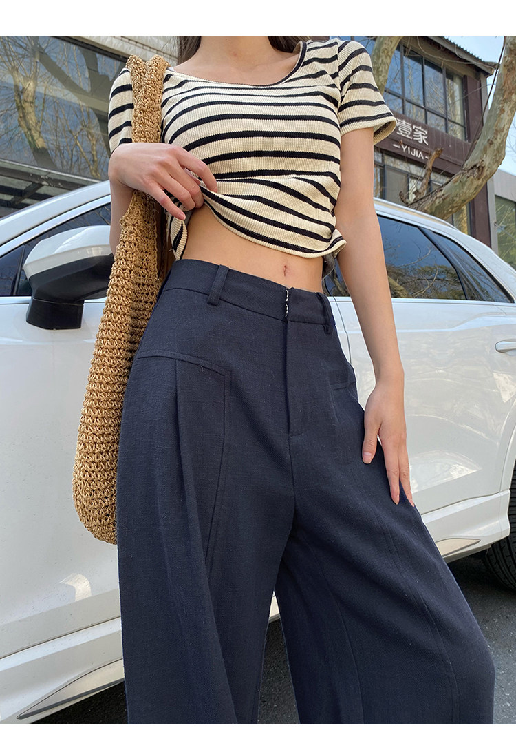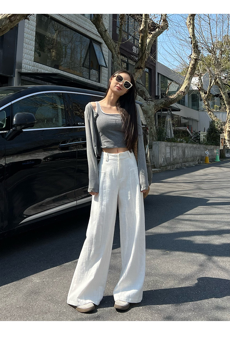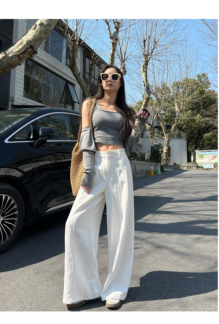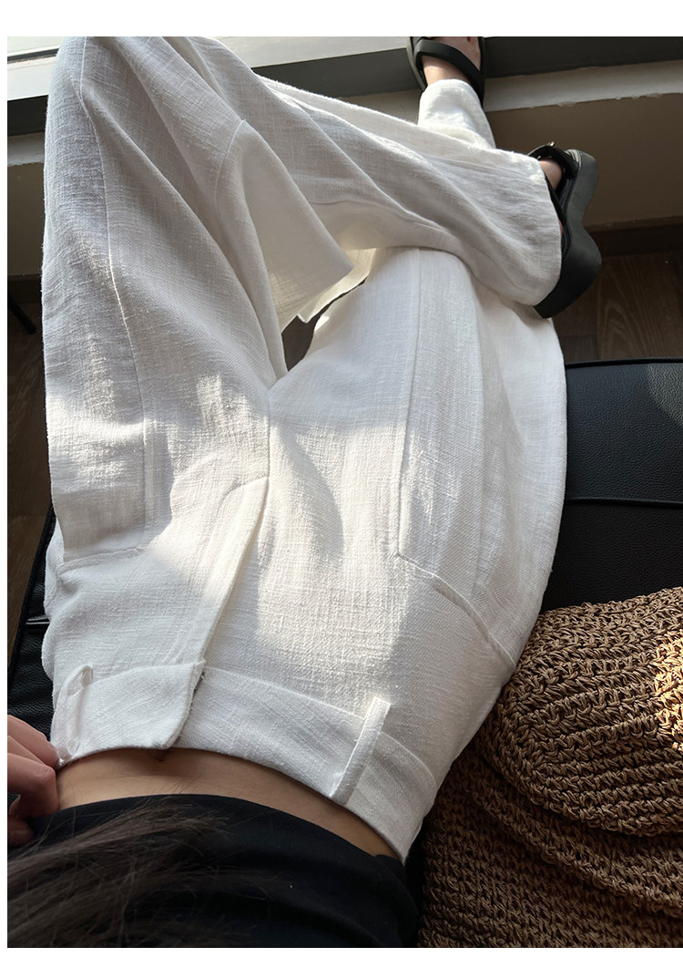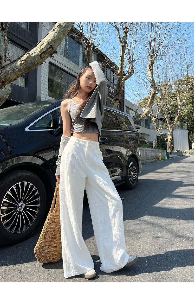 White Linen Ramie Wide-Leg Pants for Women, Summer Thin High-Waisted Drapey Old Money Style Suit Straight-Leg Cotton-Linen Casual Pants