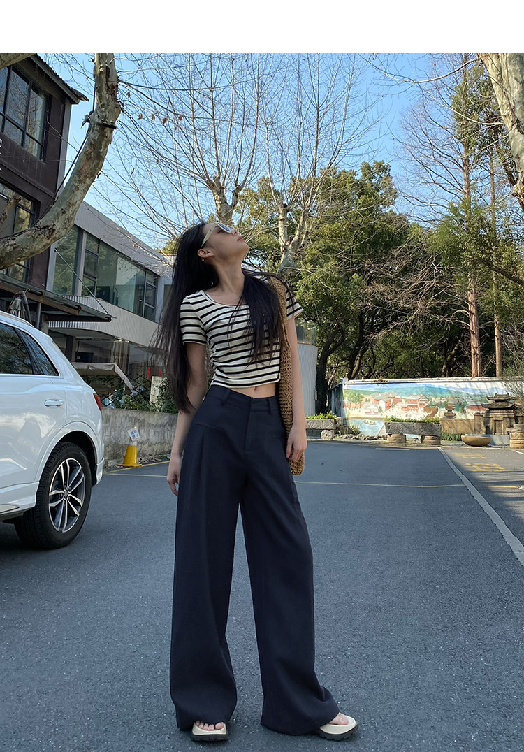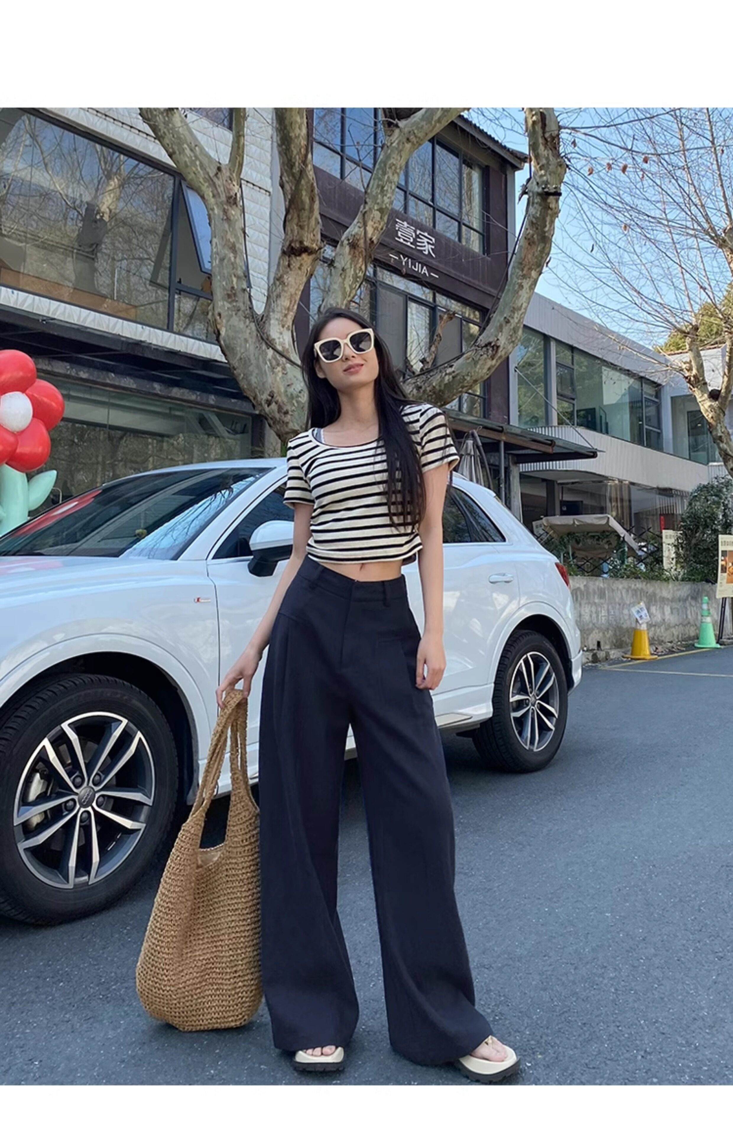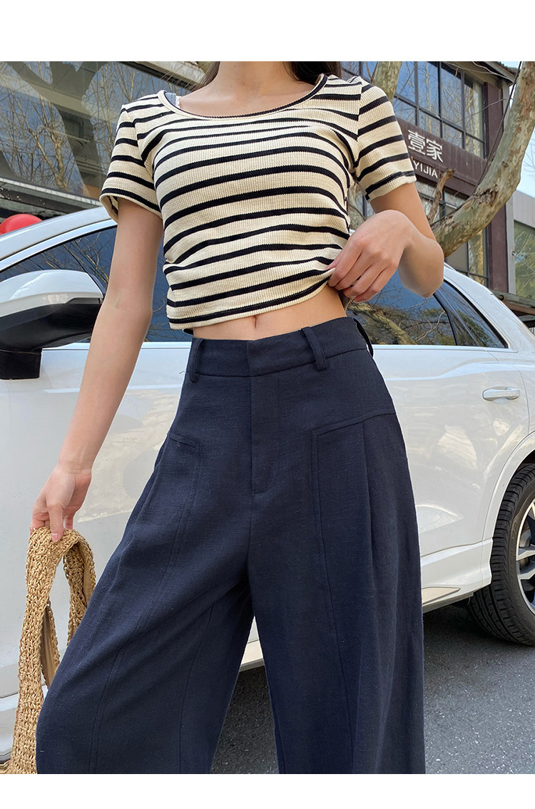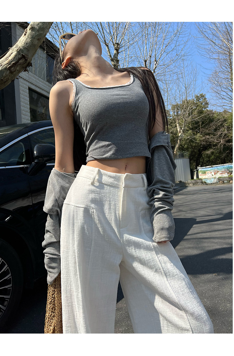 White Linen Ramie Wide-Leg Pants for Women, Summer Thin High-Waisted Drapey Old Money Style Suit Straight-Leg Cotton-Linen Casual Pants