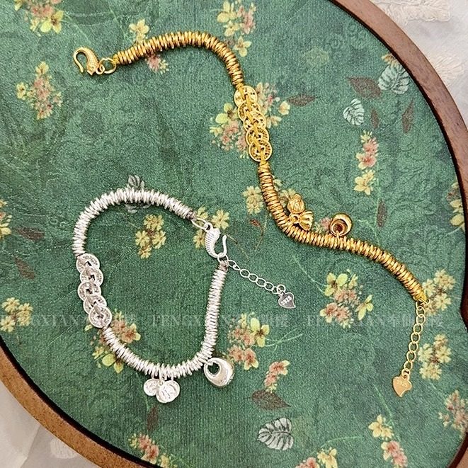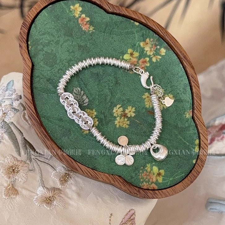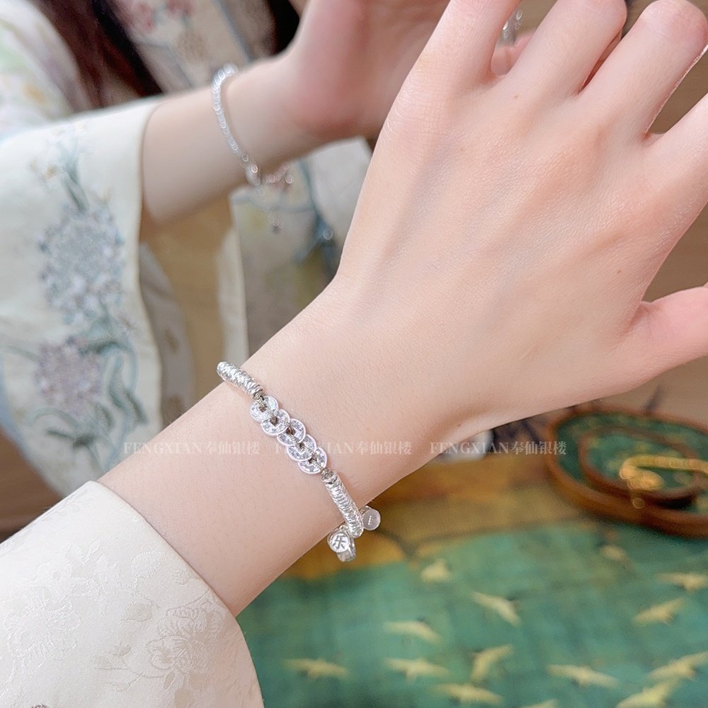 Broken Ice Five Emperors Coin Silver Bracelet for Women S925 Sterling Silver Two Generations of Happiness, Peace, Joy, and Wealth Bracelet Gift for Girlfriend