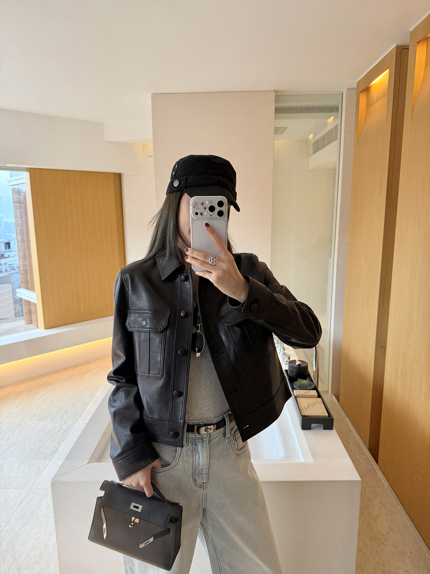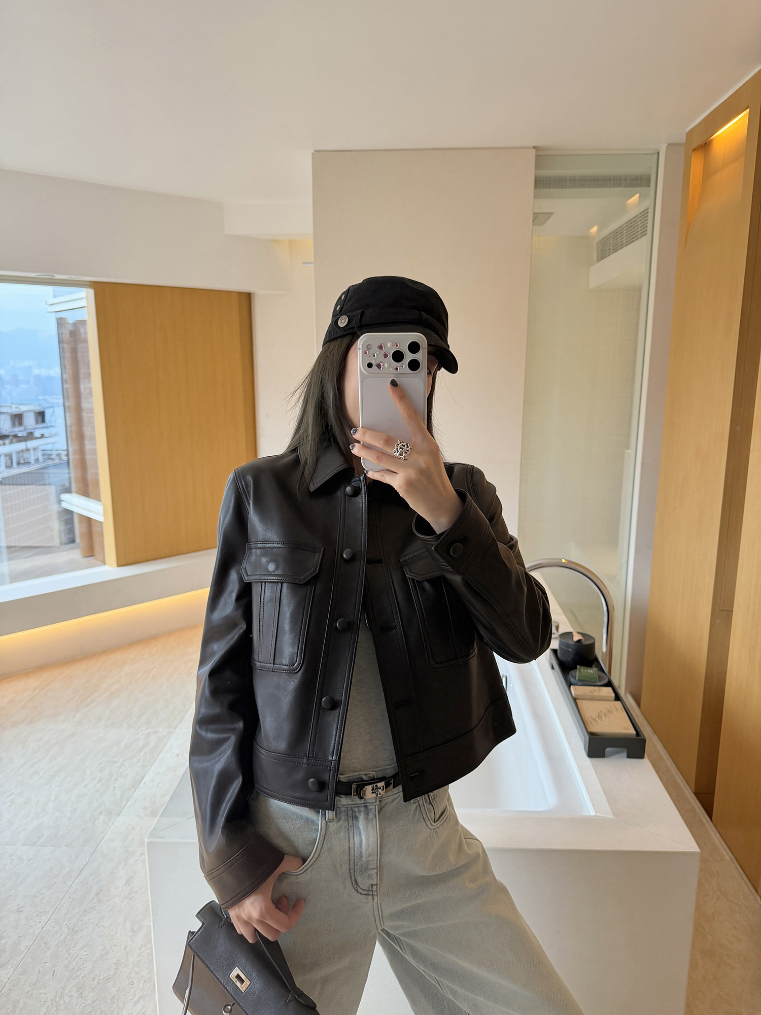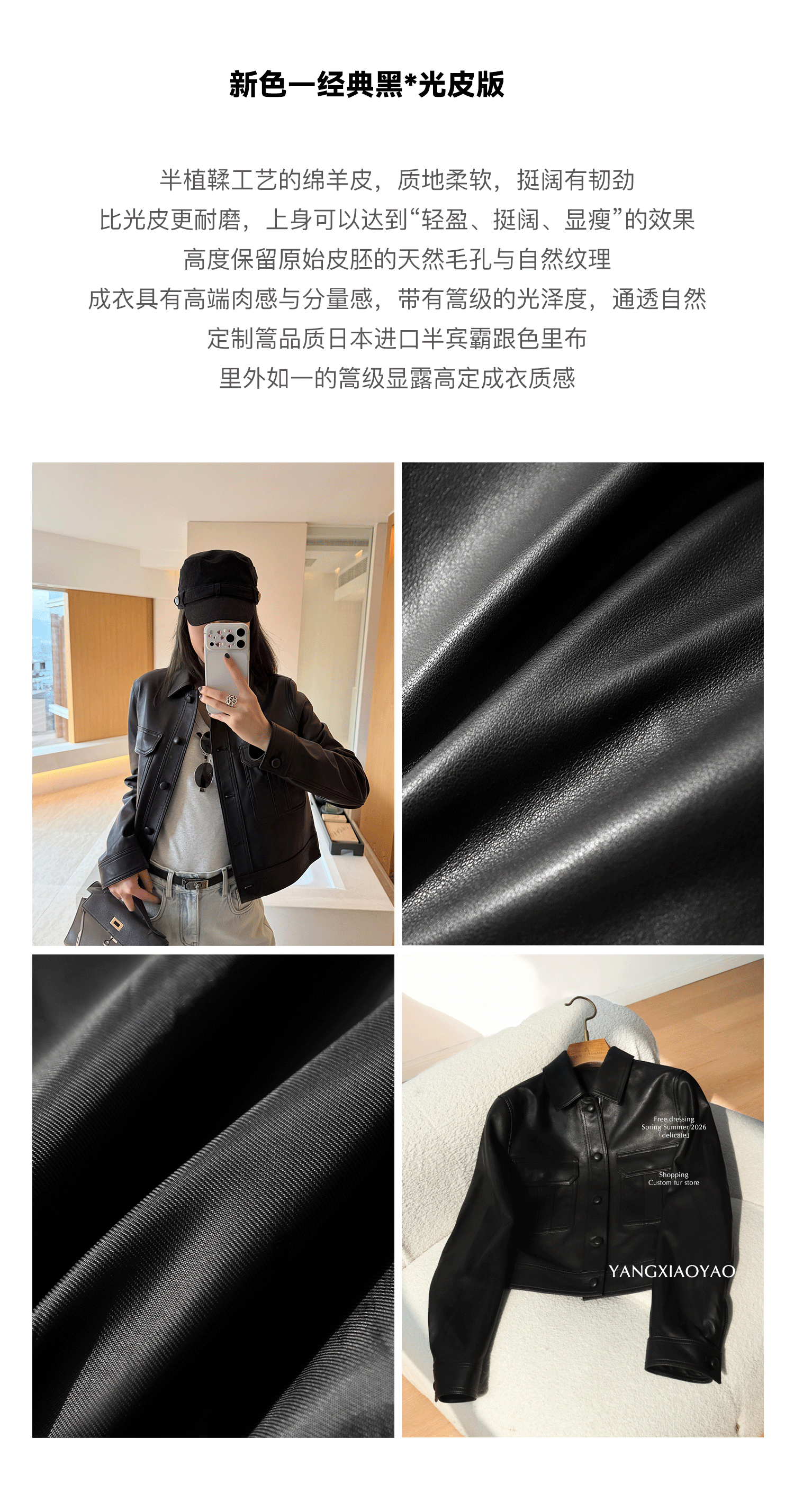 Yang Xiao Yao Old Money Style Vintage Imported High-End Cashmere Genuine Leather Jacket Women's Short Leather Jacket Autumn New Style