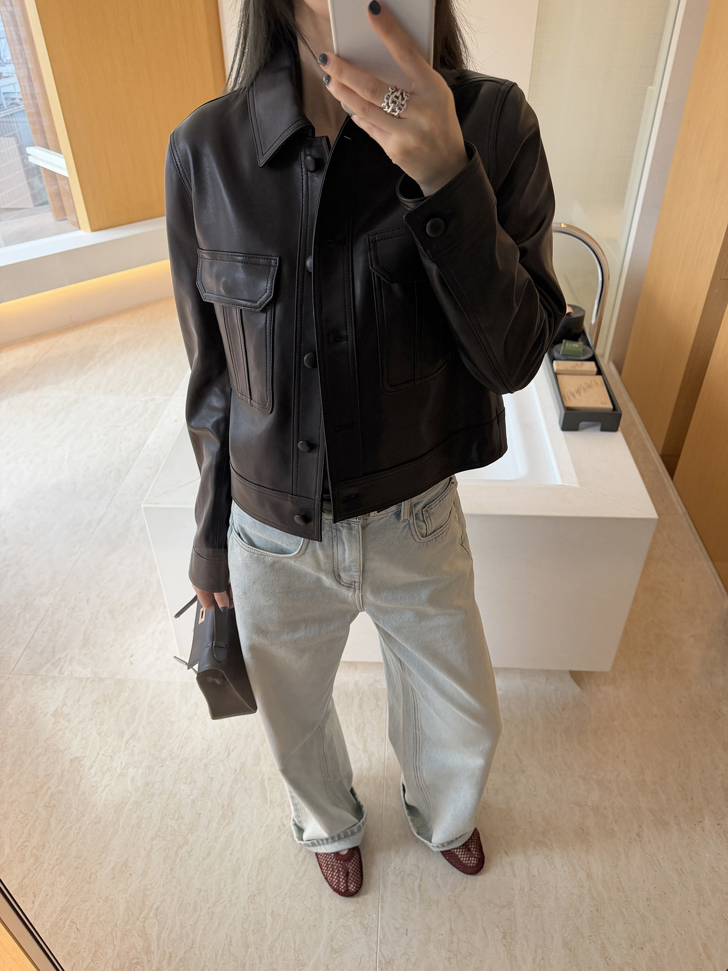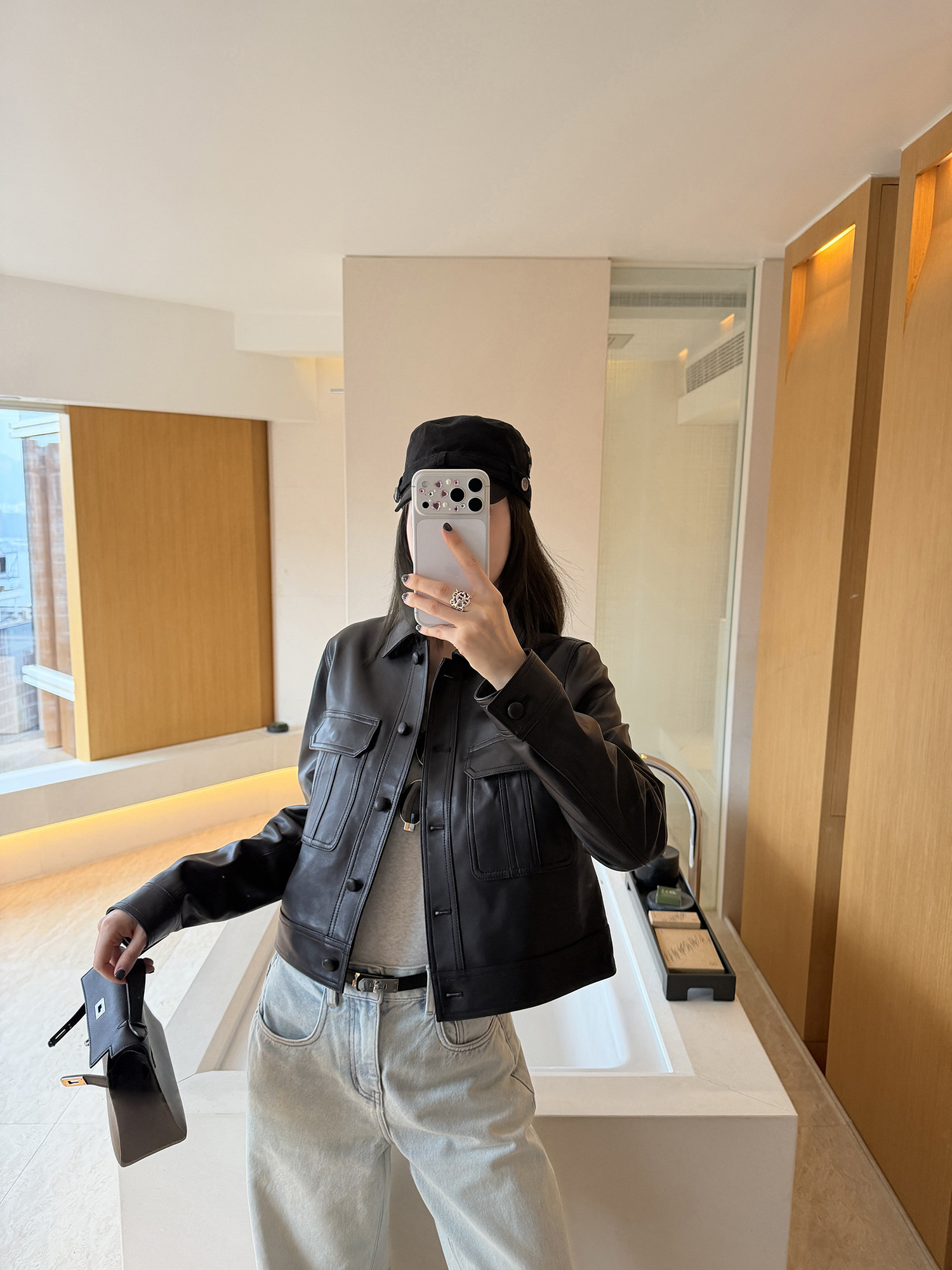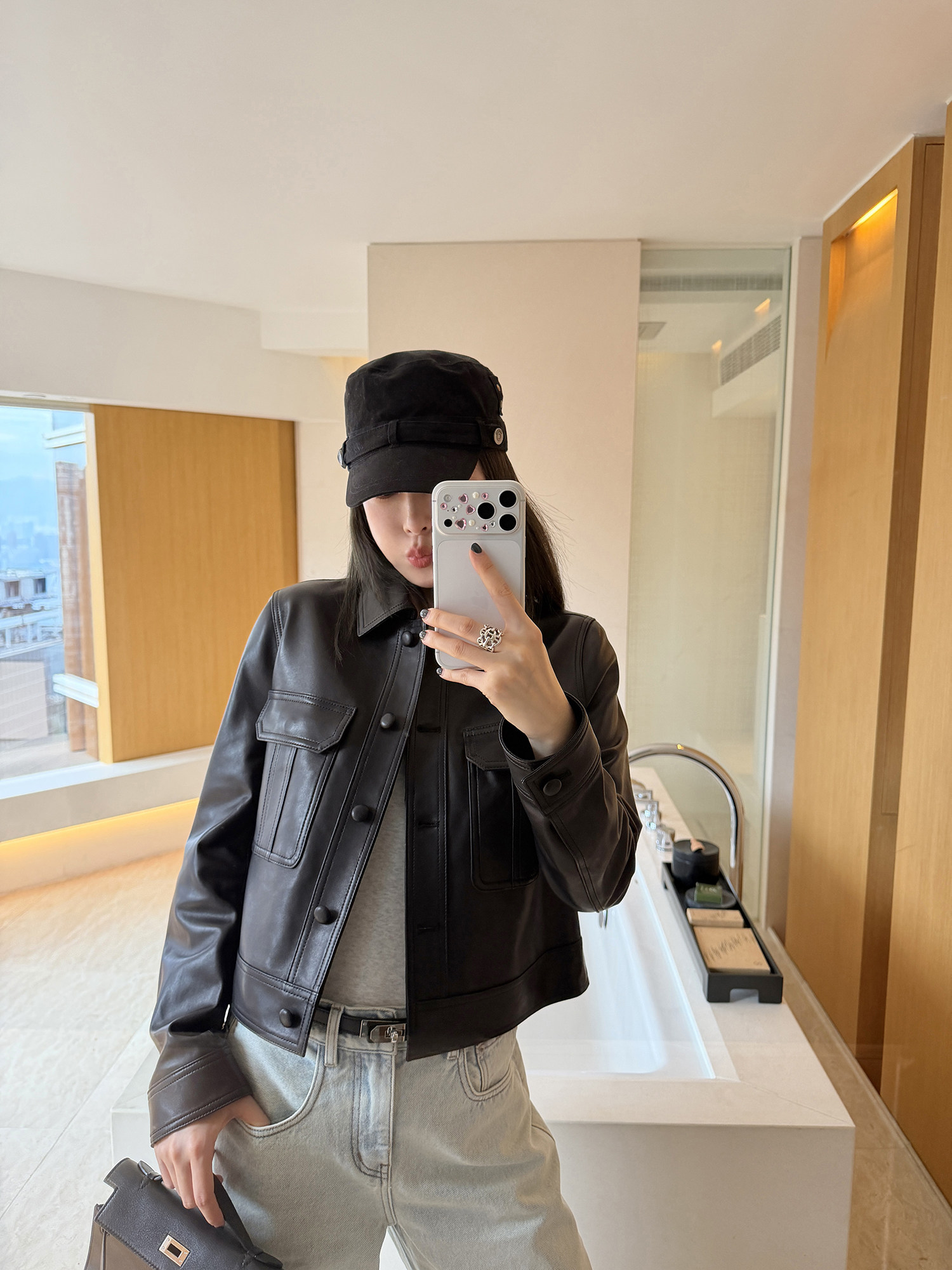 Yang Xiao Yao Old Money Style Vintage Imported High-End Cashmere Genuine Leather Jacket Women's Short Leather Jacket Autumn New Style