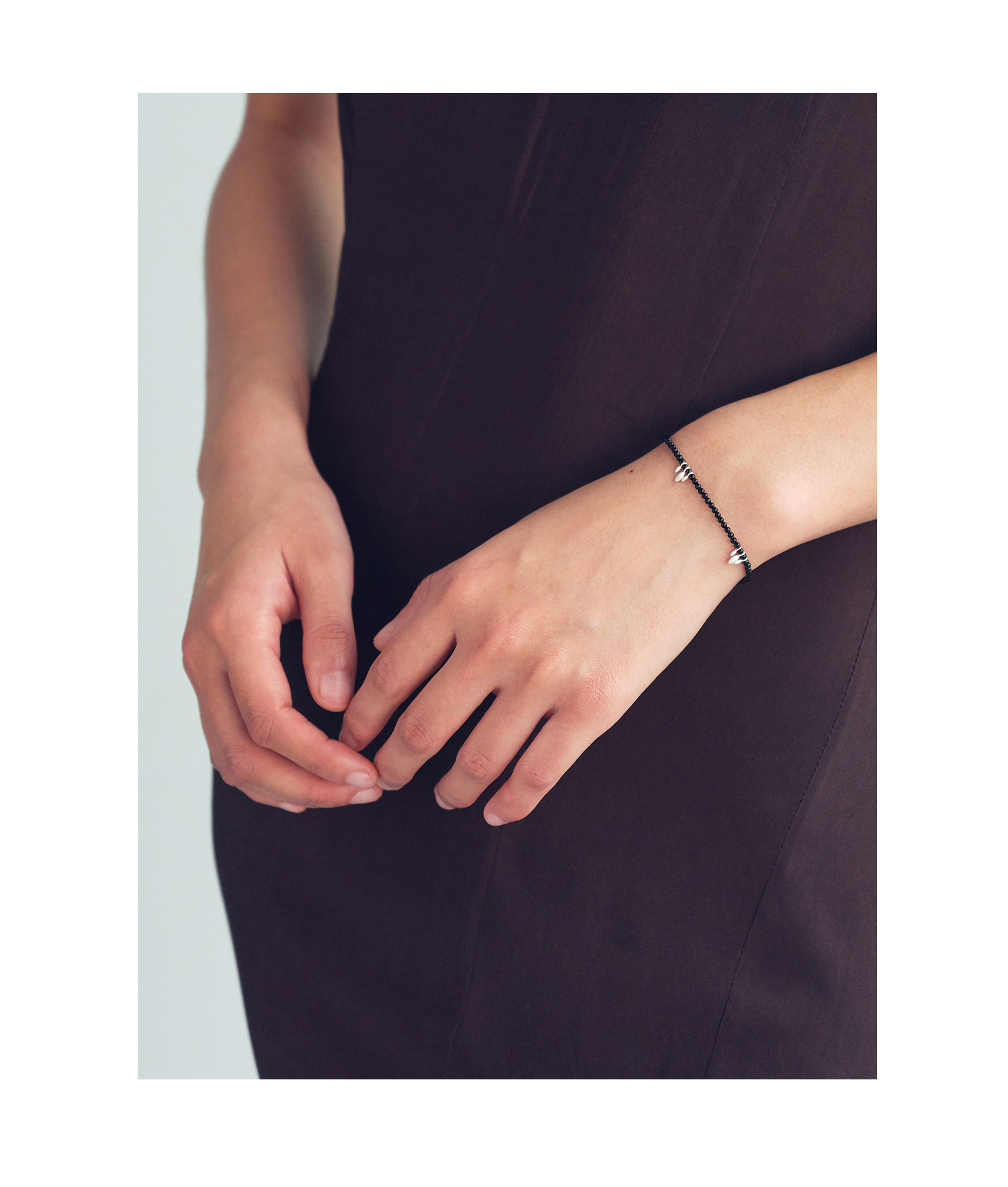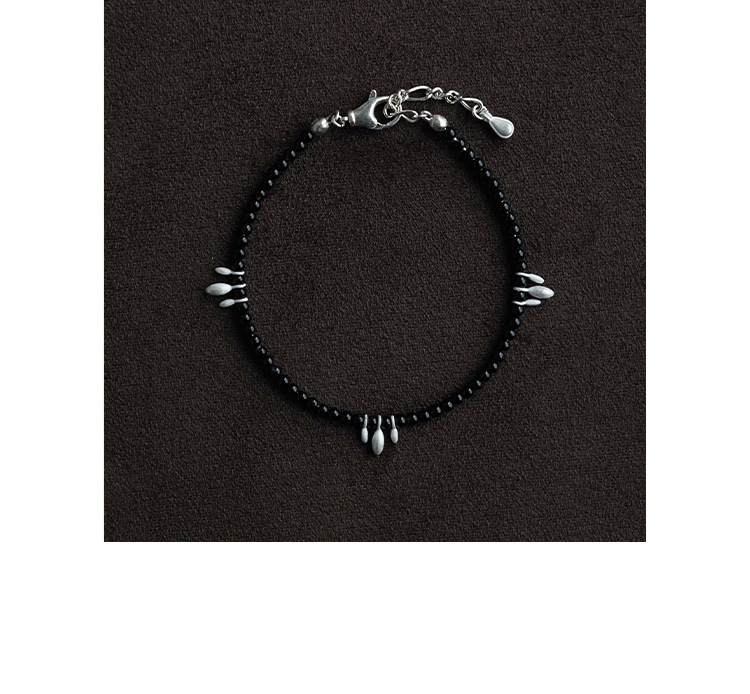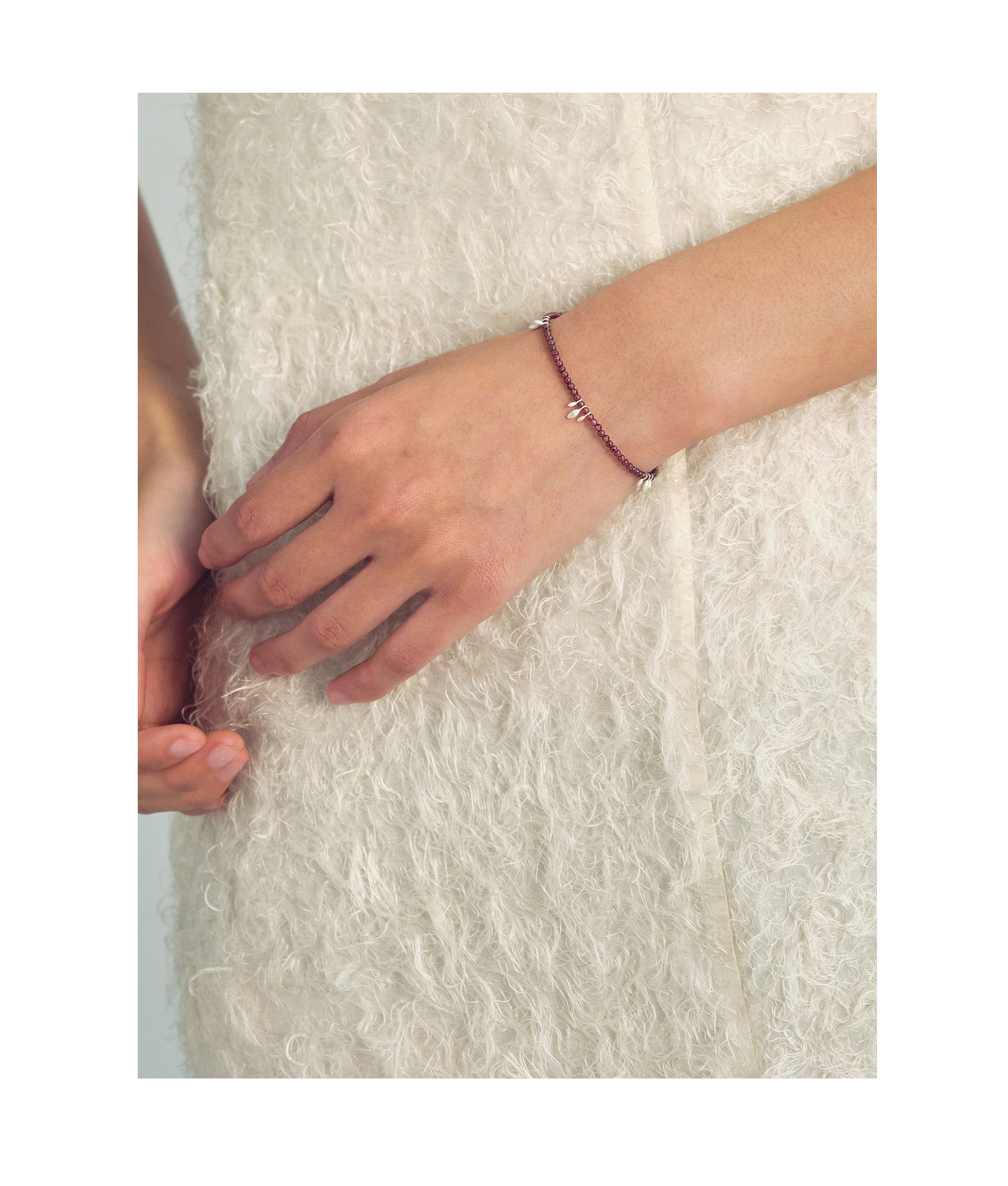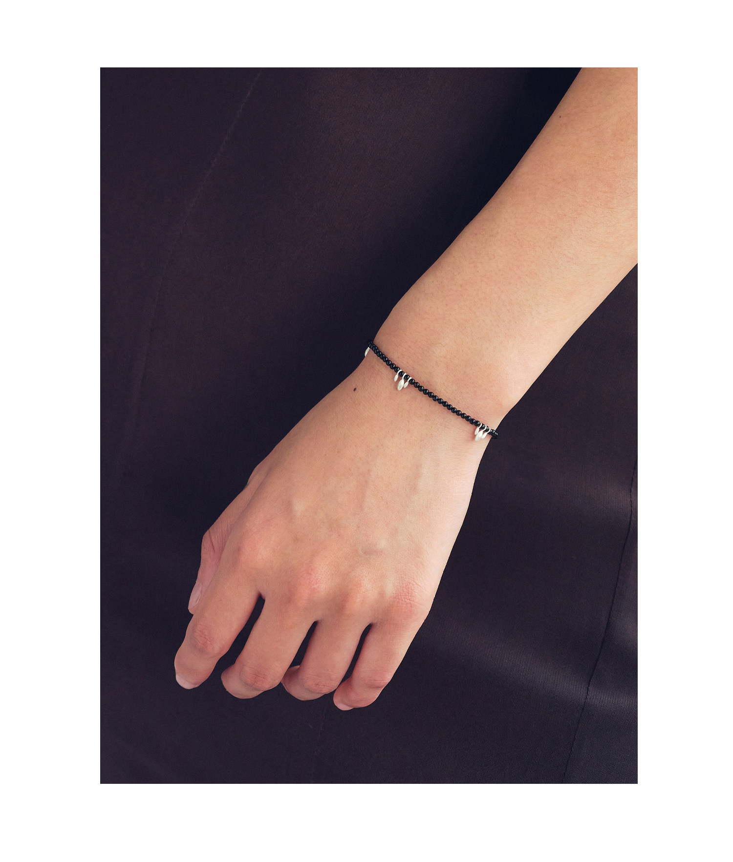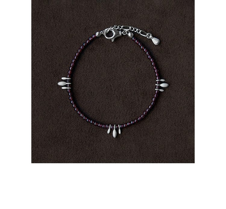 Olio E Aceto Oil and Vinegar Sterling Silver Water Drop Beaded Bracelet Black Agate Garnet