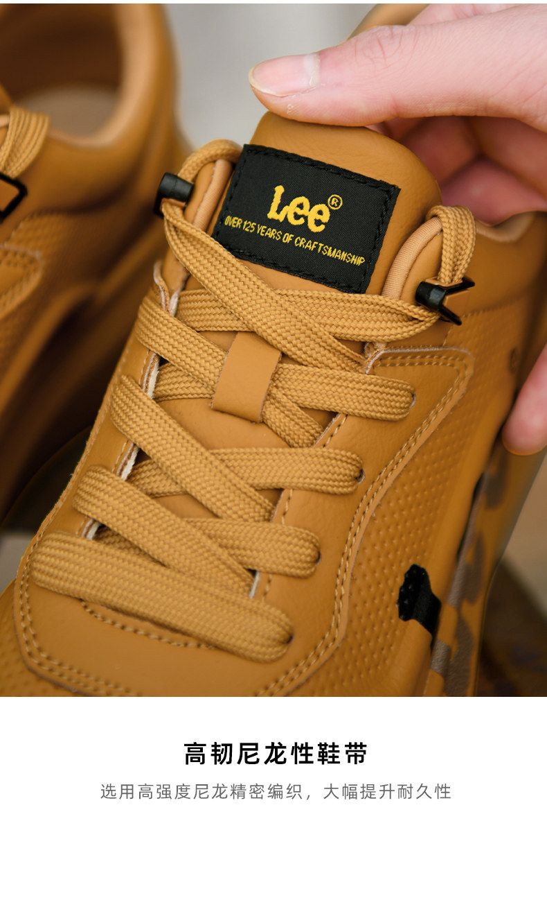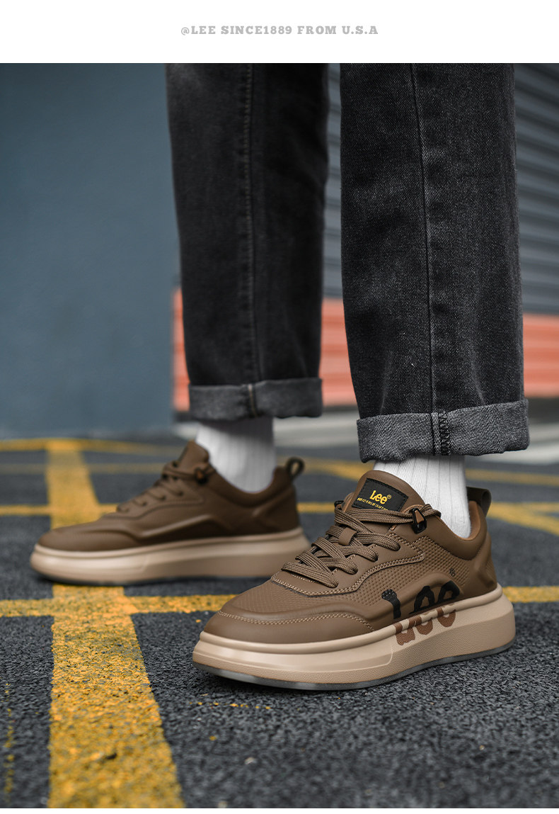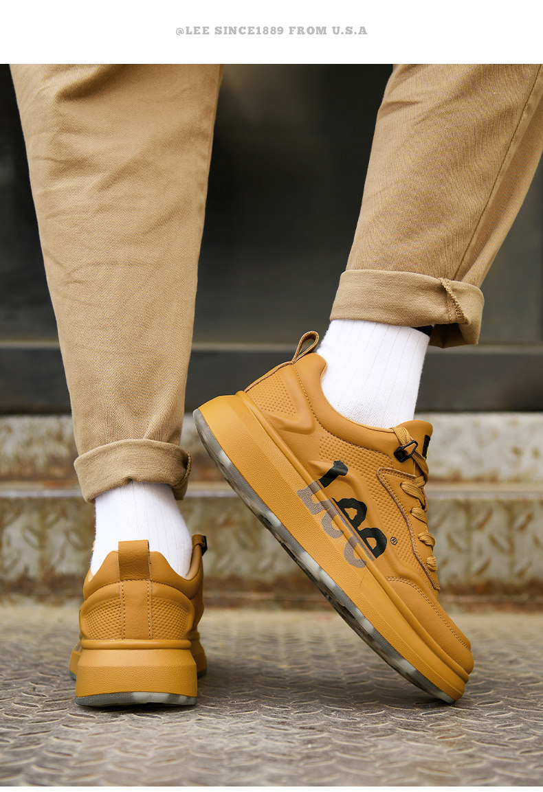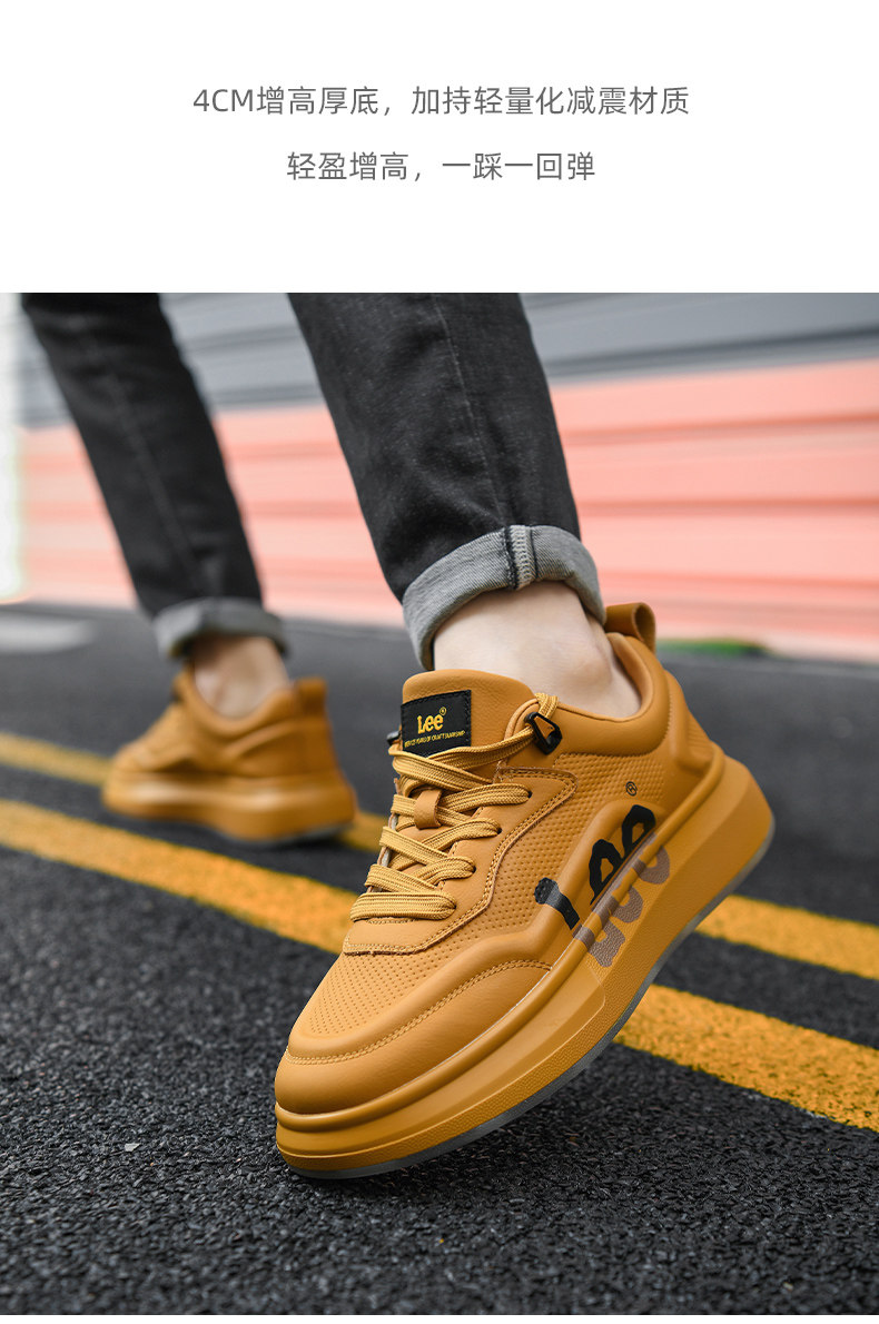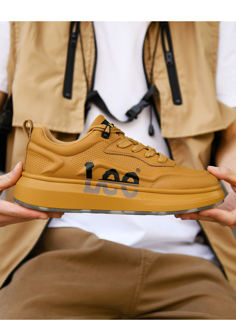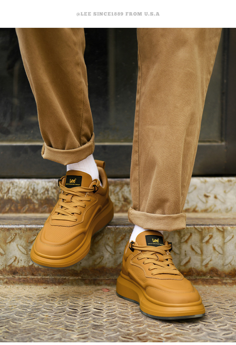 Lee Thick-Soled Sneakers for Men 2026 New Winter Fleece-Lined Men's Shoes Genuine Leather Shoes Wheat-Colored Sports Casual Shoes