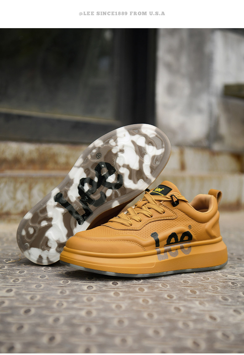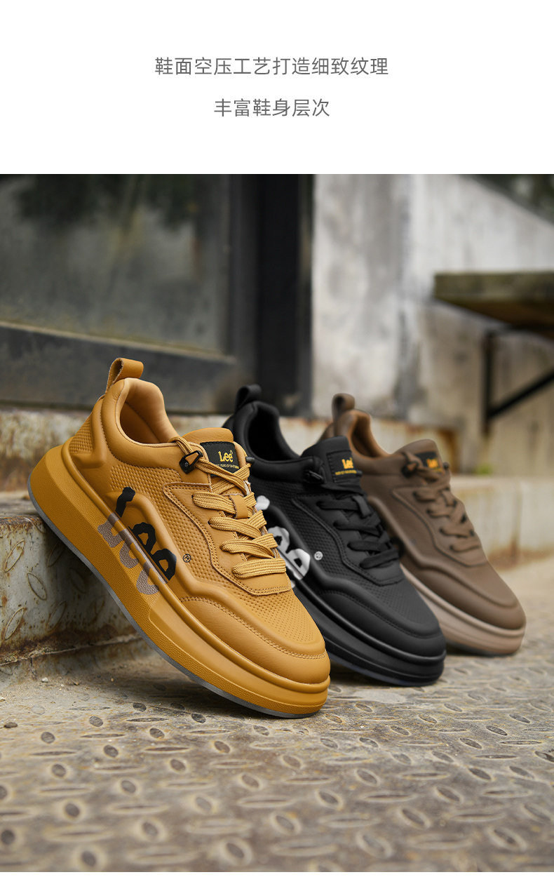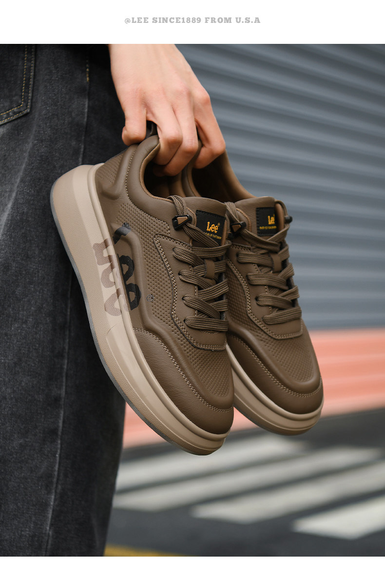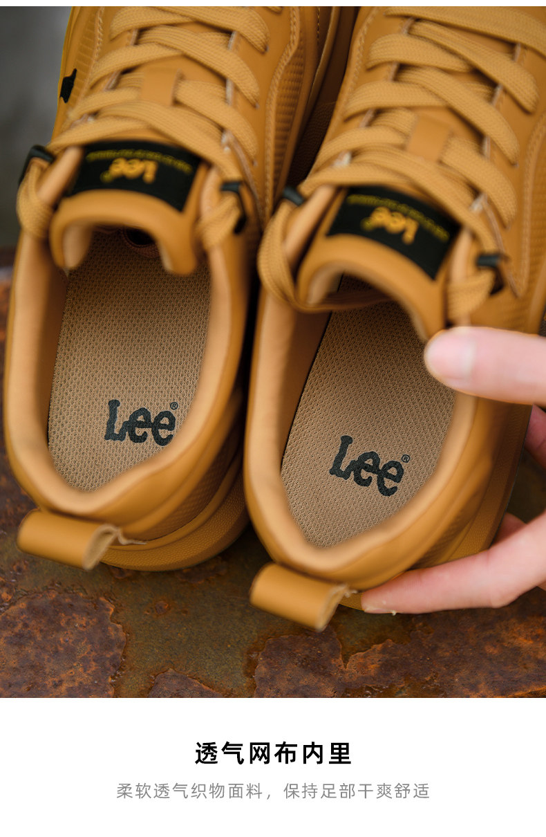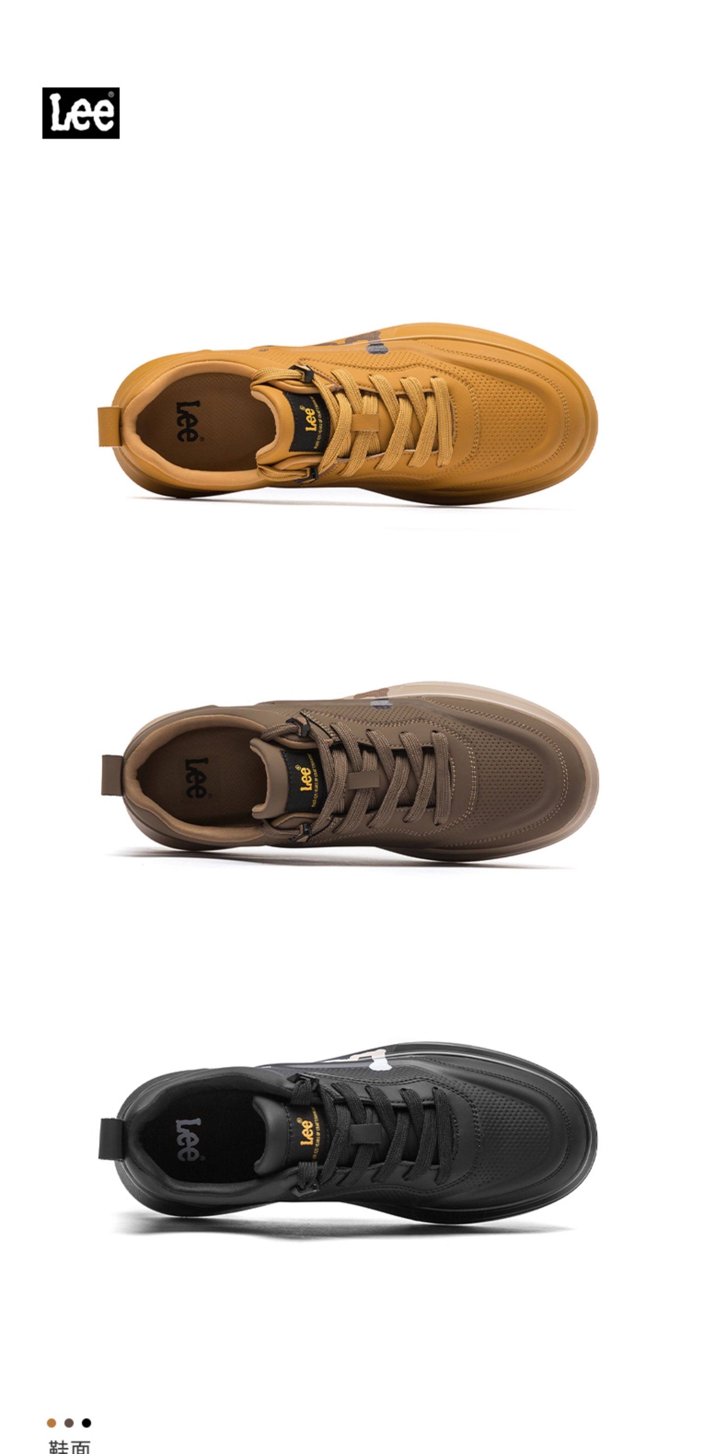 Lee Thick-Soled Sneakers for Men 2026 New Winter Fleece-Lined Men's Shoes Genuine Leather Shoes Wheat-Colored Sports Casual Shoes