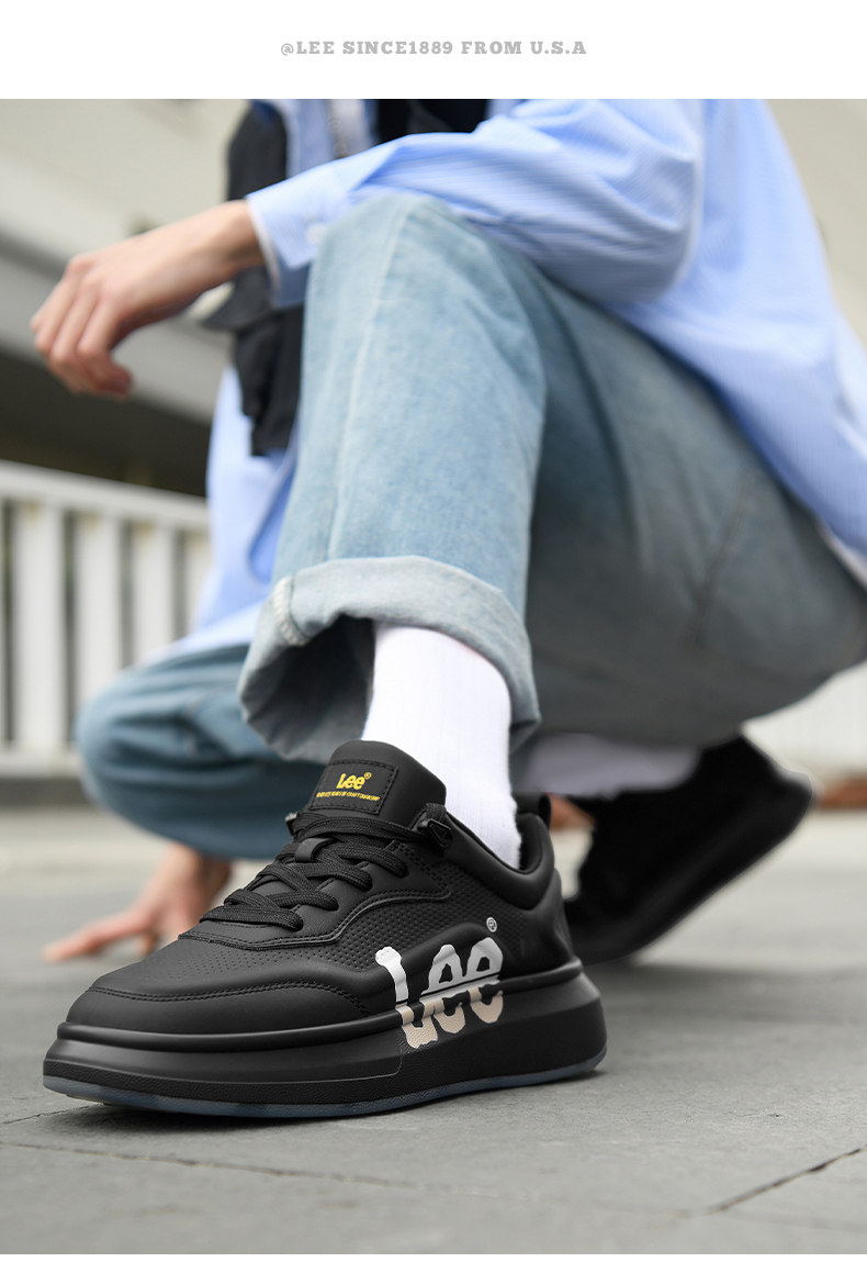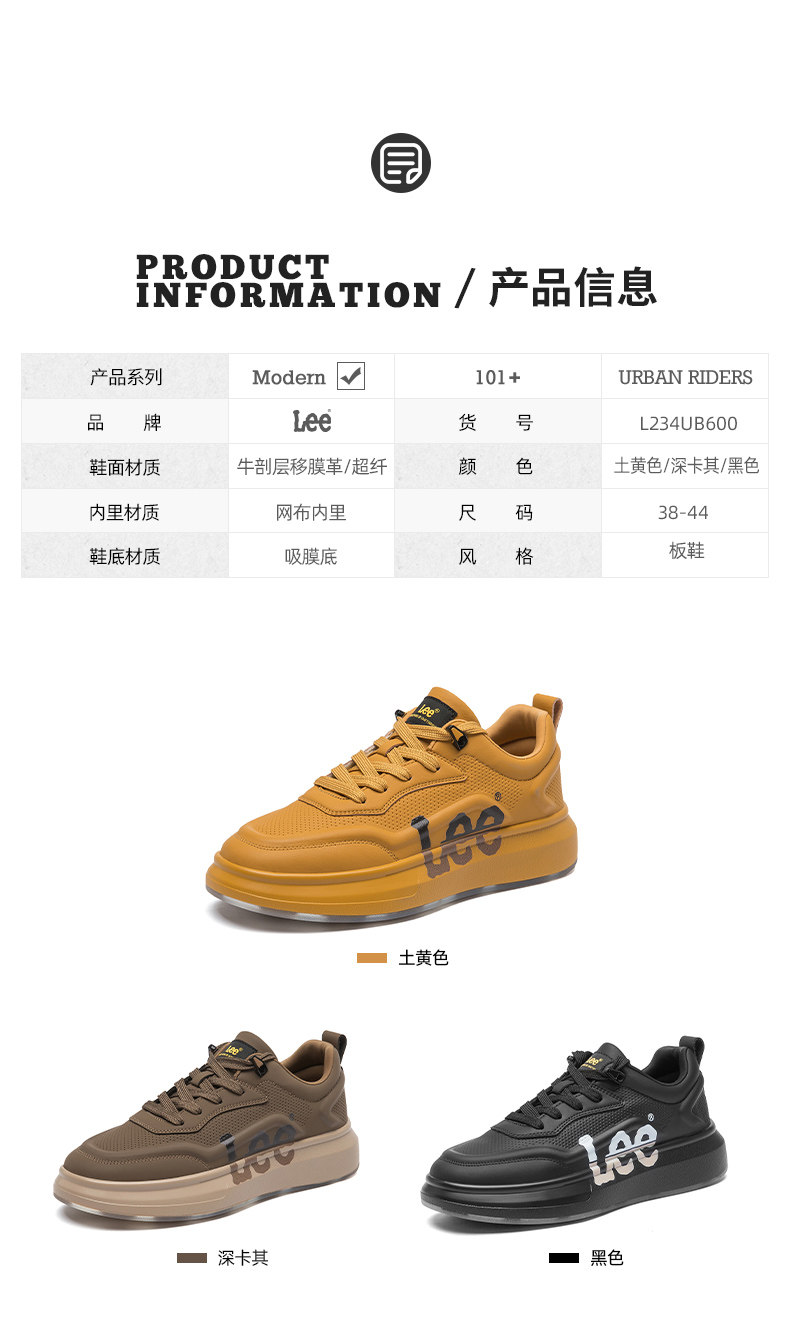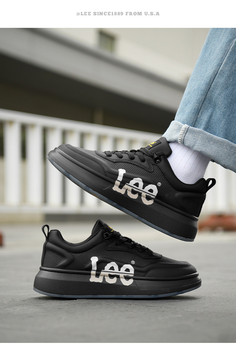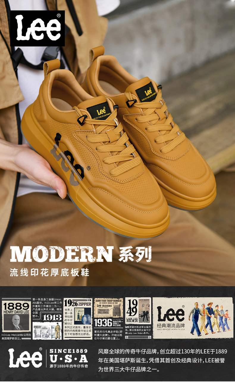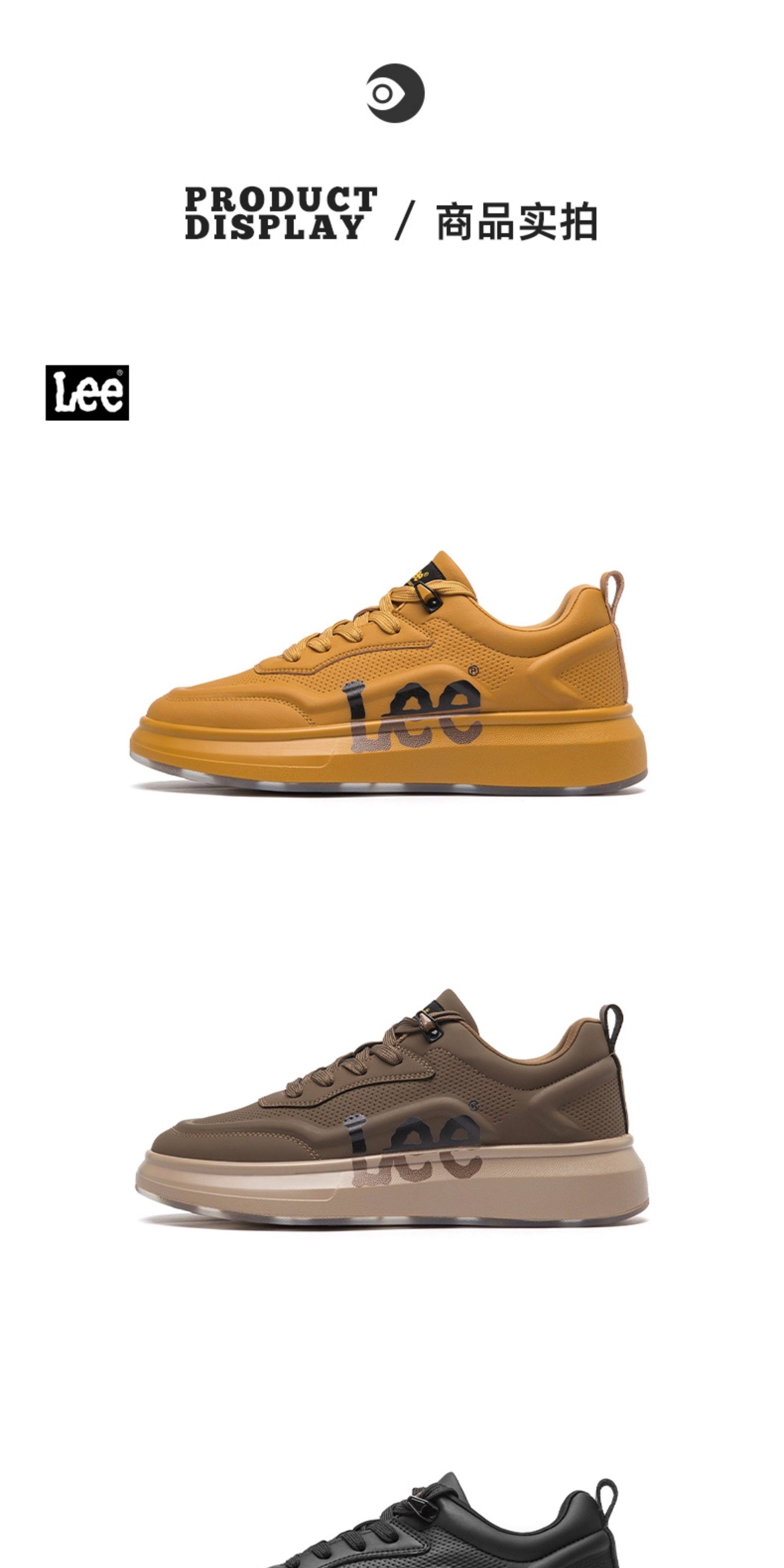 Lee Thick-Soled Sneakers for Men 2026 New Winter Fleece-Lined Men's Shoes Genuine Leather Shoes Wheat-Colored Sports Casual Shoes