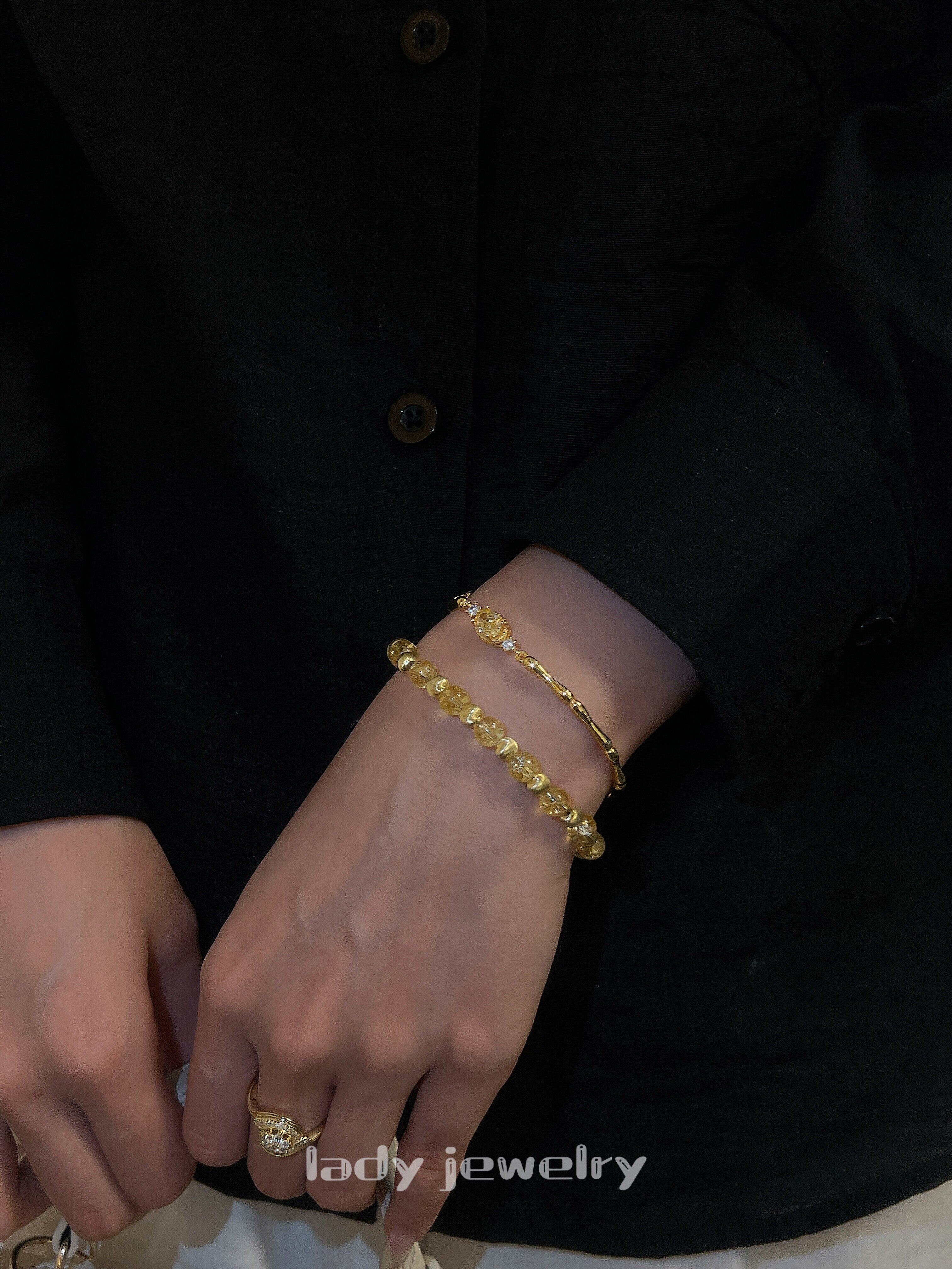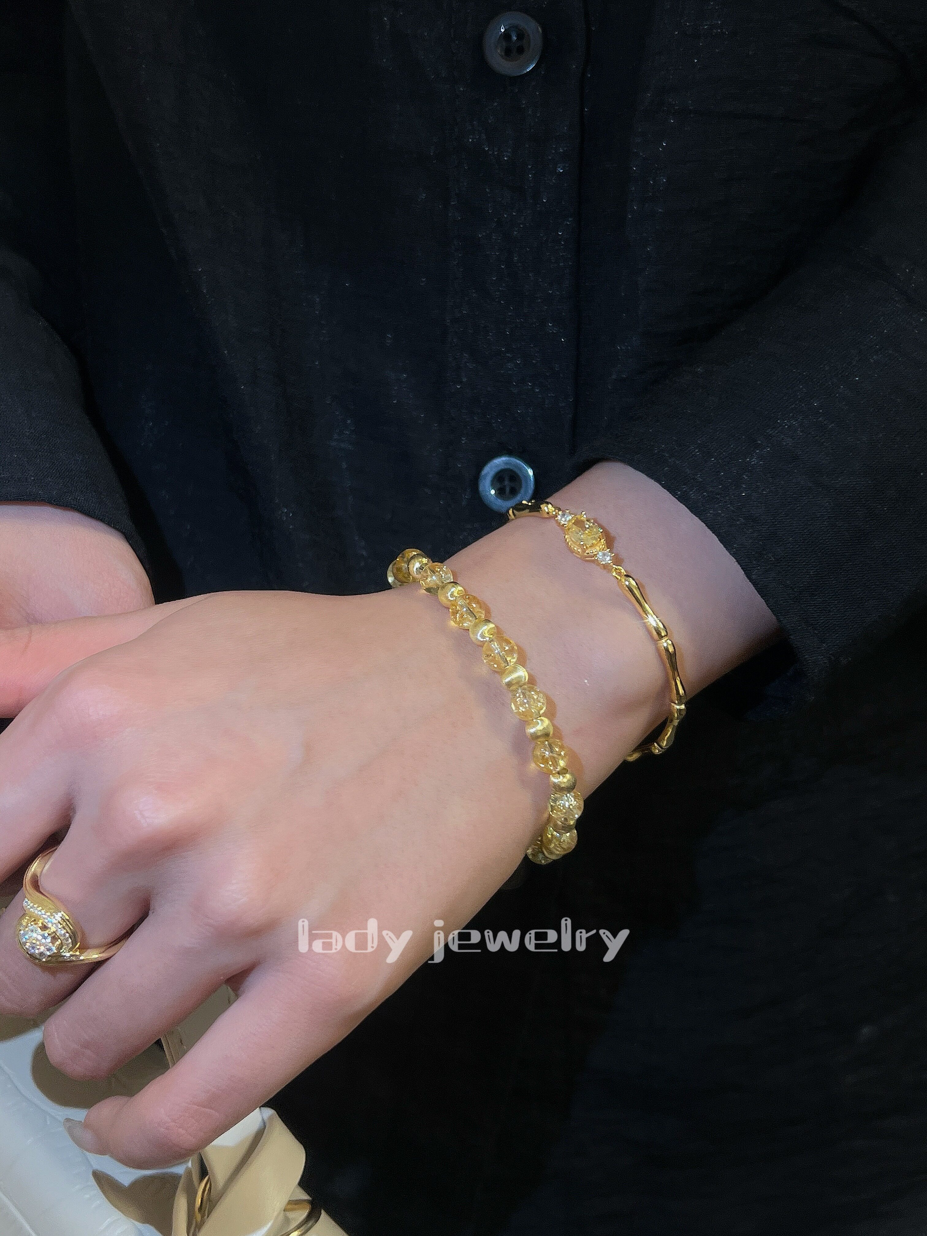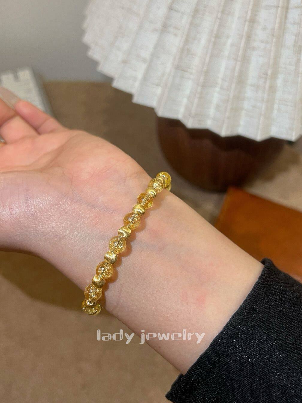 Ledi Haute Couture S925 Silver Gold-Plated Citrine Bracelet with 6mm Beads, Adjustable