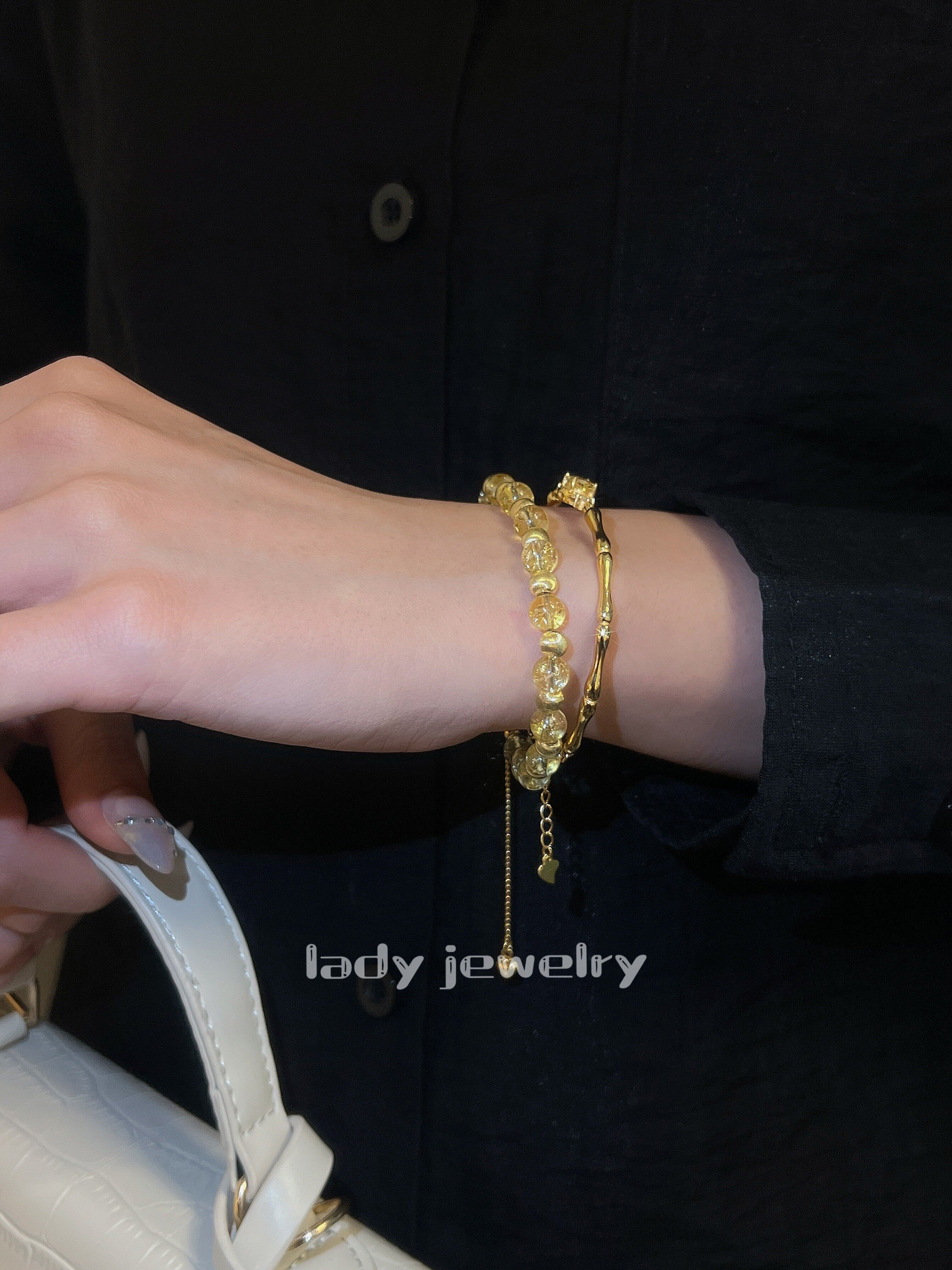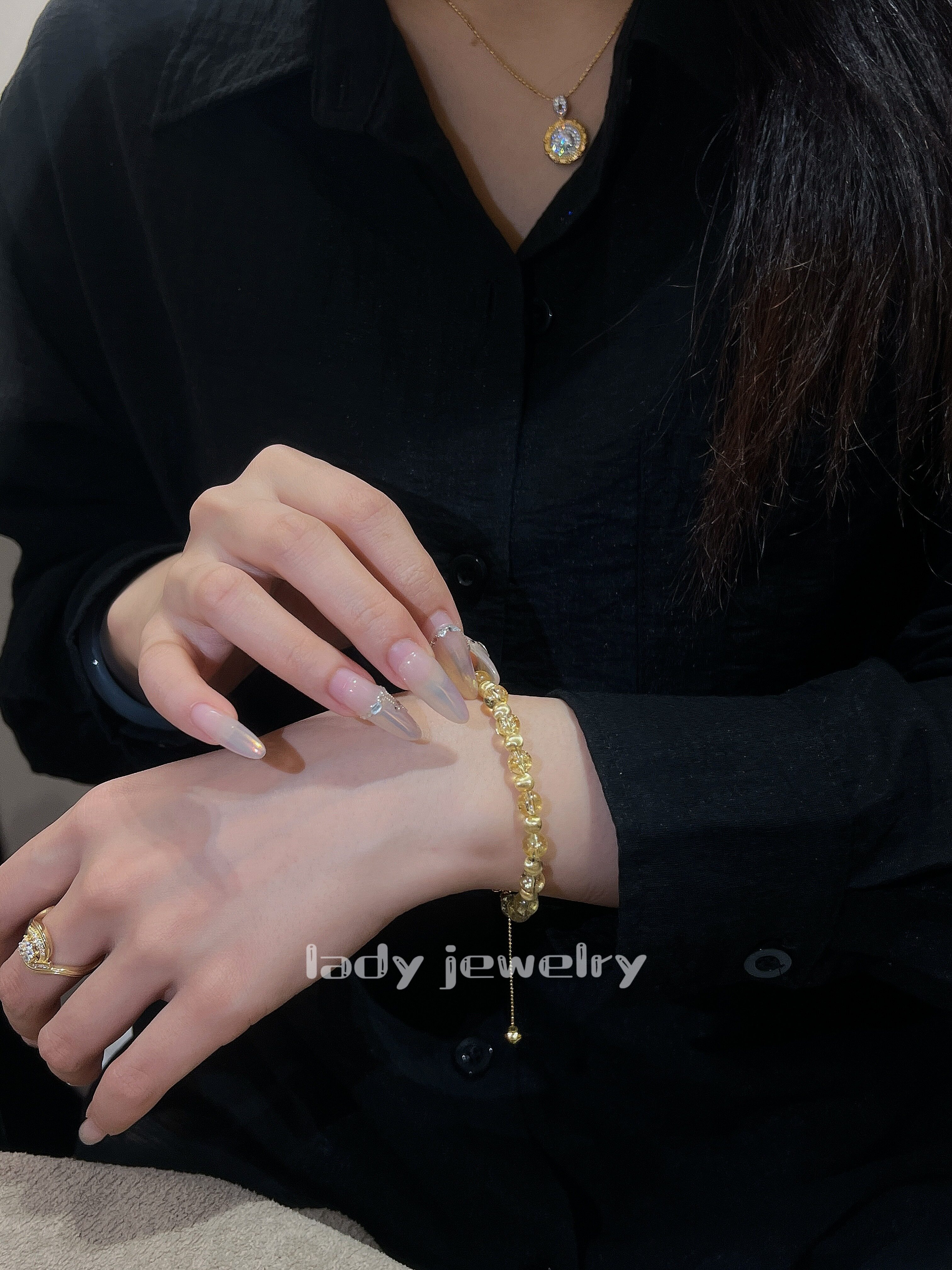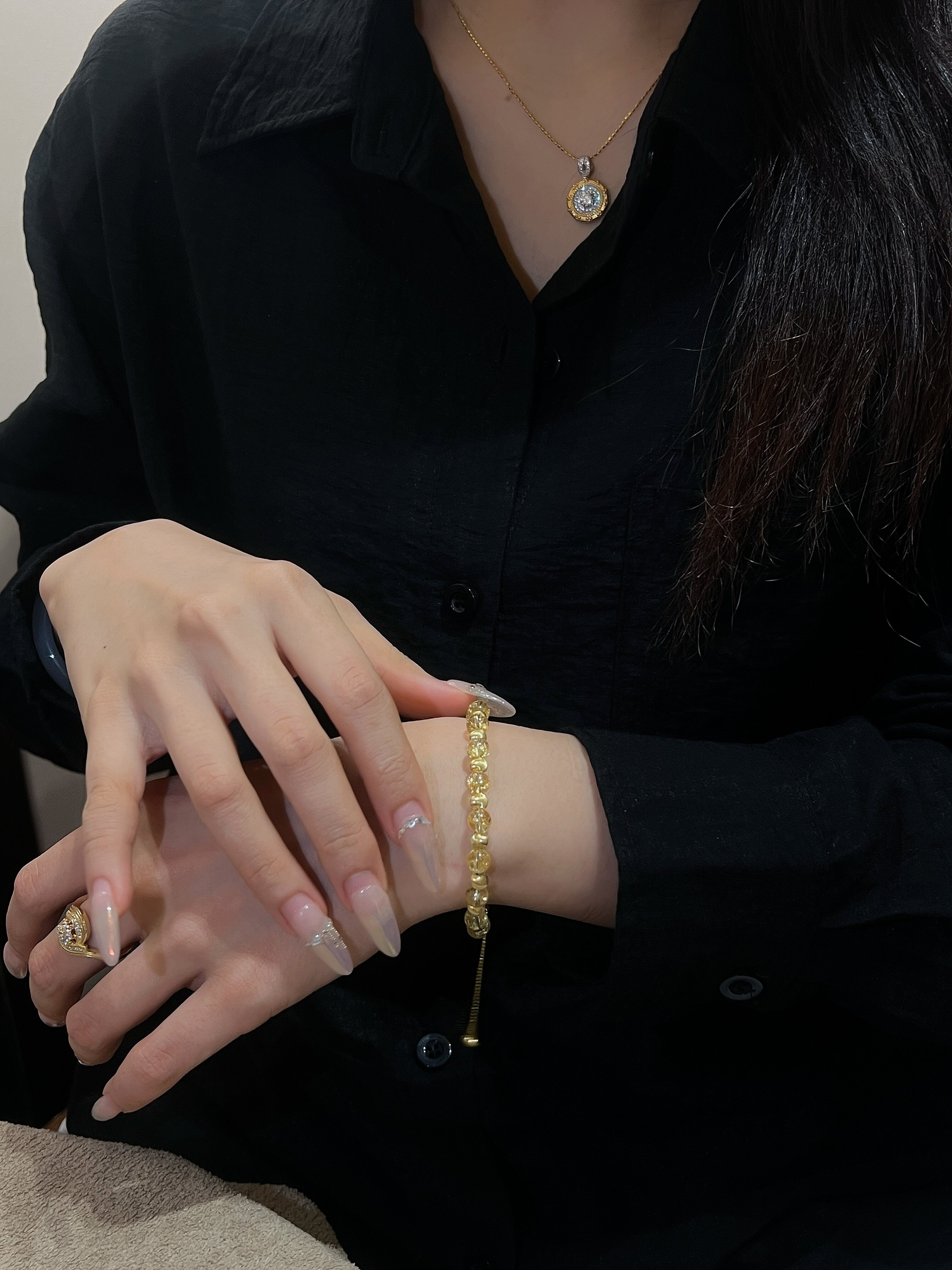 Ledi Haute Couture S925 Silver Gold-Plated Citrine Bracelet with 6mm Beads, Adjustable