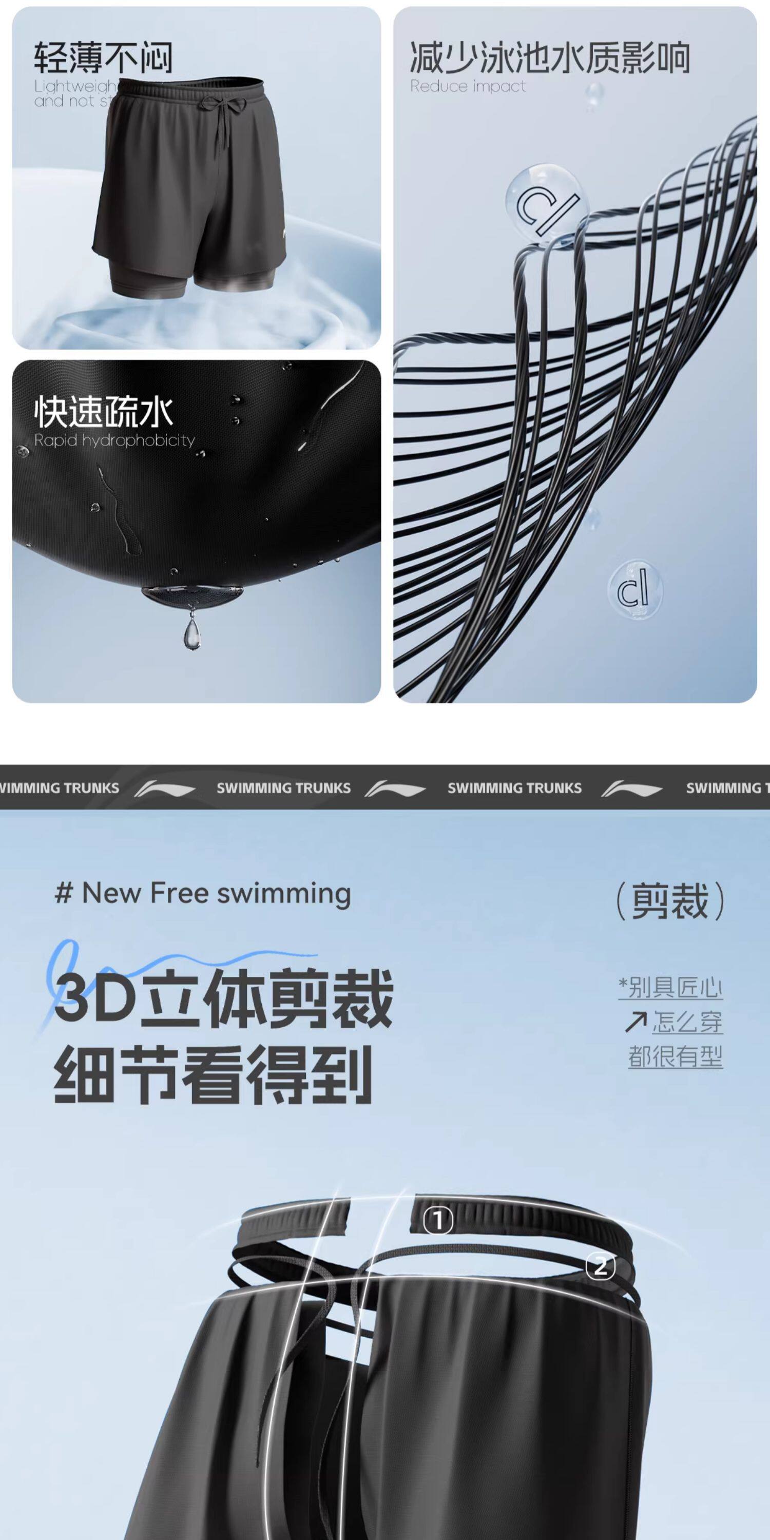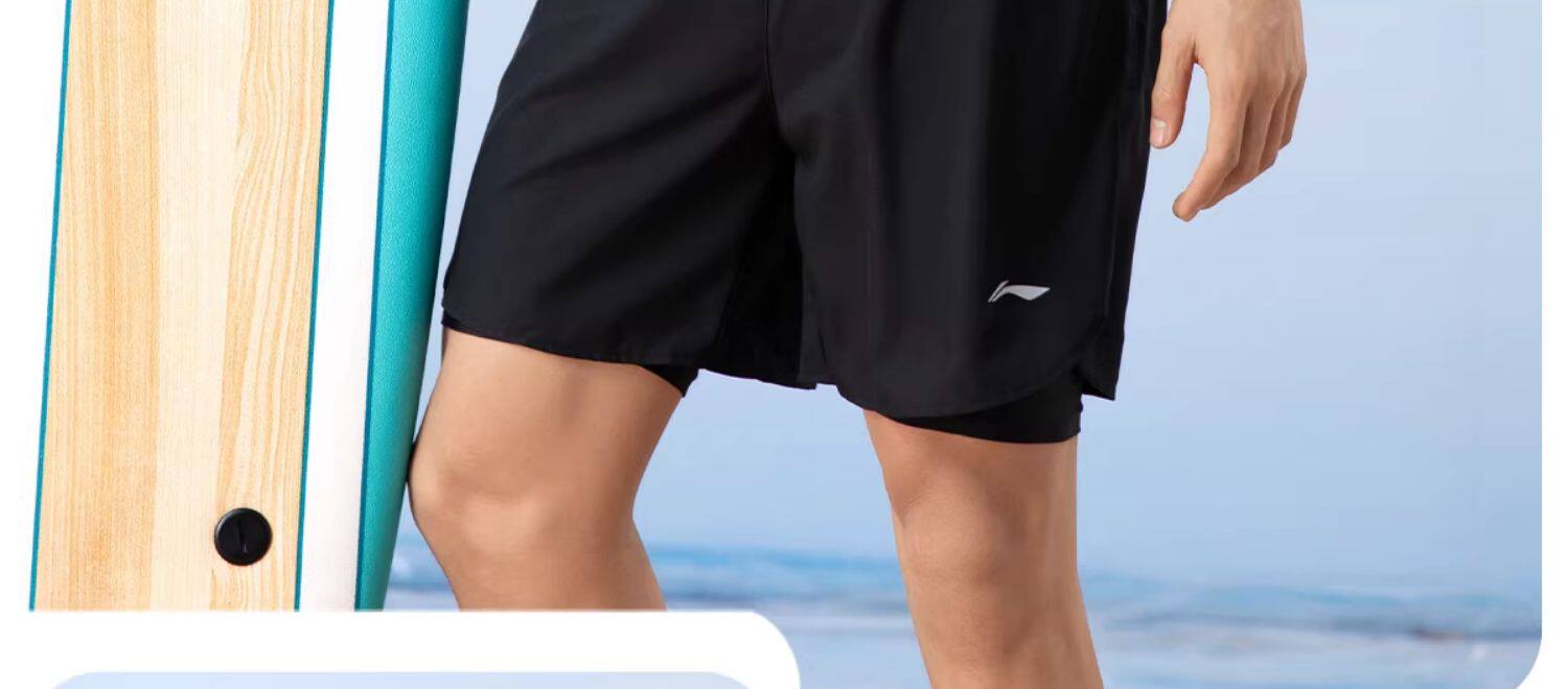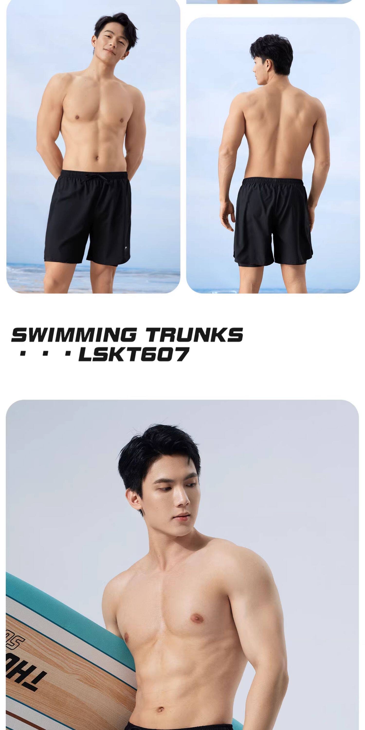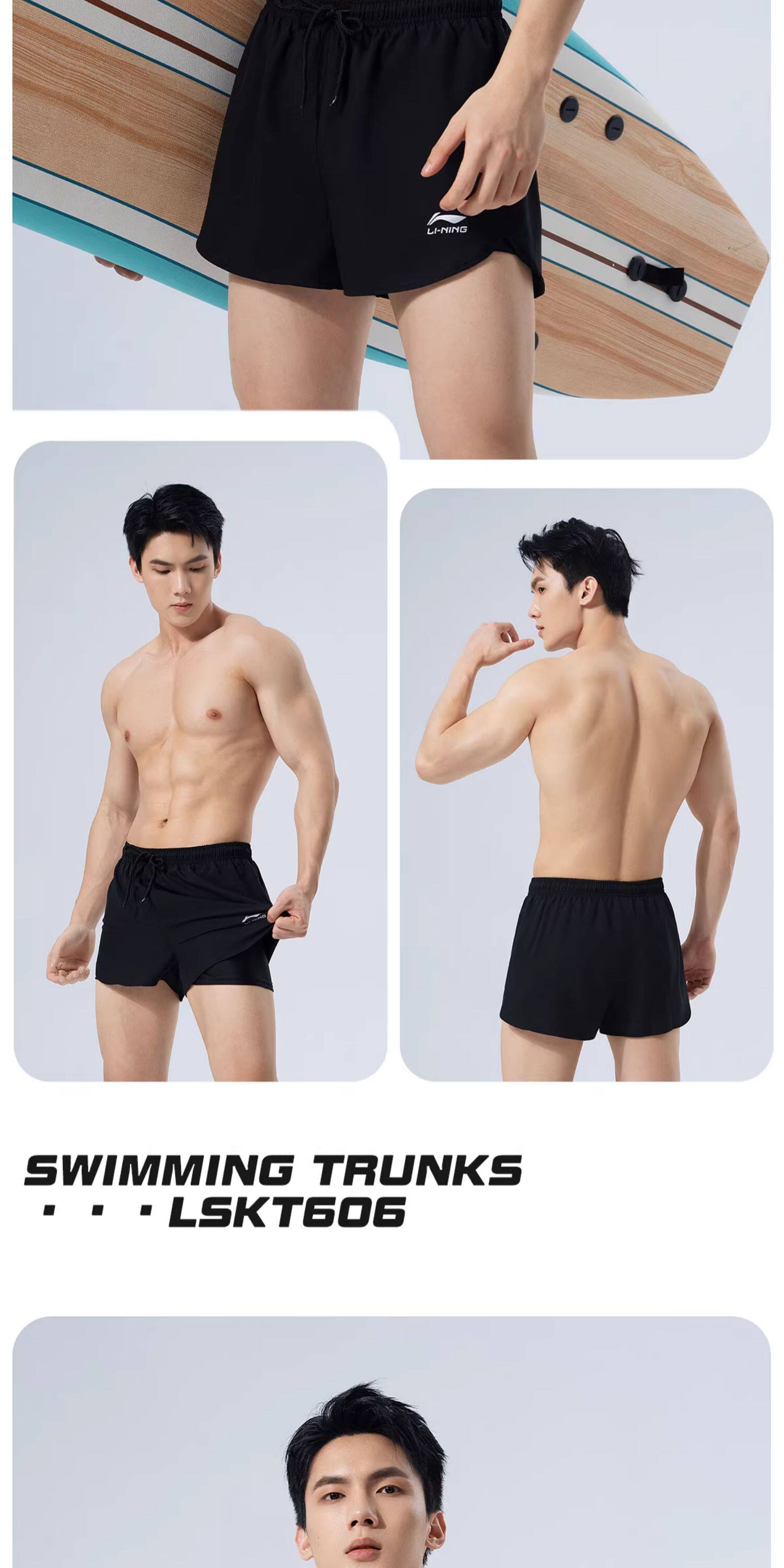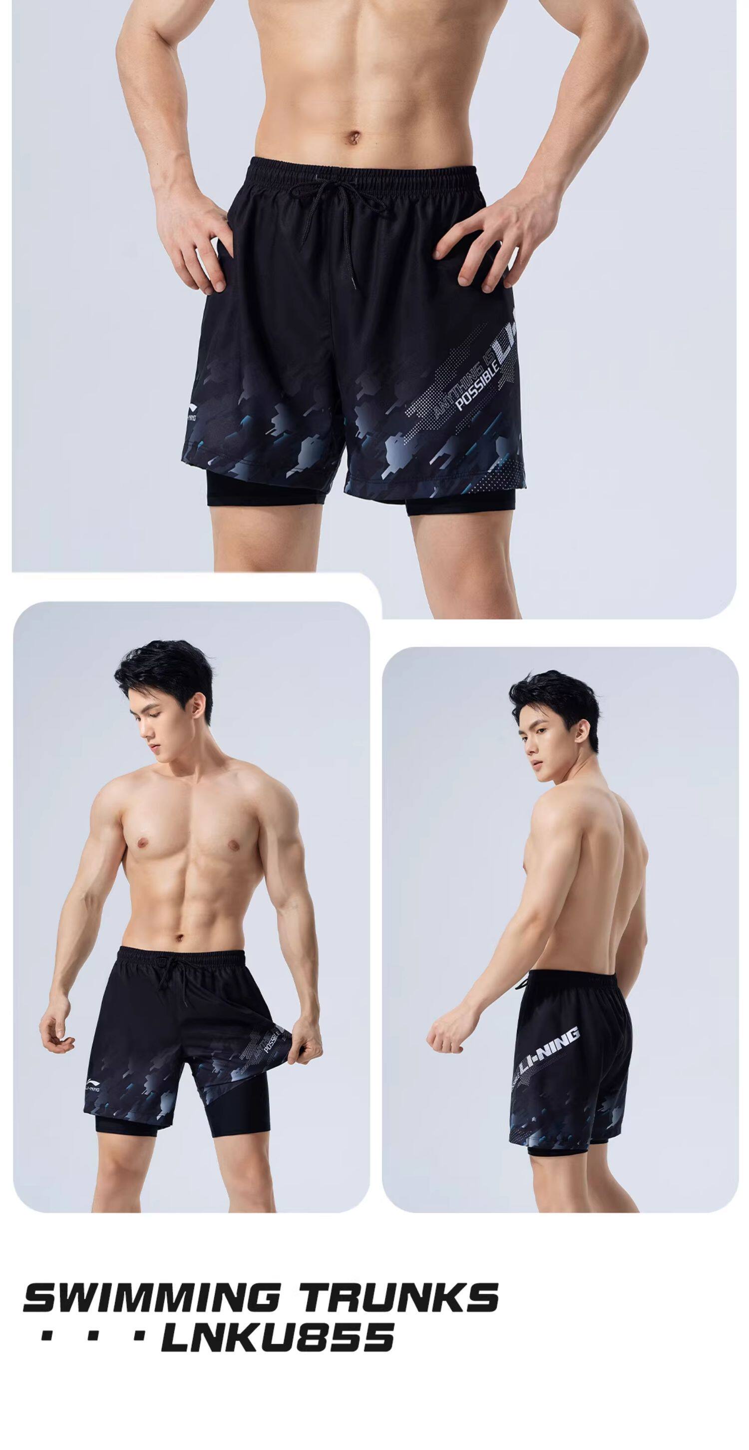 Li-Ning Men's Swimming Trunks Anti-Embarrassment Hot Spring Beach Shorts Adult Swimwear Swim Cap Swimming Goggles Three-Piece Set 2026 New Model