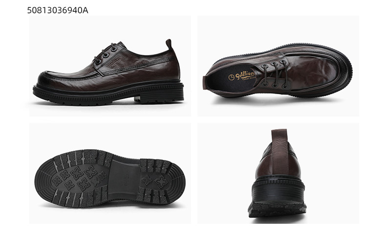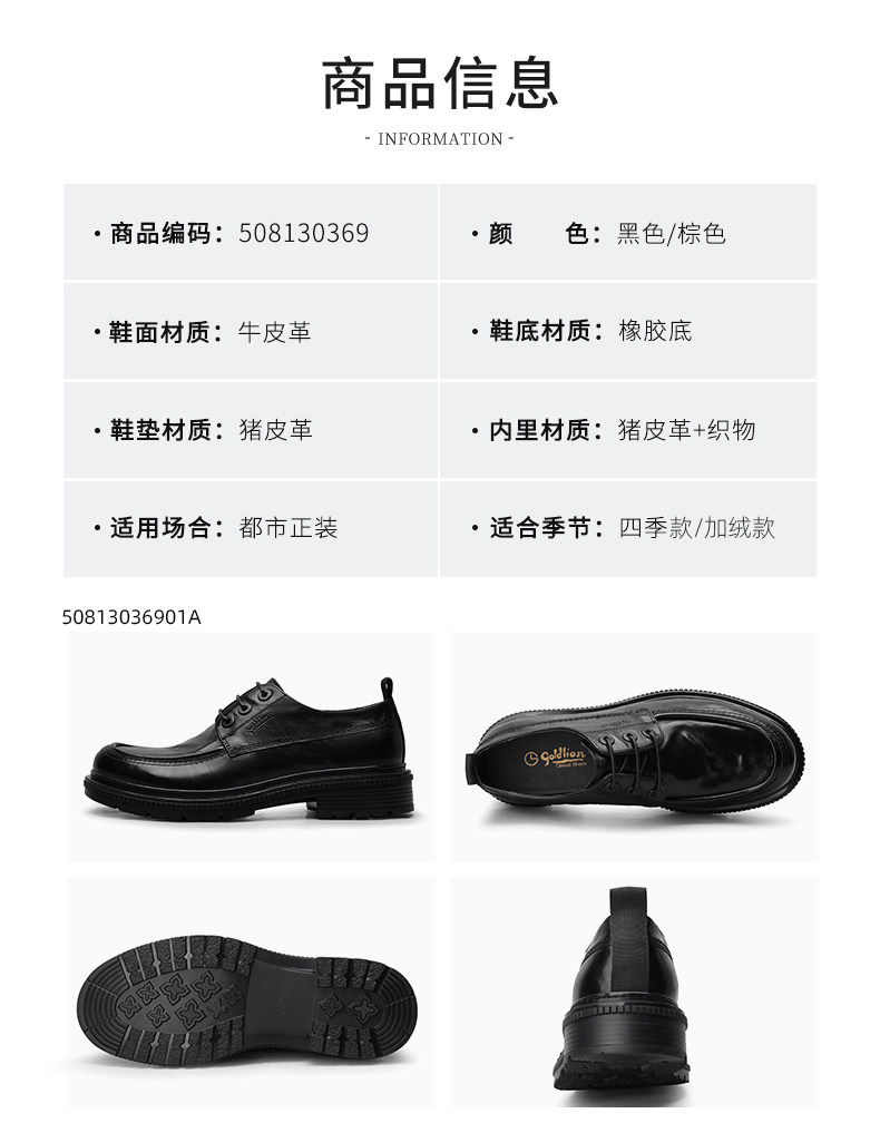 Goldlion Men's Shoes Official Authentic Spring New Business Leather Shoes Men's Thick-Soled Genuine Leather Height-Increasing Groom Wedding Shoes