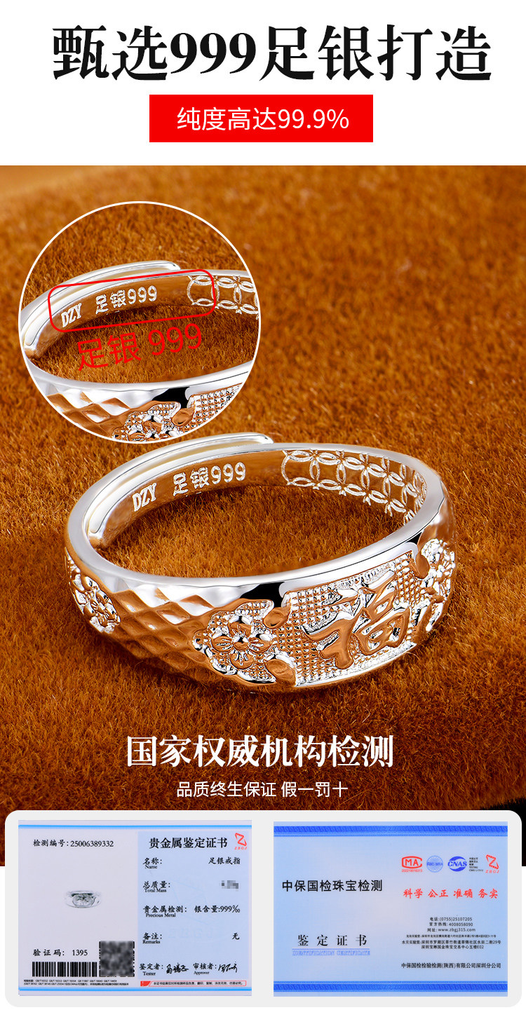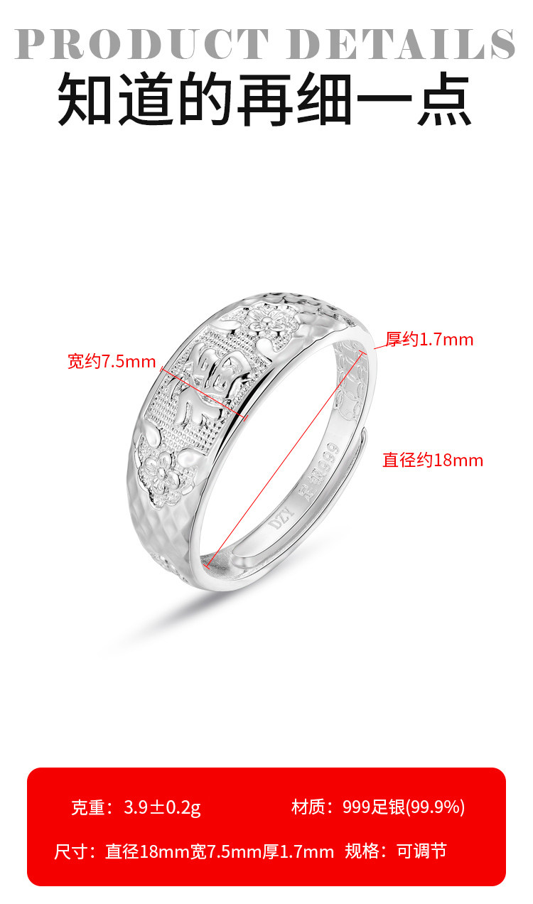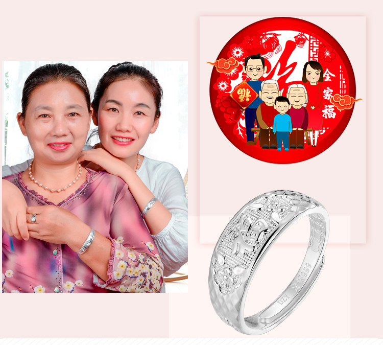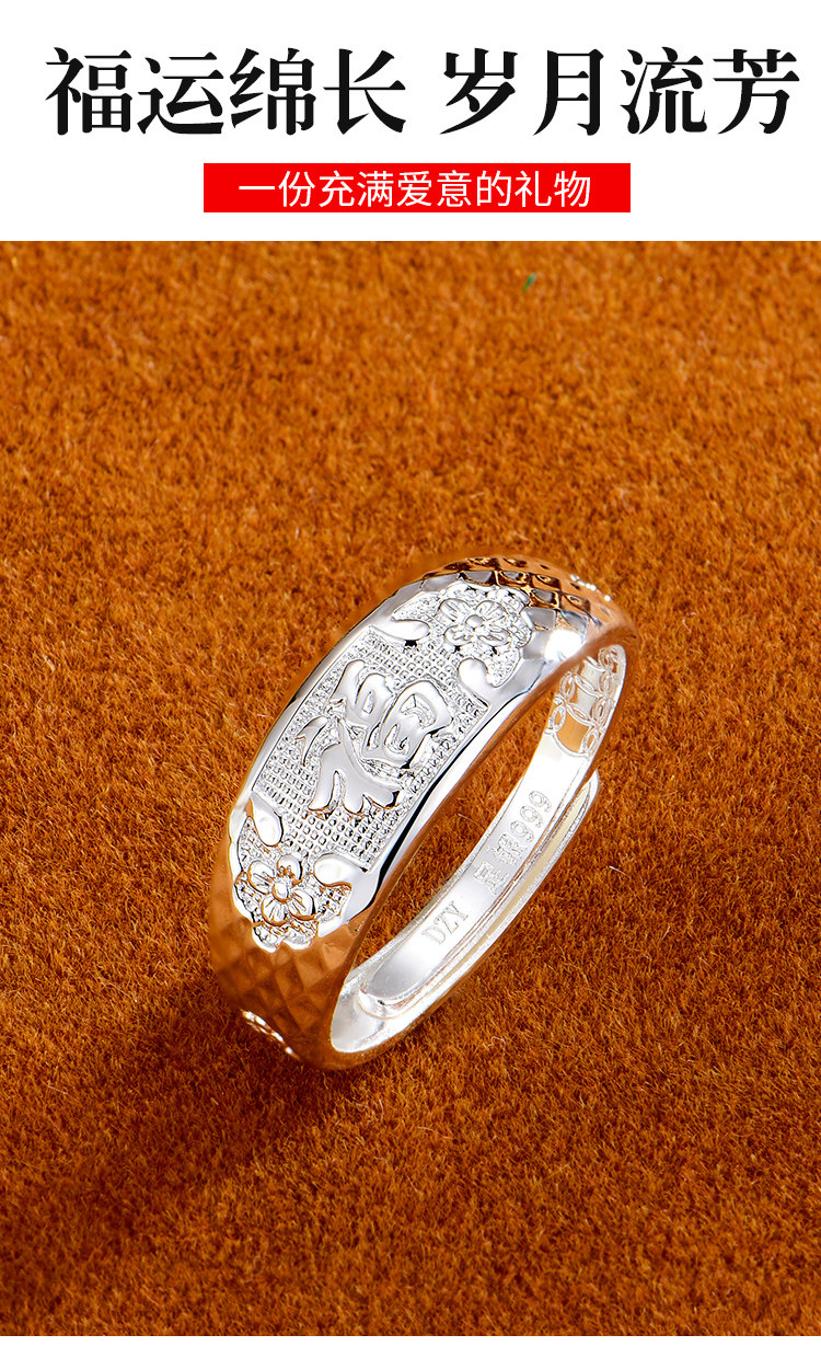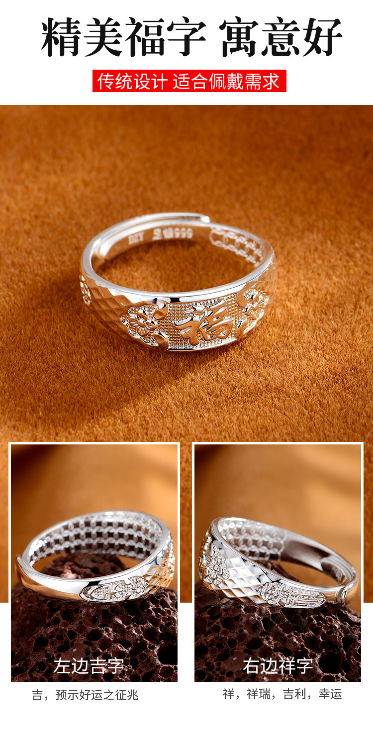 Elderly 999 Pure Silver Ring for Women, Mother's Style, Fashionable Open Ring, Auspicious Blessing Ring, Silver Jewelry, Gift for Grandma