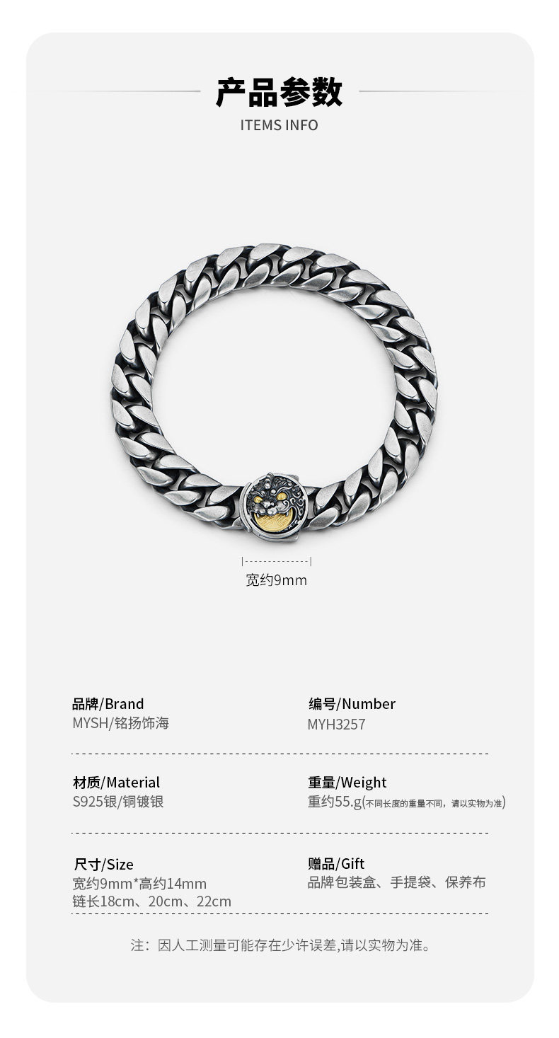 Mysh Pure Silver Pixiu Bracelet for Men, High-End, Domineering, Solid, Brings Good Fortune, Jewelry Gift, Original Design
