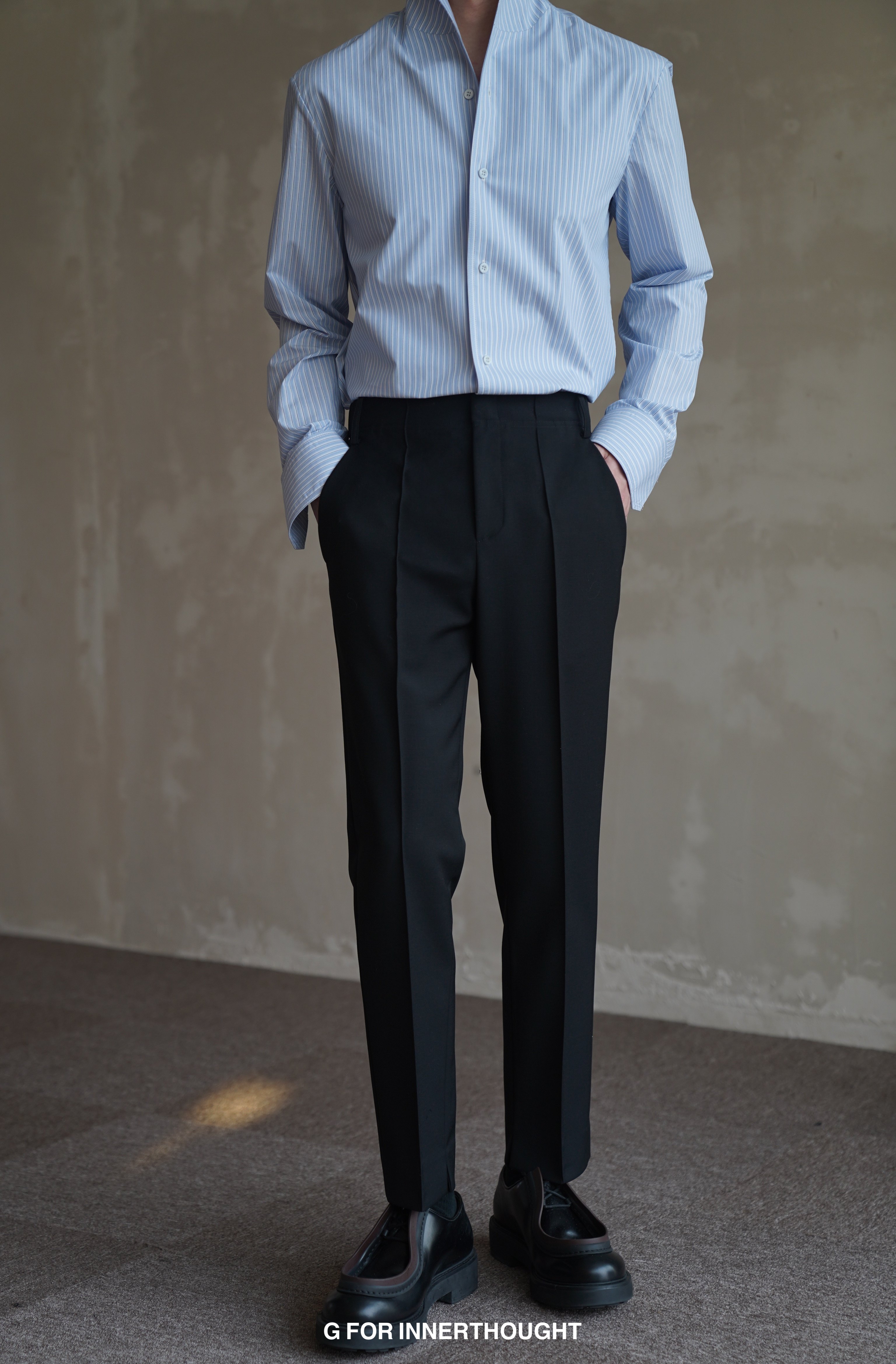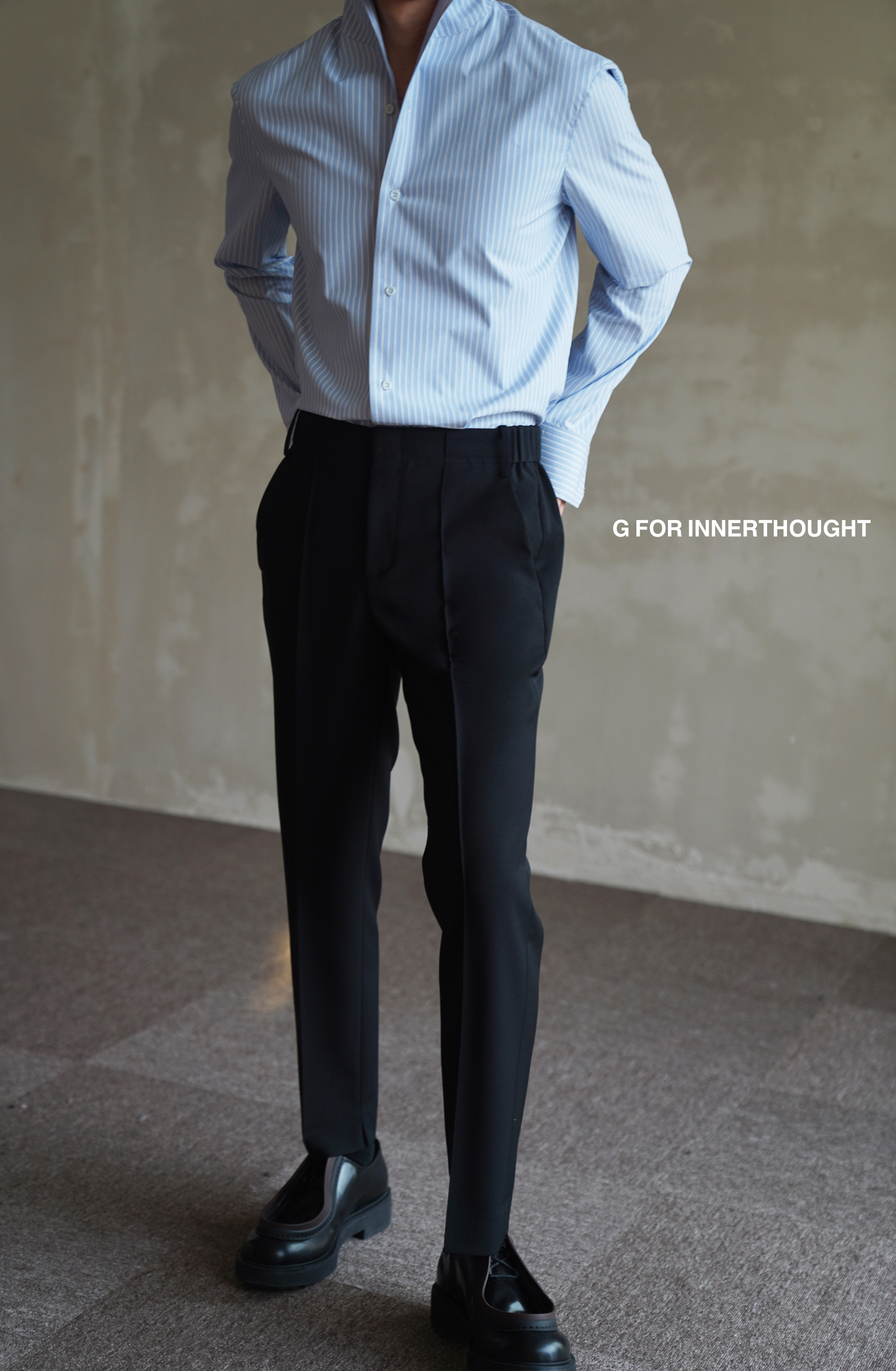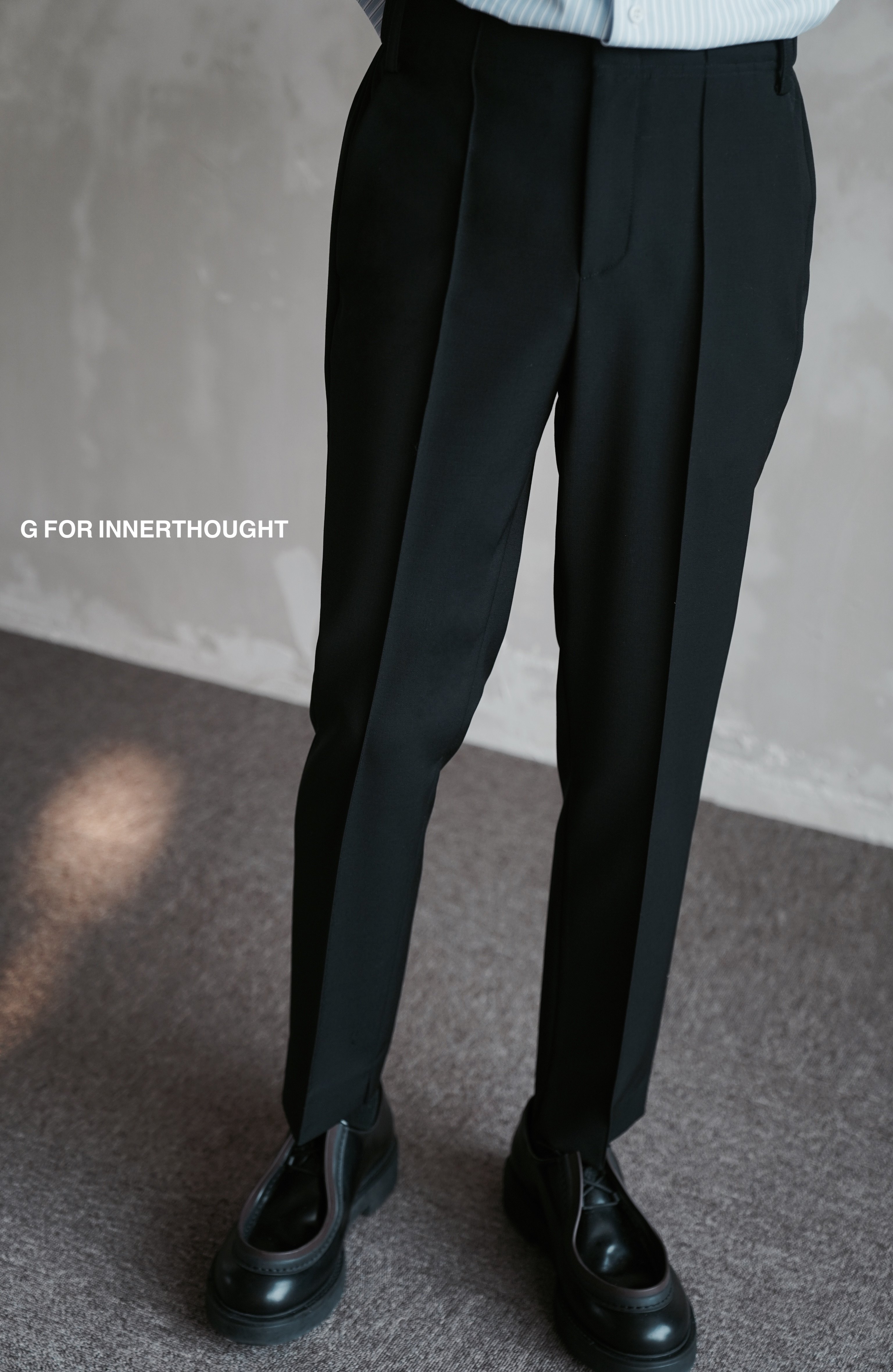 G for Innerthought Imported Black Stretch Wool Trousers Slim Fit Casual Nine-Point Straight-Leg Drape Autumn