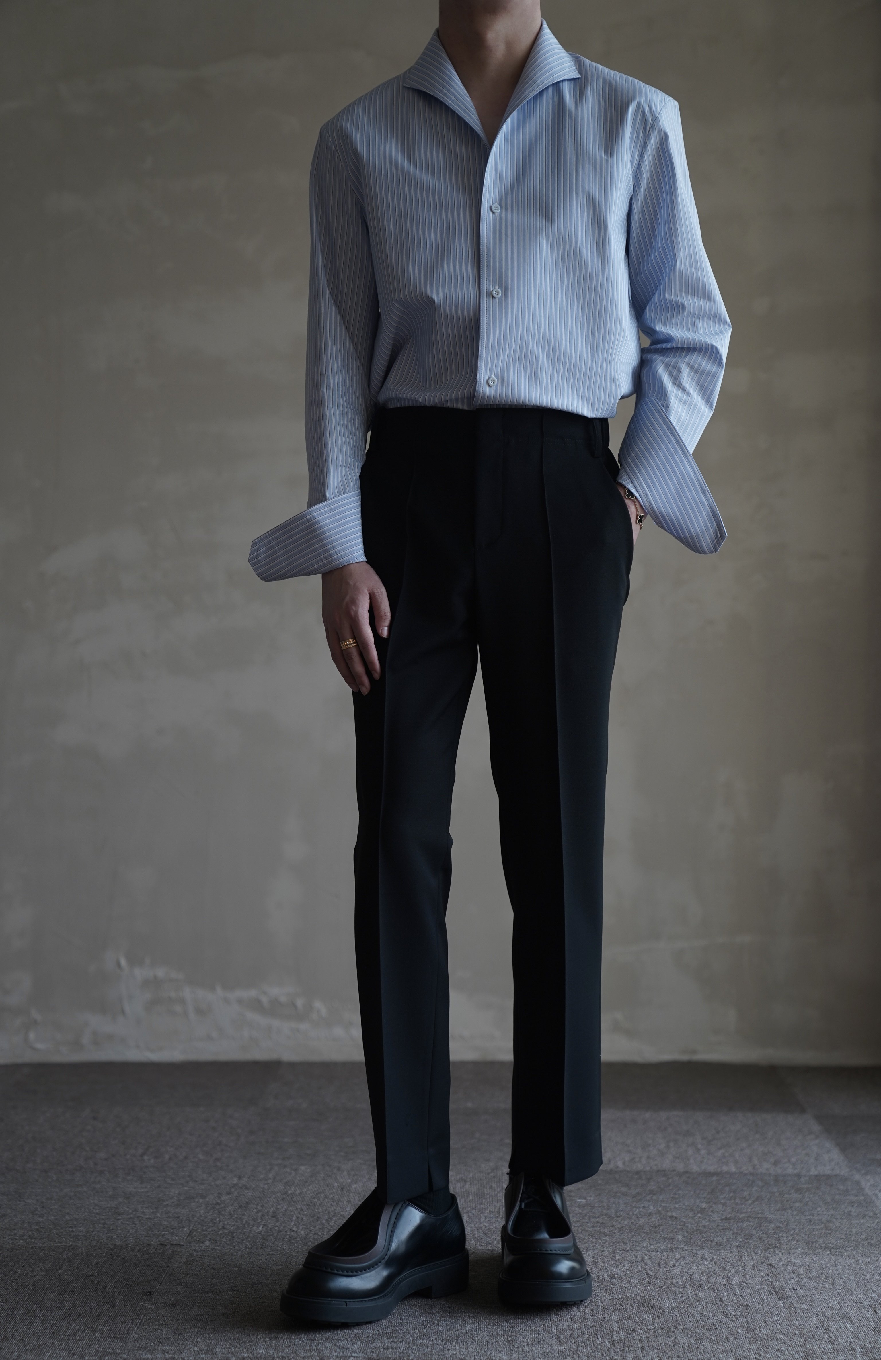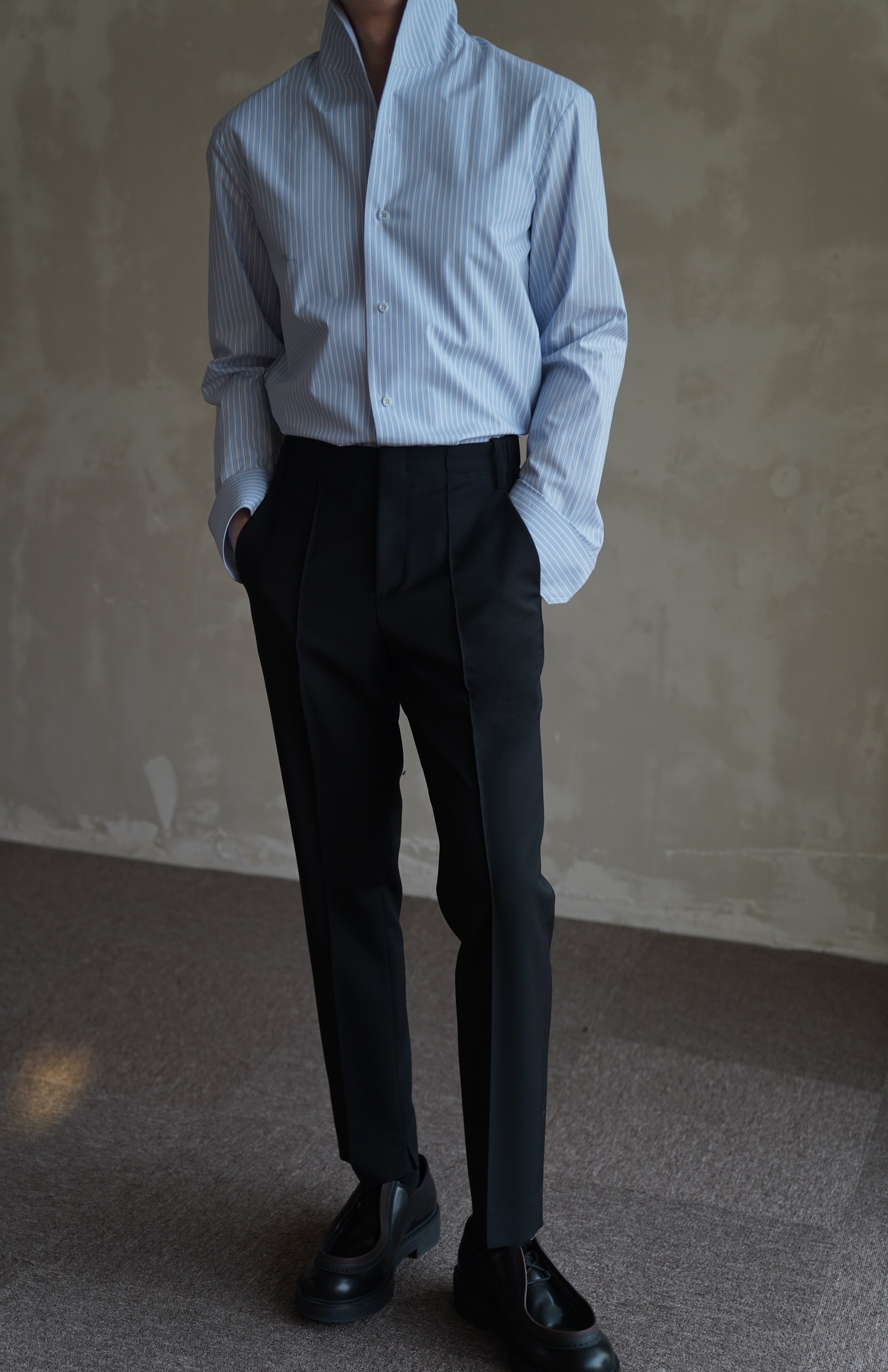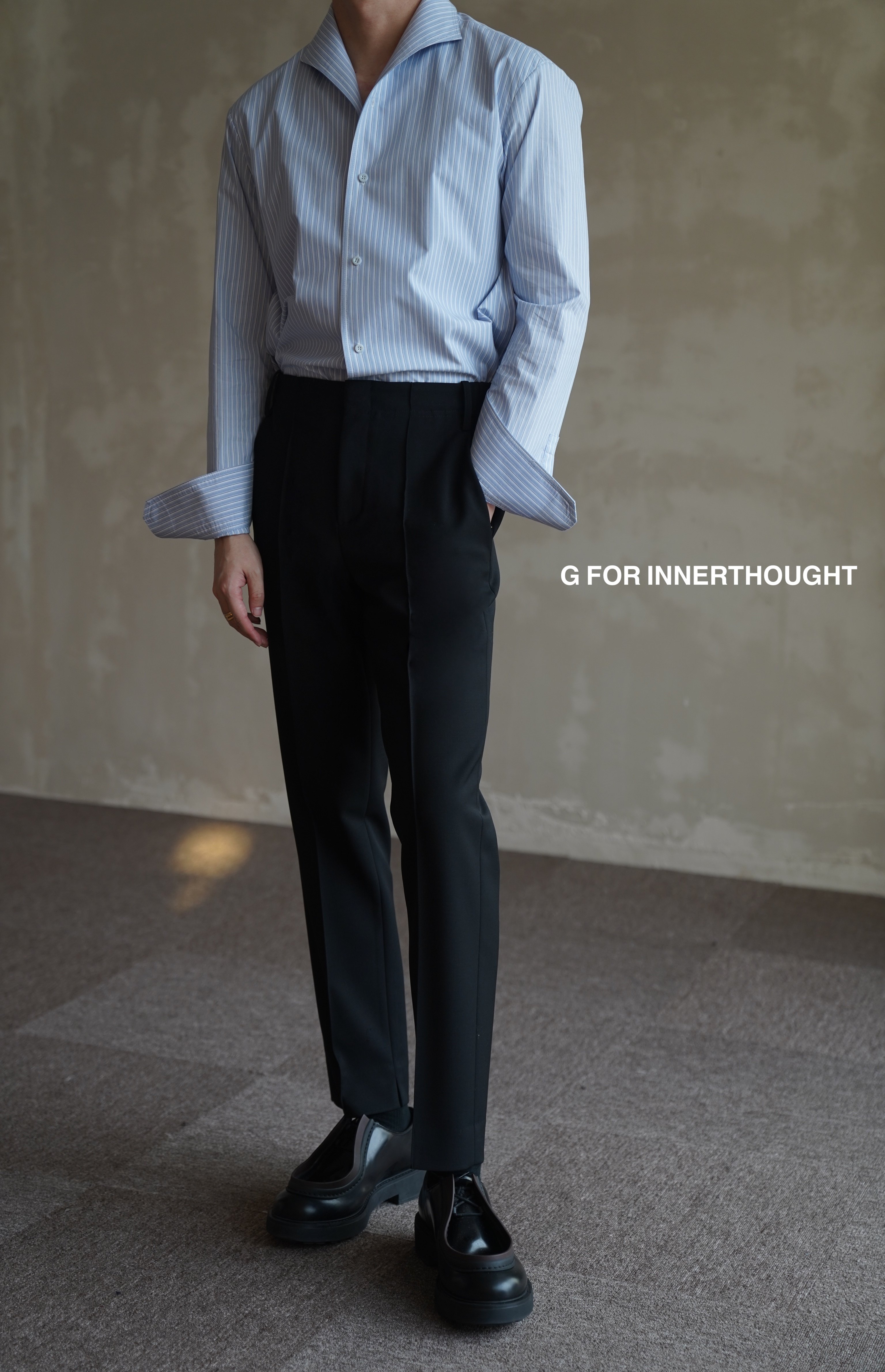 G for Innerthought Imported Black Stretch Wool Trousers Slim Fit Casual Nine-Point Straight-Leg Drape Autumn
