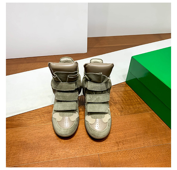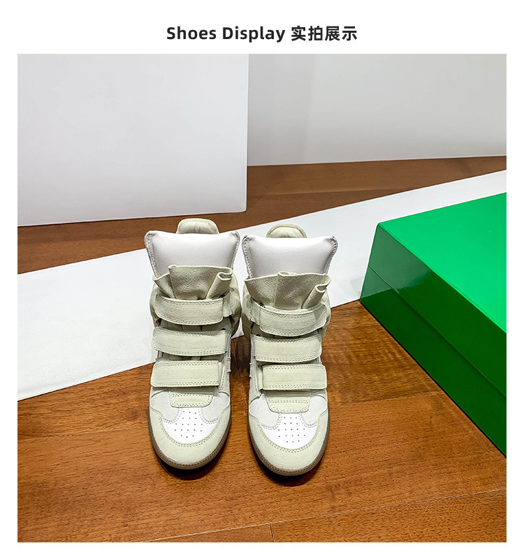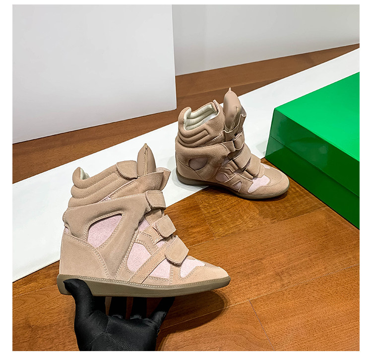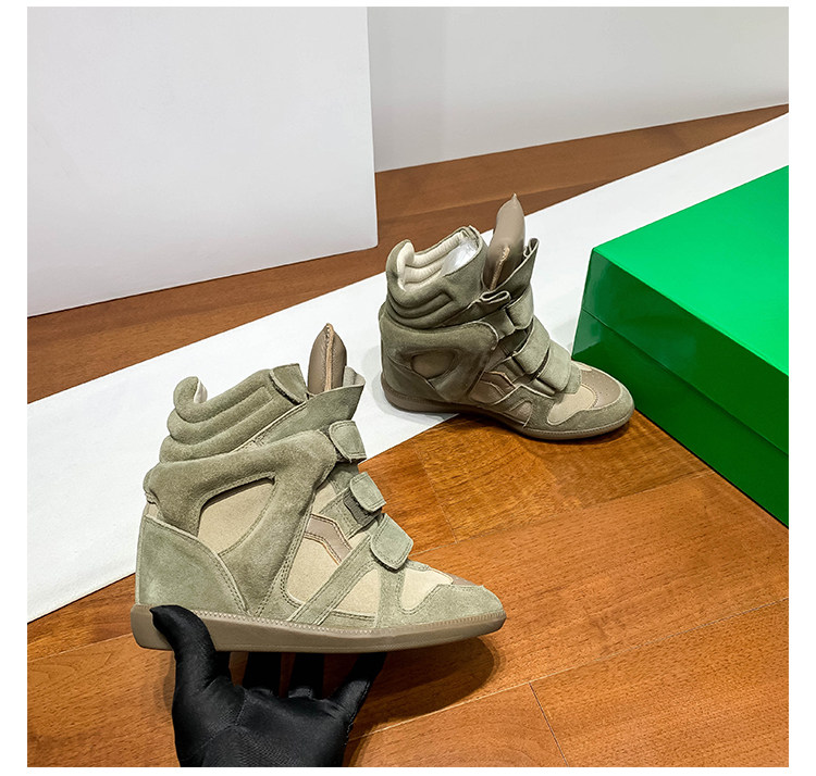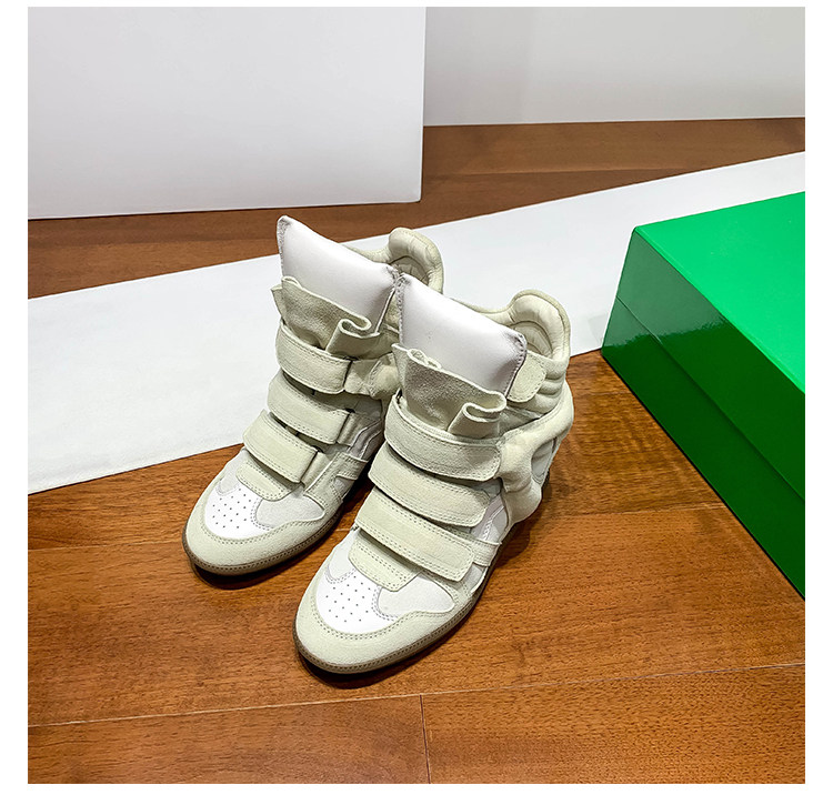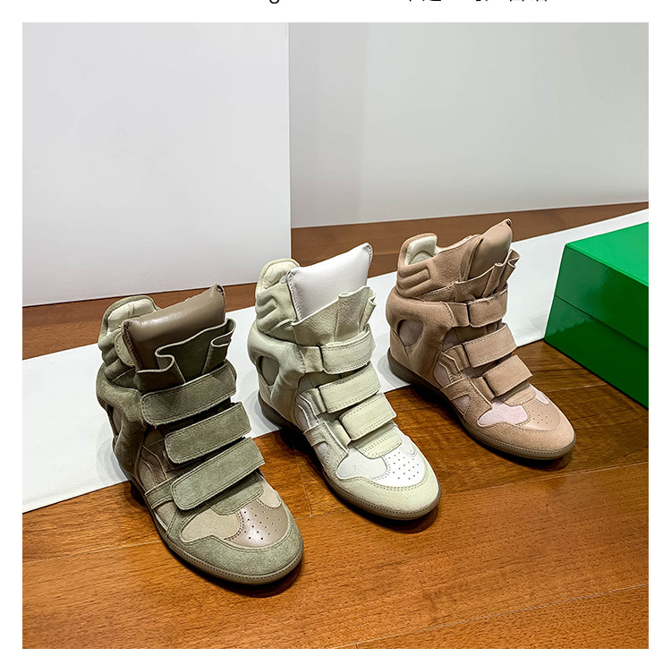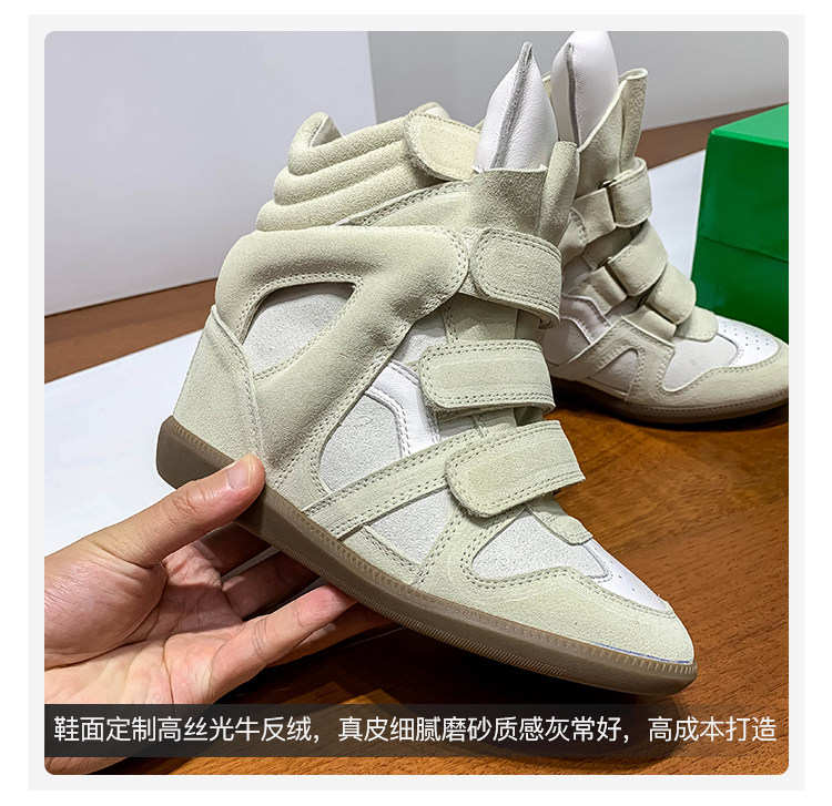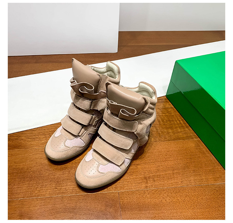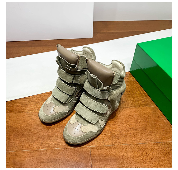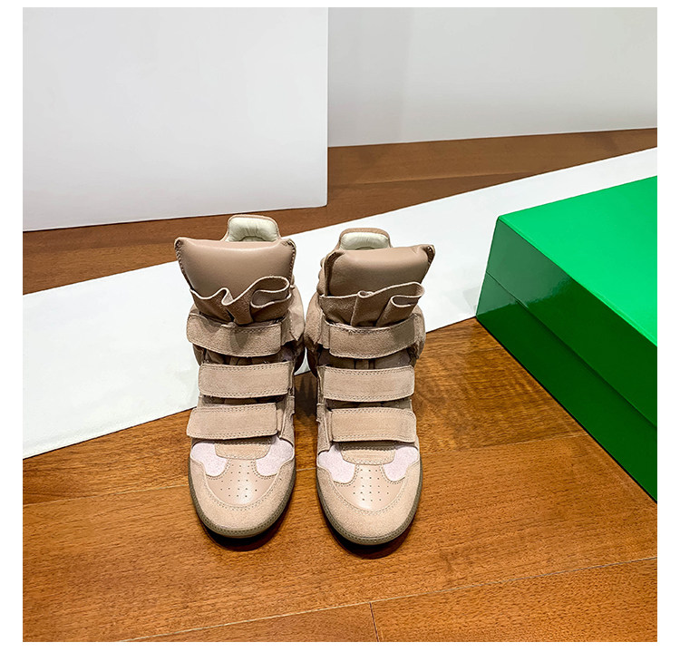 Ouyang Nana's Same Style 6cm Height-Increasing Hiking Shoes with Velcro, High-Top Thick-Soled Wedge Sneakers