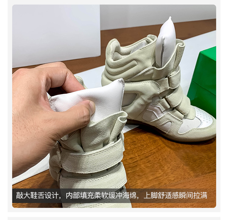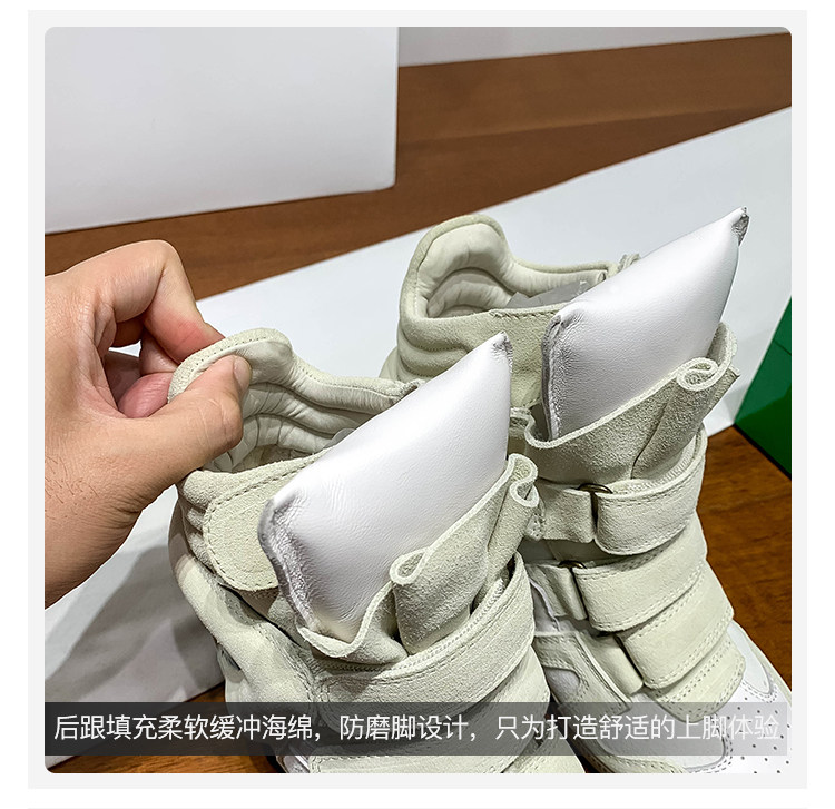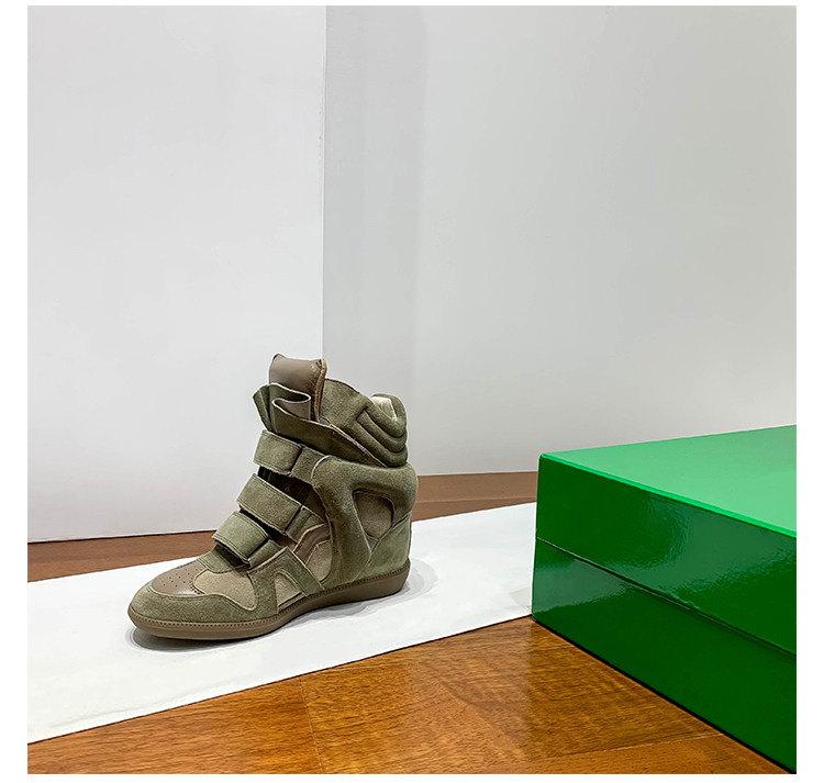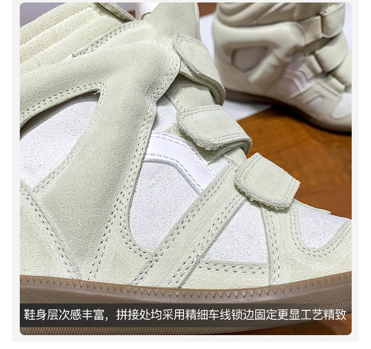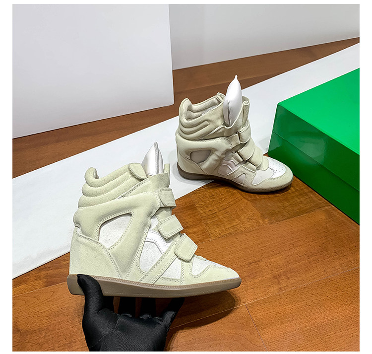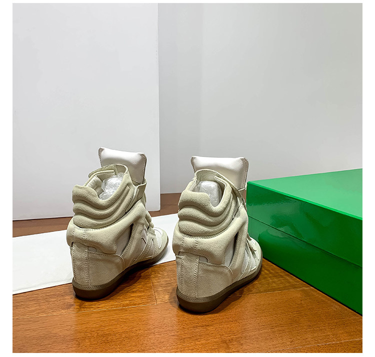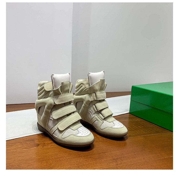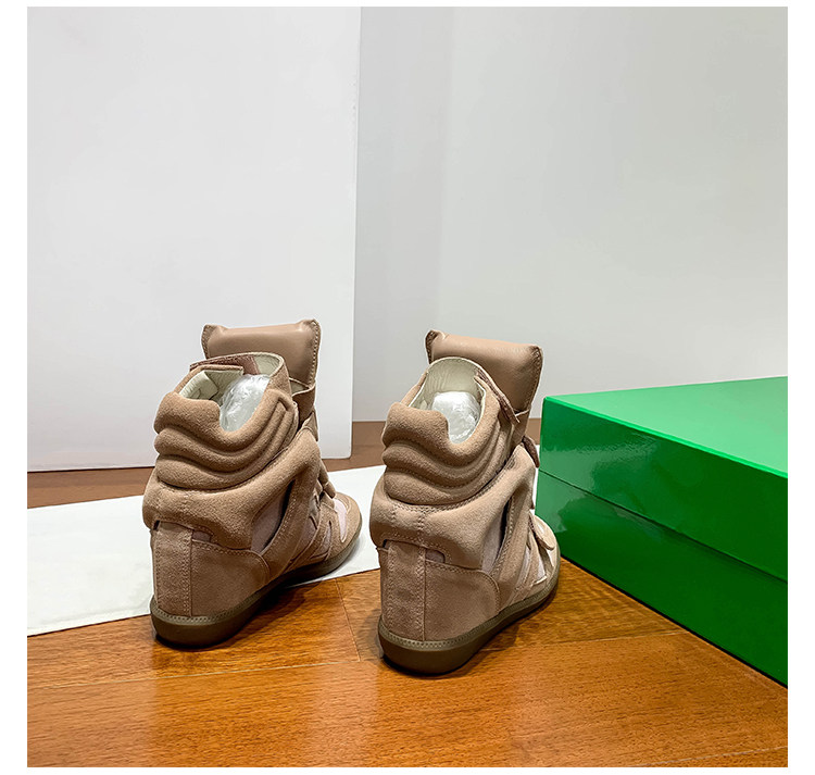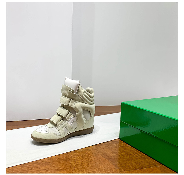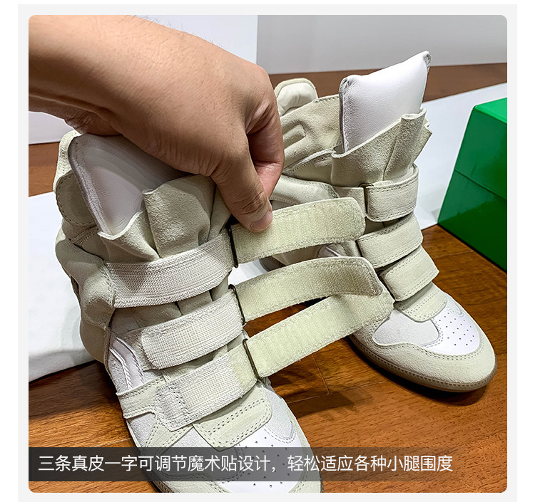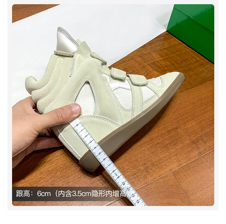 Ouyang Nana's Same Style 6cm Height-Increasing Hiking Shoes with Velcro, High-Top Thick-Soled Wedge Sneakers