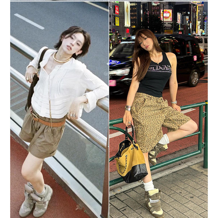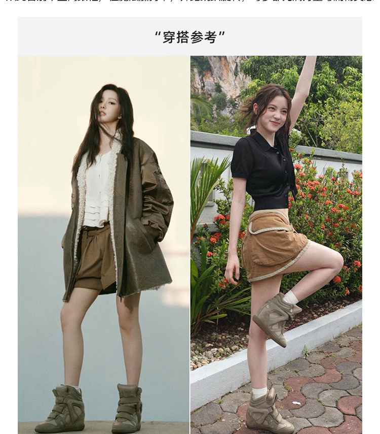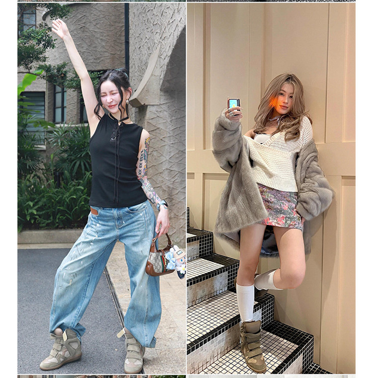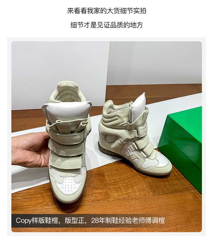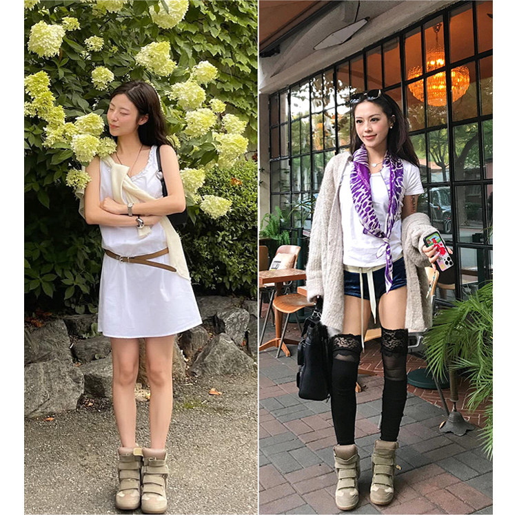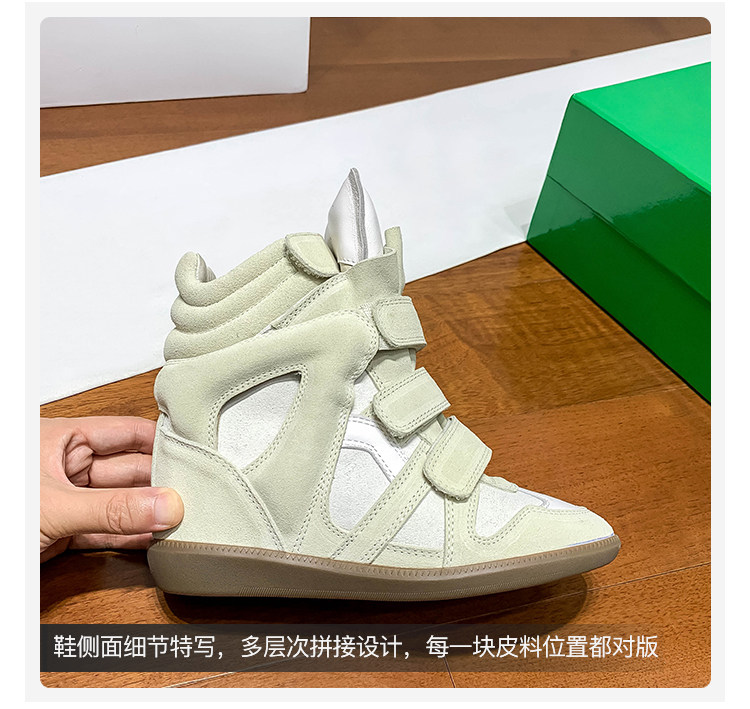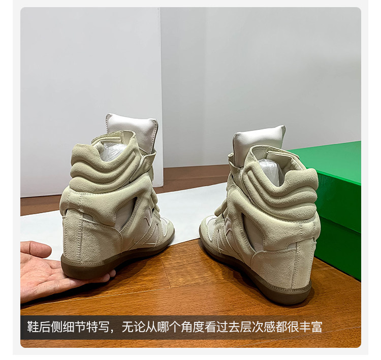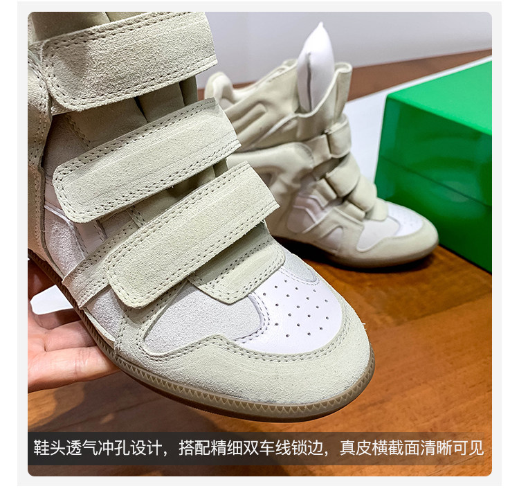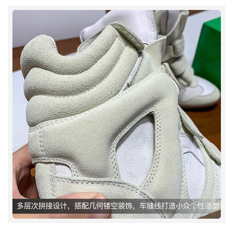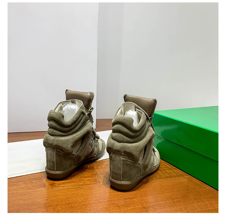 Ouyang Nana's Same Style 6cm Height-Increasing Hiking Shoes with Velcro, High-Top Thick-Soled Wedge Sneakers