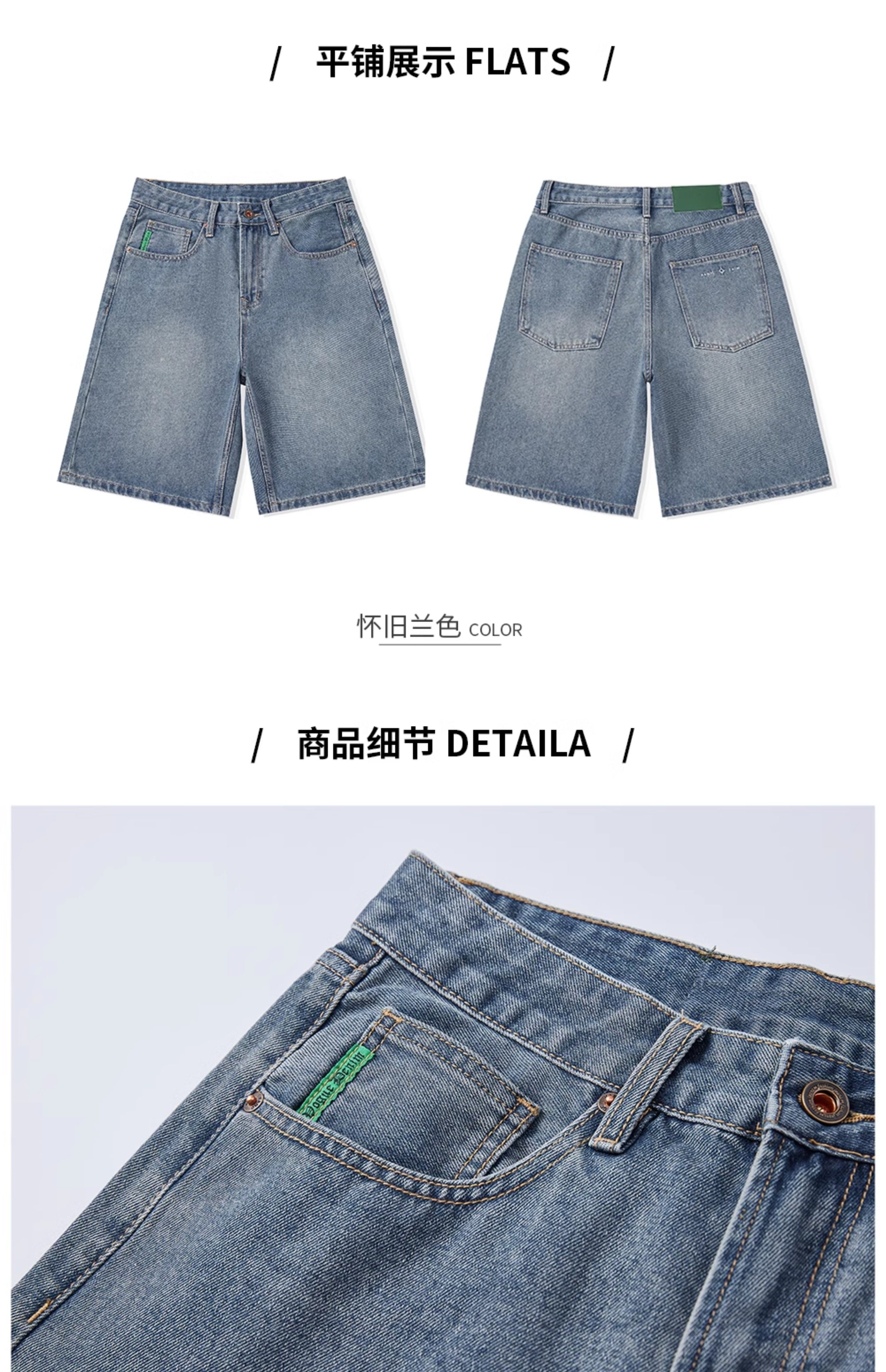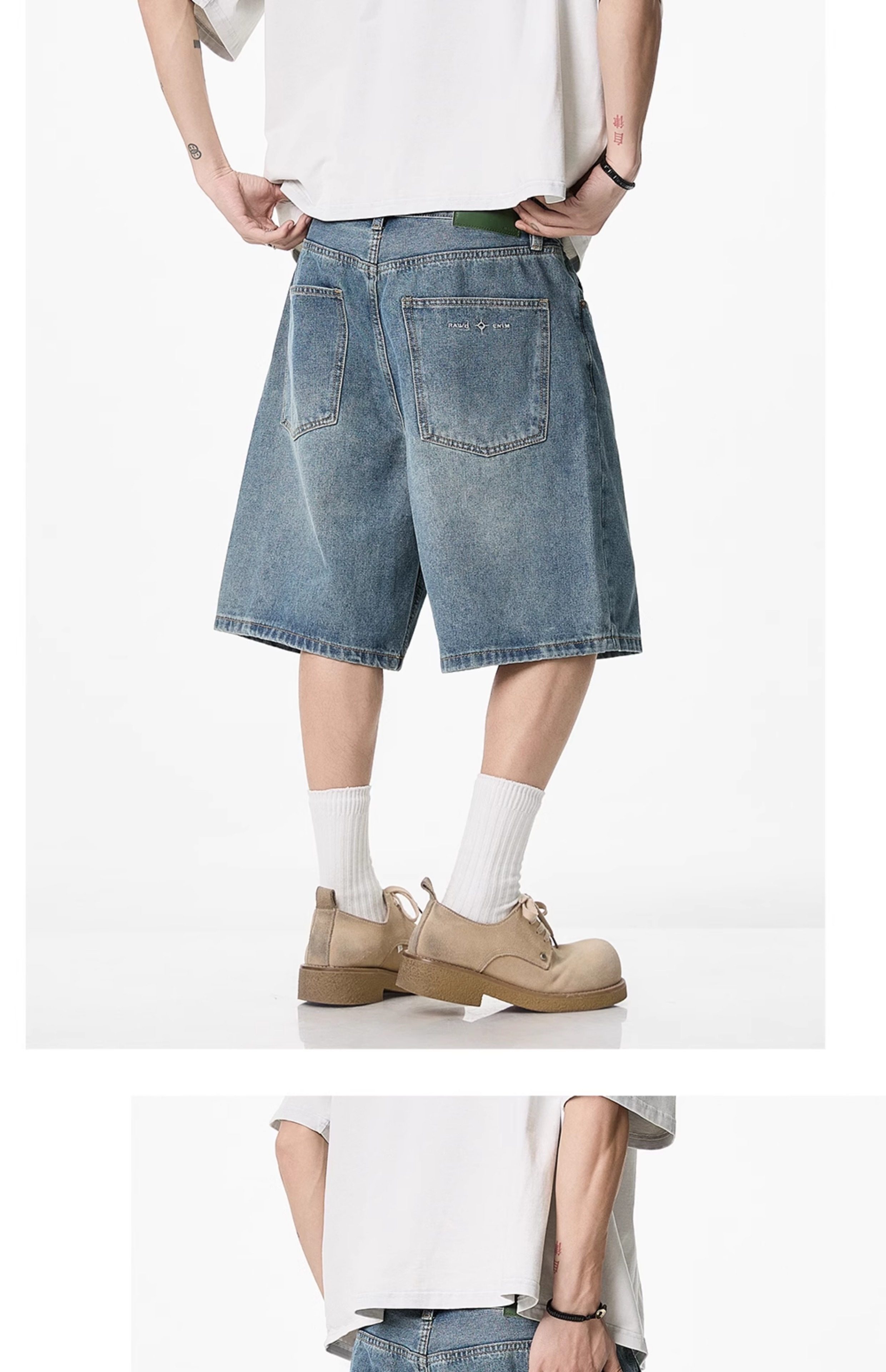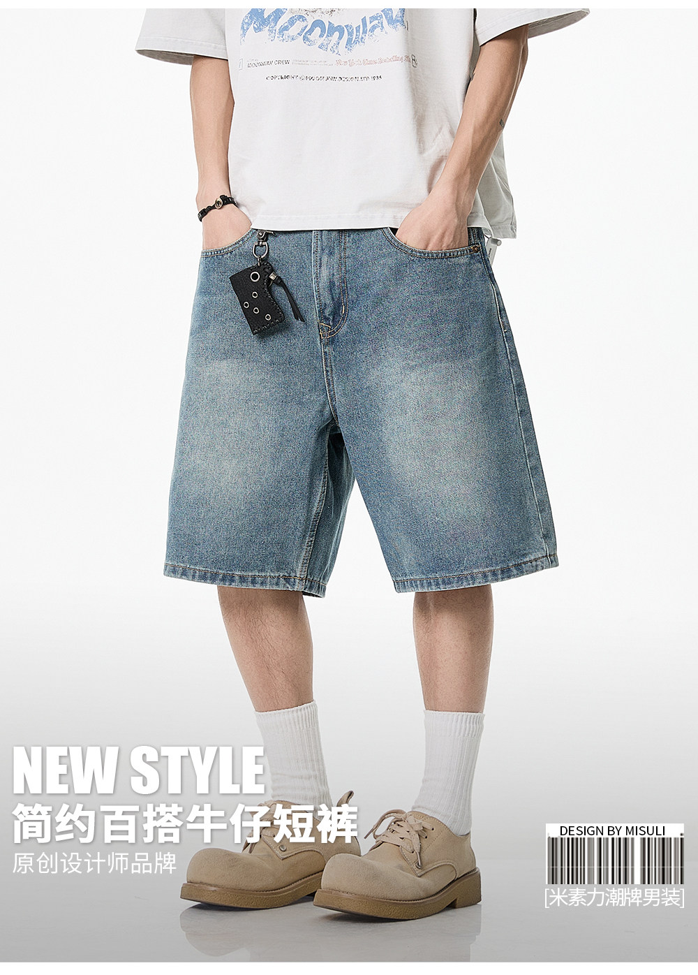 American Retro Heavy Washed Denim Shorts for Men, Trendy and Cool, Loose Fit, Plus Size, Five-Point Pants, Summer Thin Style