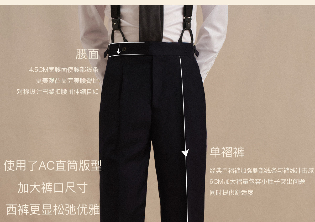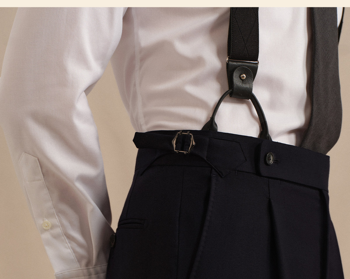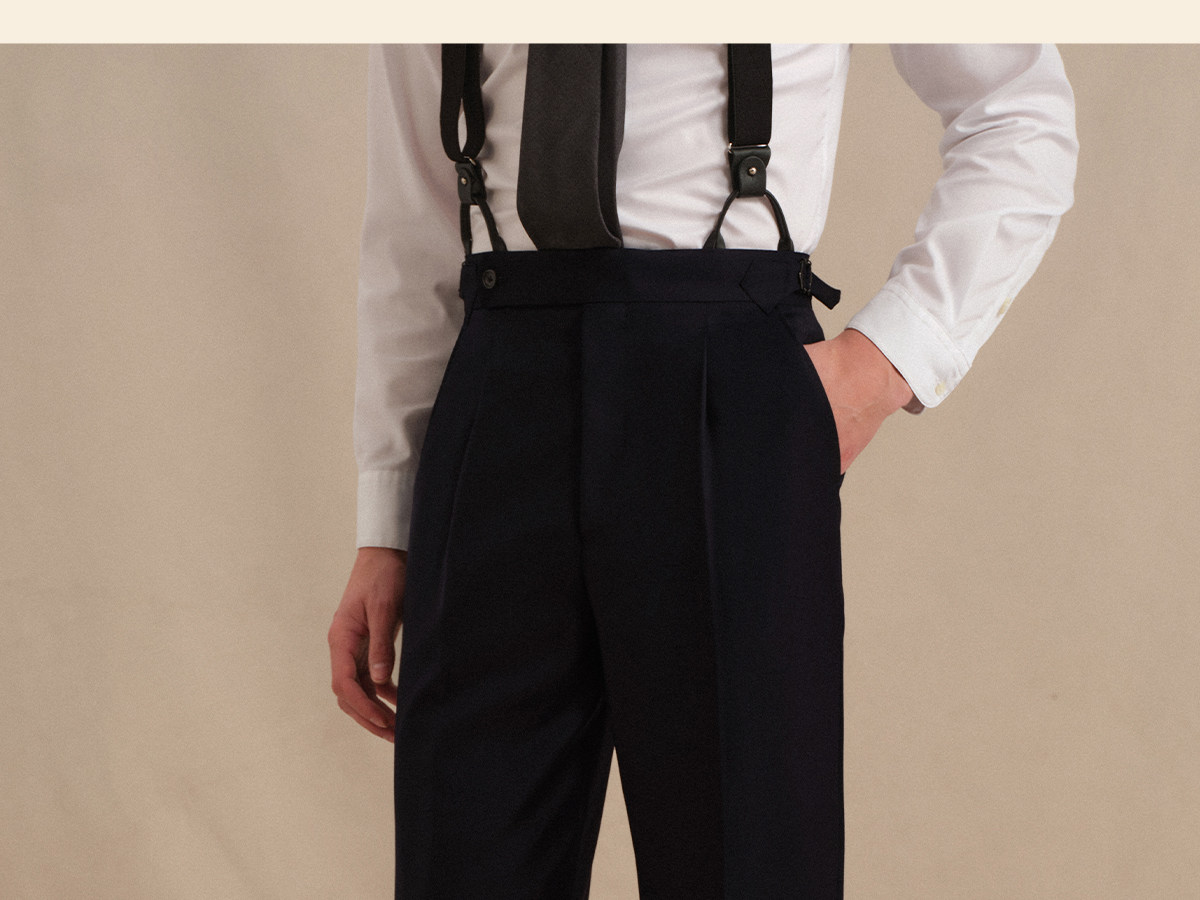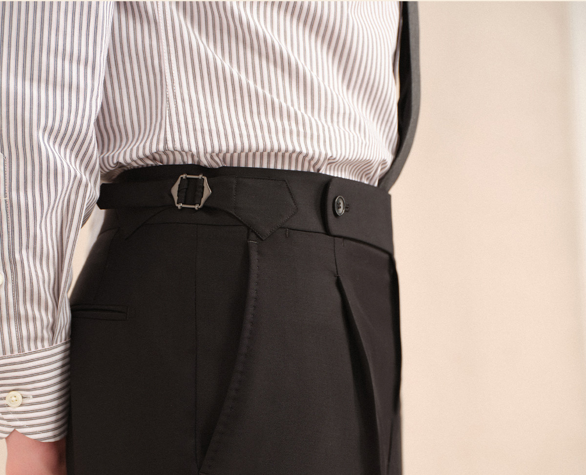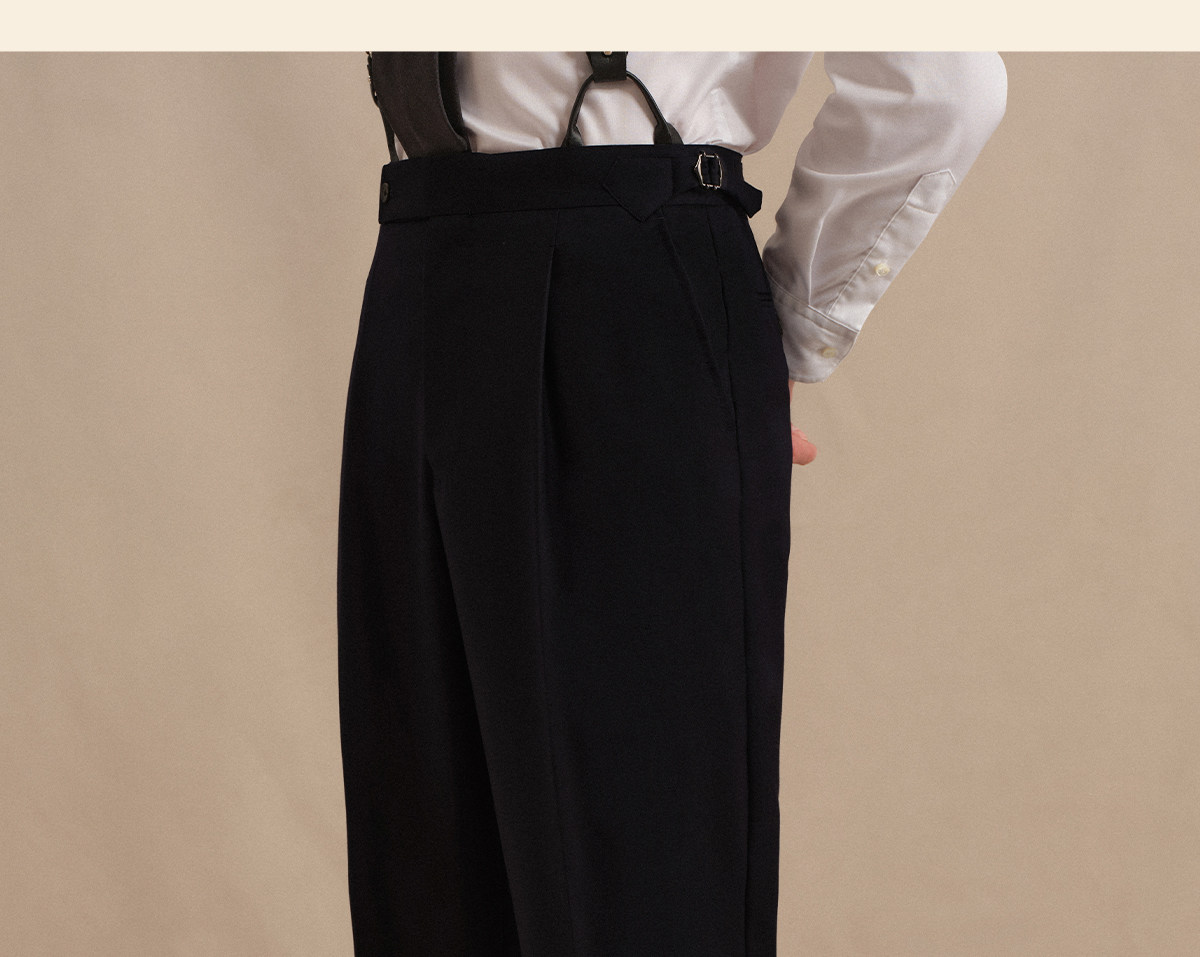 Acme Cultum Gentleman's Armor Italian 130S Wool High-Waisted Single-Pleat Straight-Leg Dress Pants Men's Formal Trousers