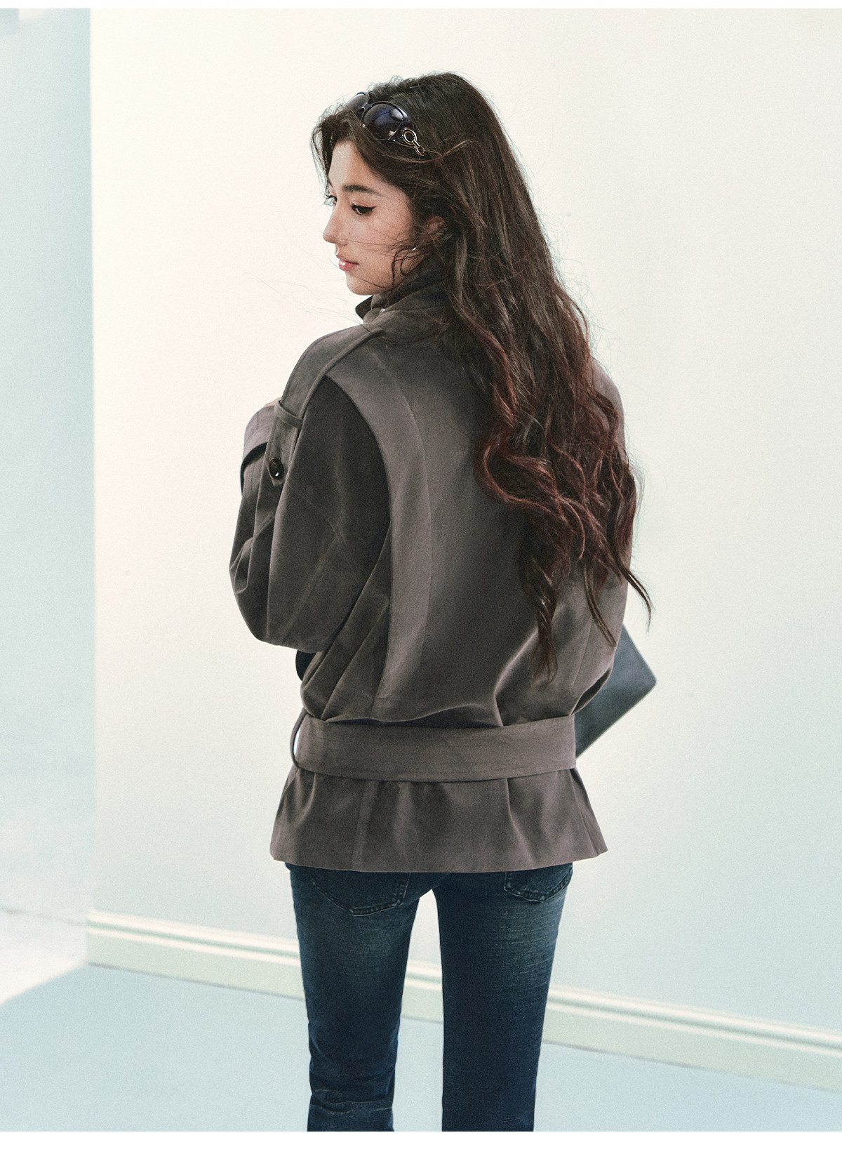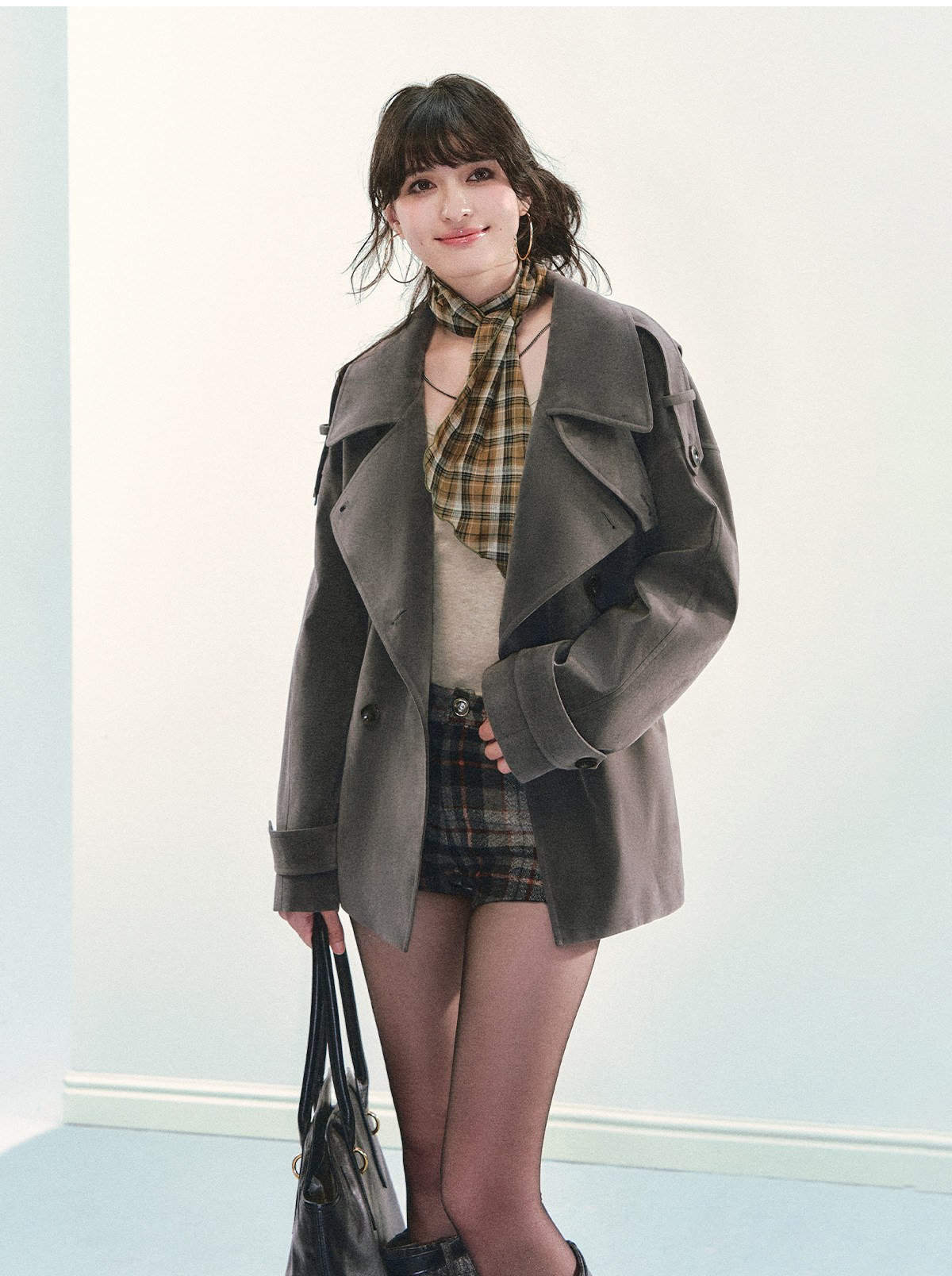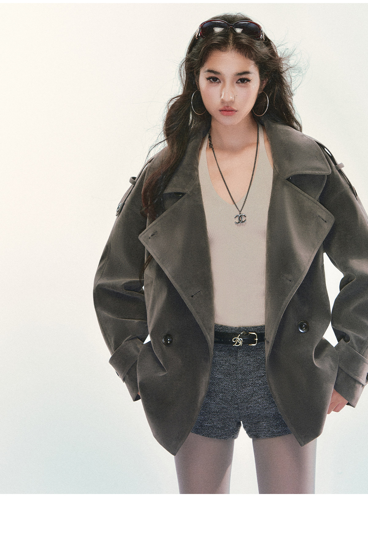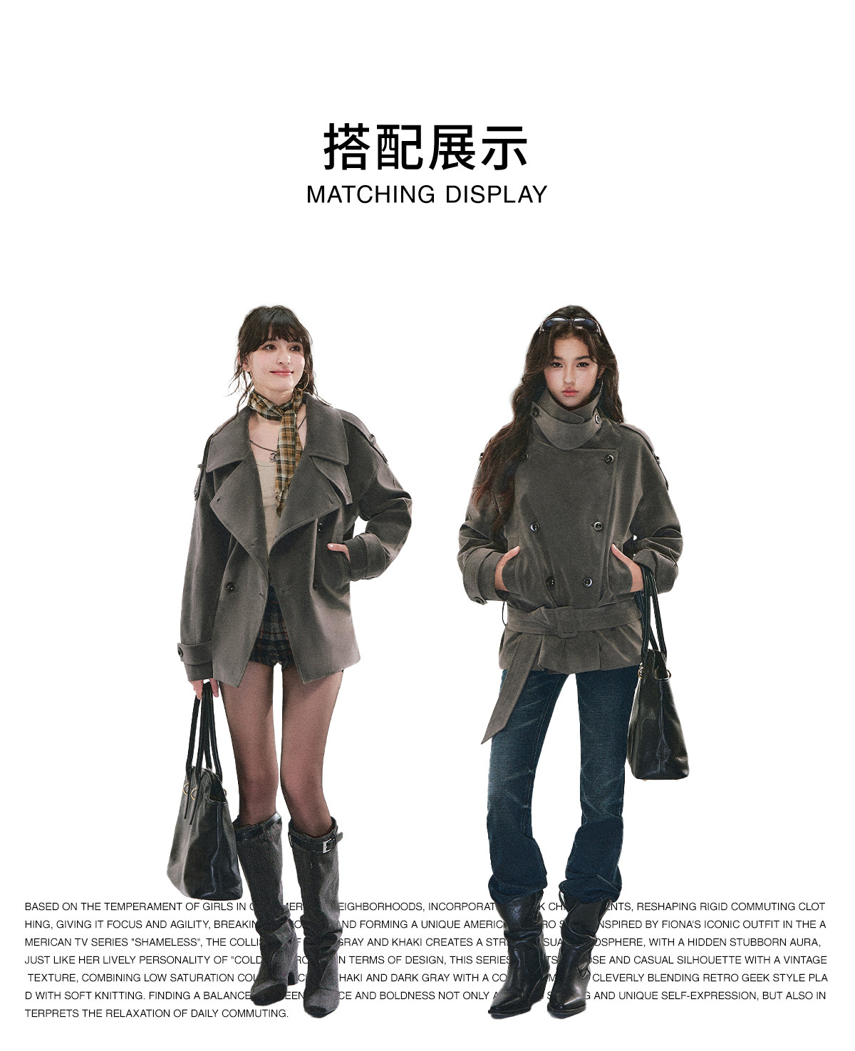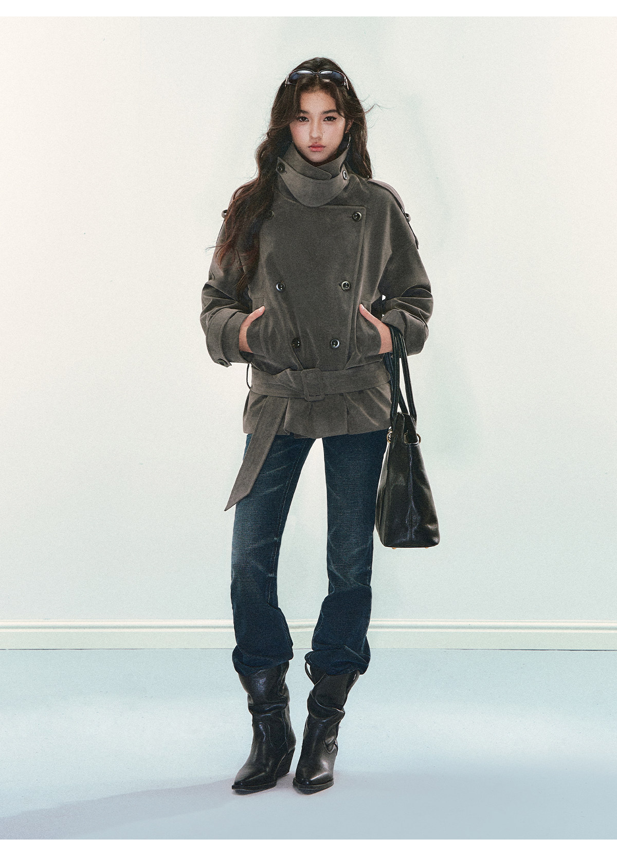 『Huyiyao's Style』Andyet Ad1 Suede Trench Coat Jacket for Women with Stand Collar, Double-Breasted, Padded Outerwear Top
