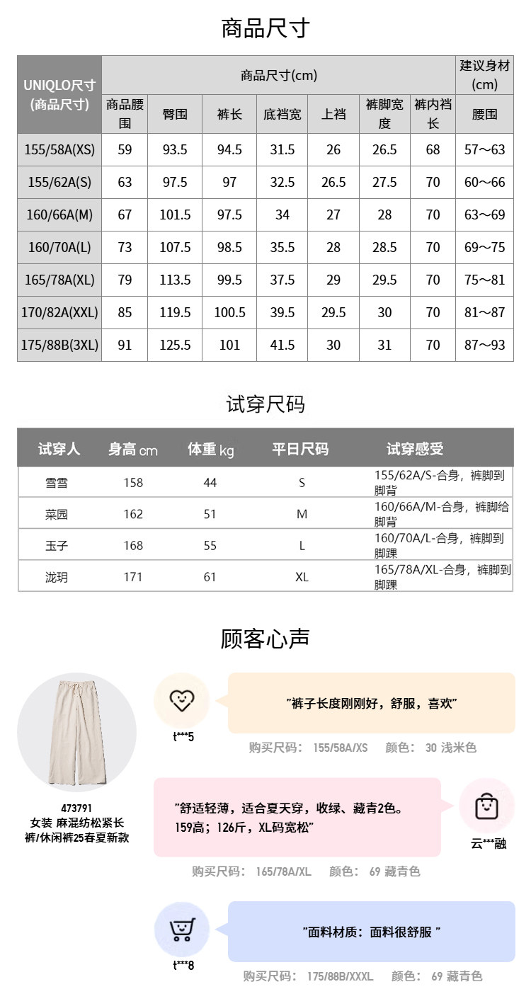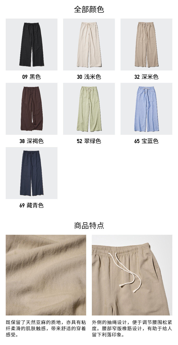 Regular Style Uniqlo Women's Linen Blend Elasticated Trousers/Casual Pants 473791