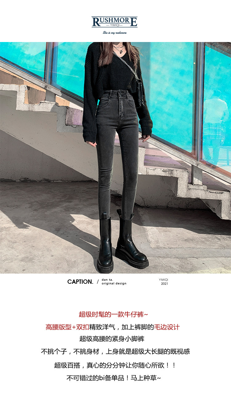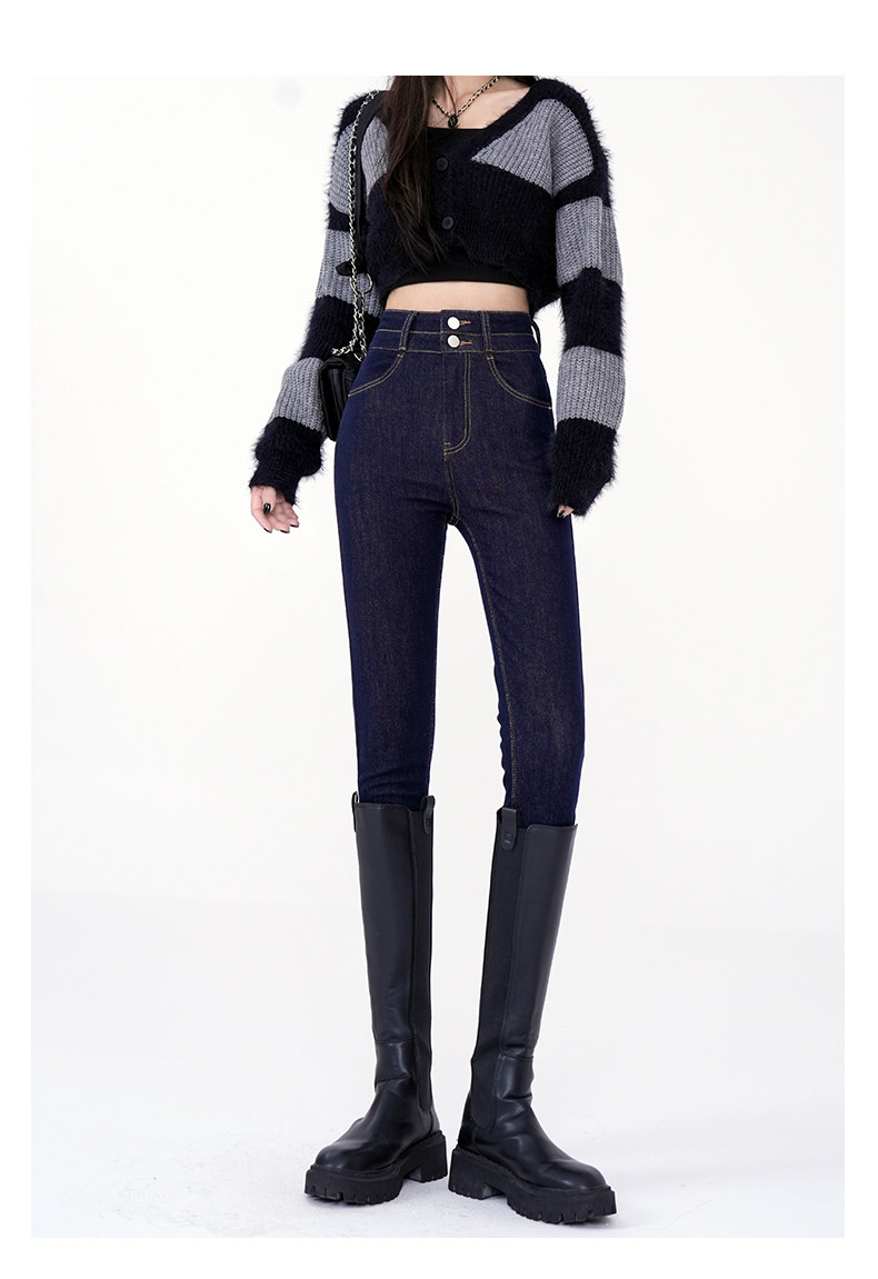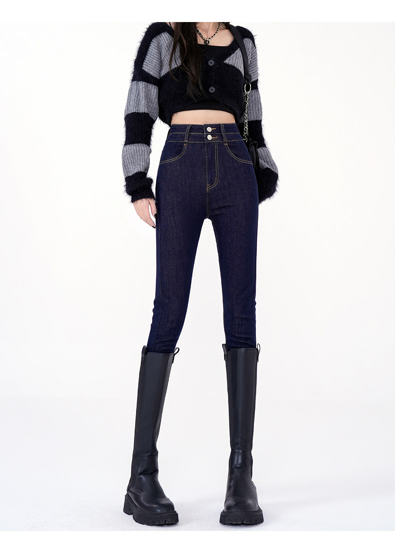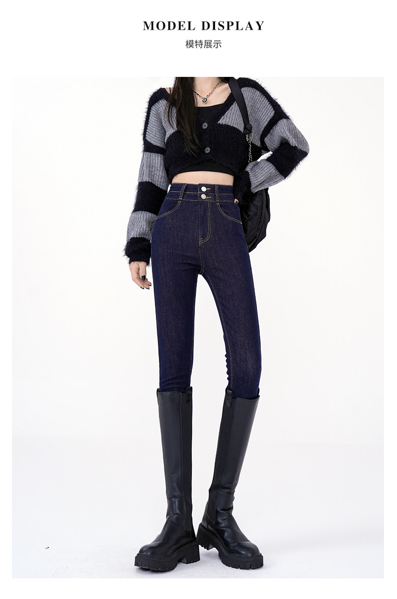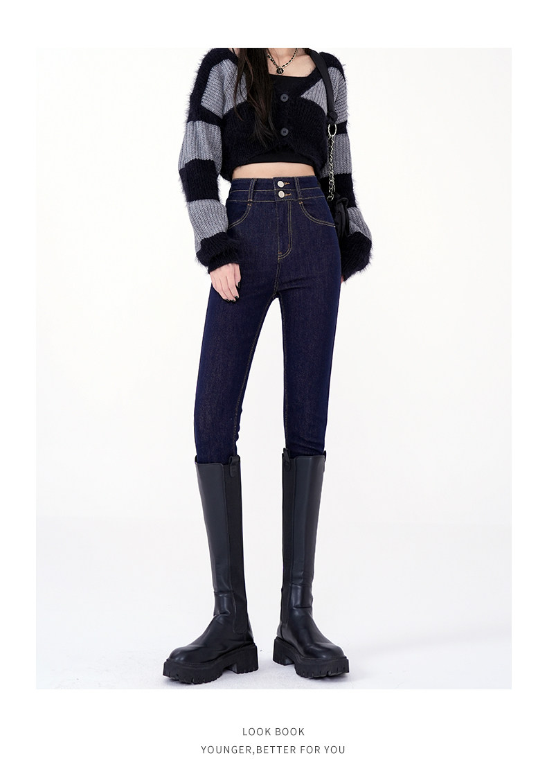 High-Waisted Women's Jeans 2026 Spring New Slim-Fit Smoky Gray Skinny Pencil Pants with Fleece Lining