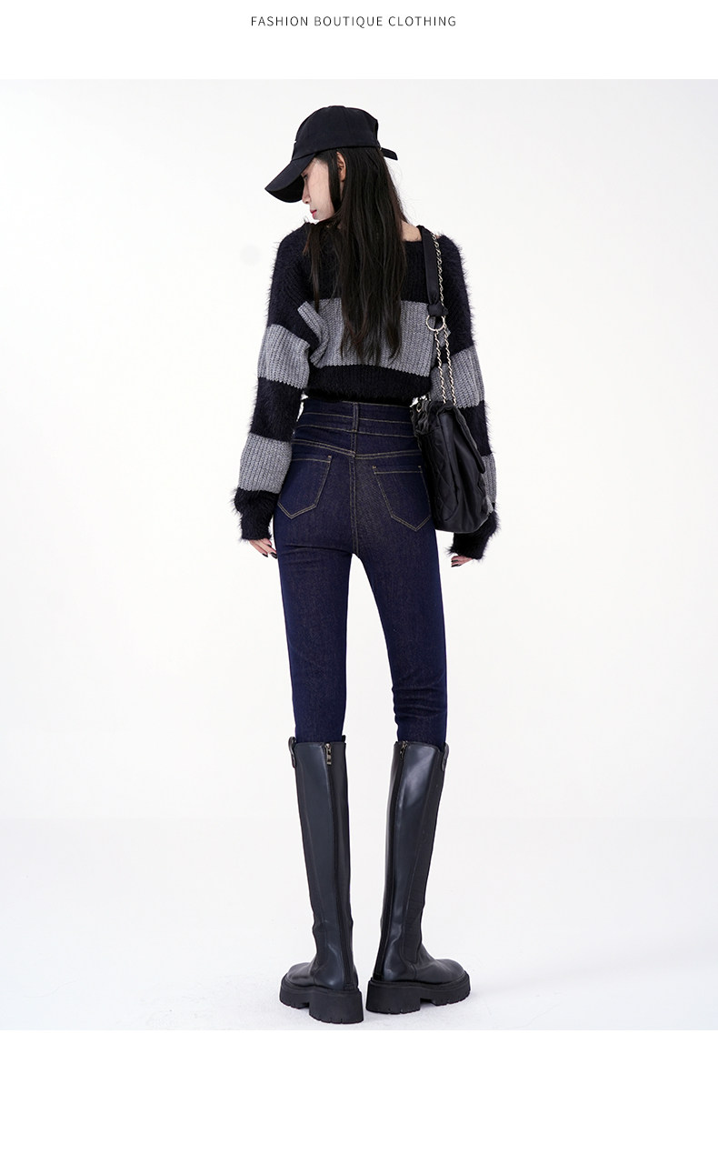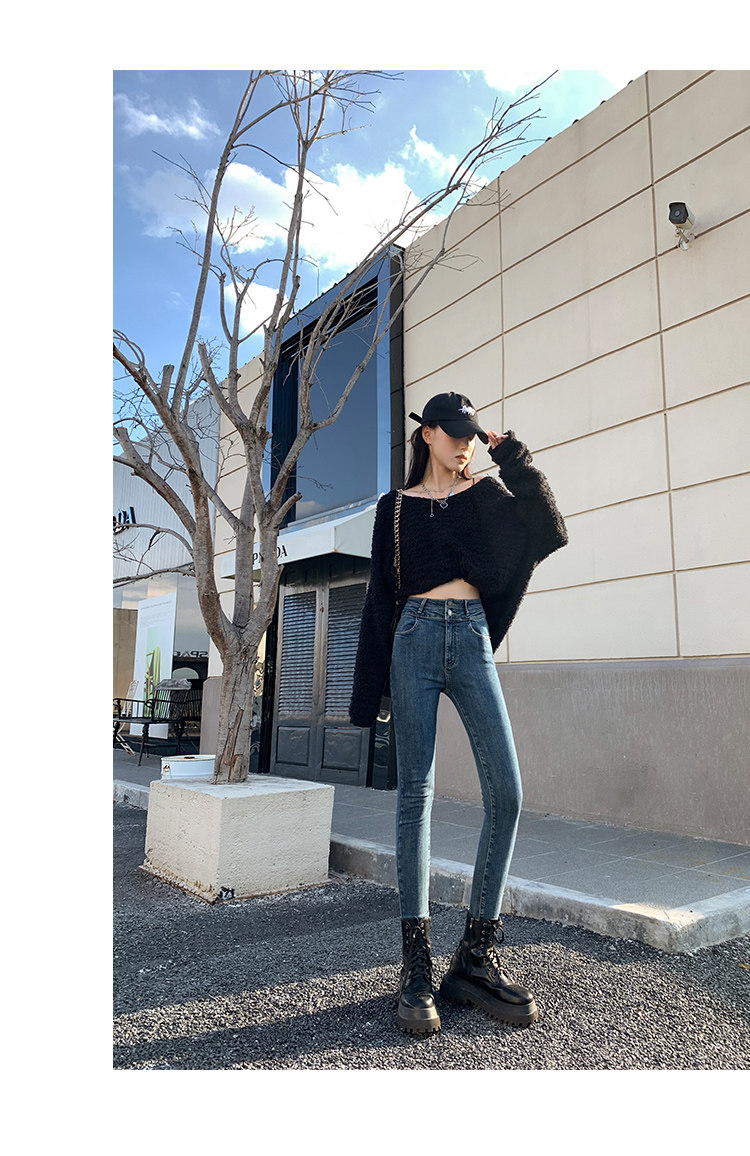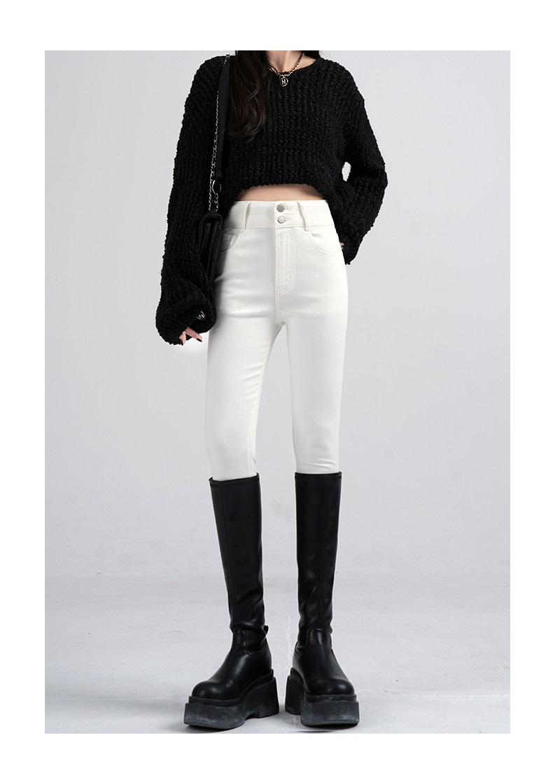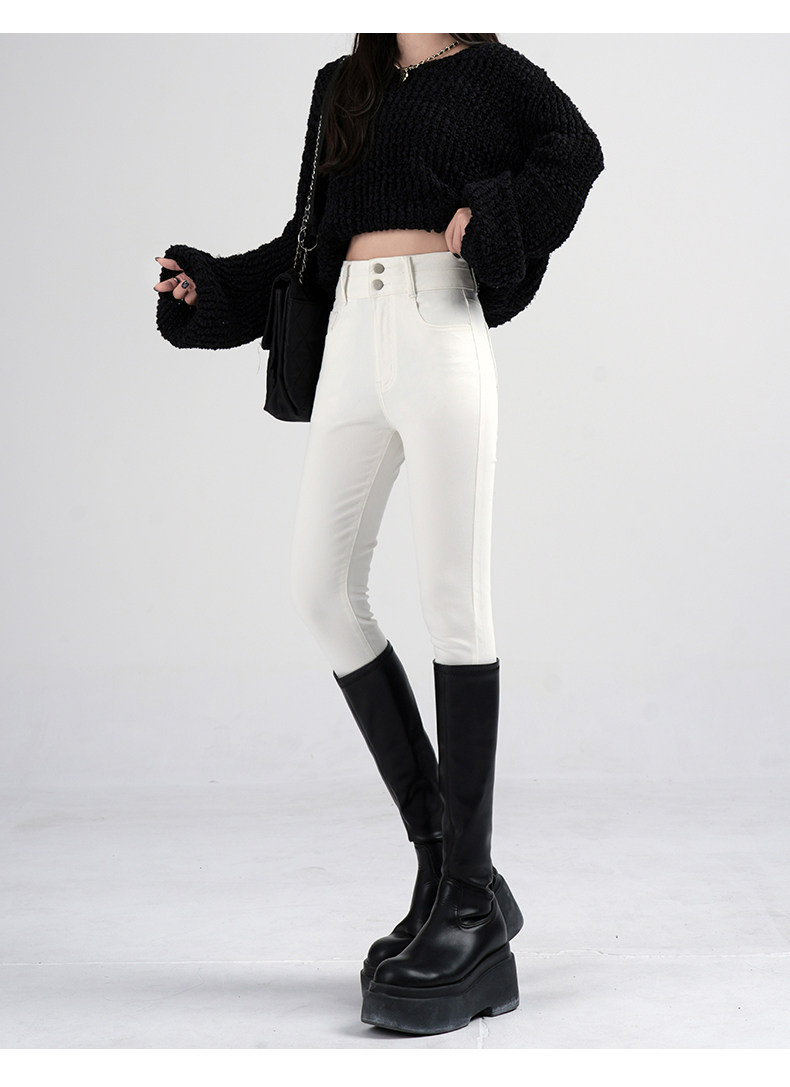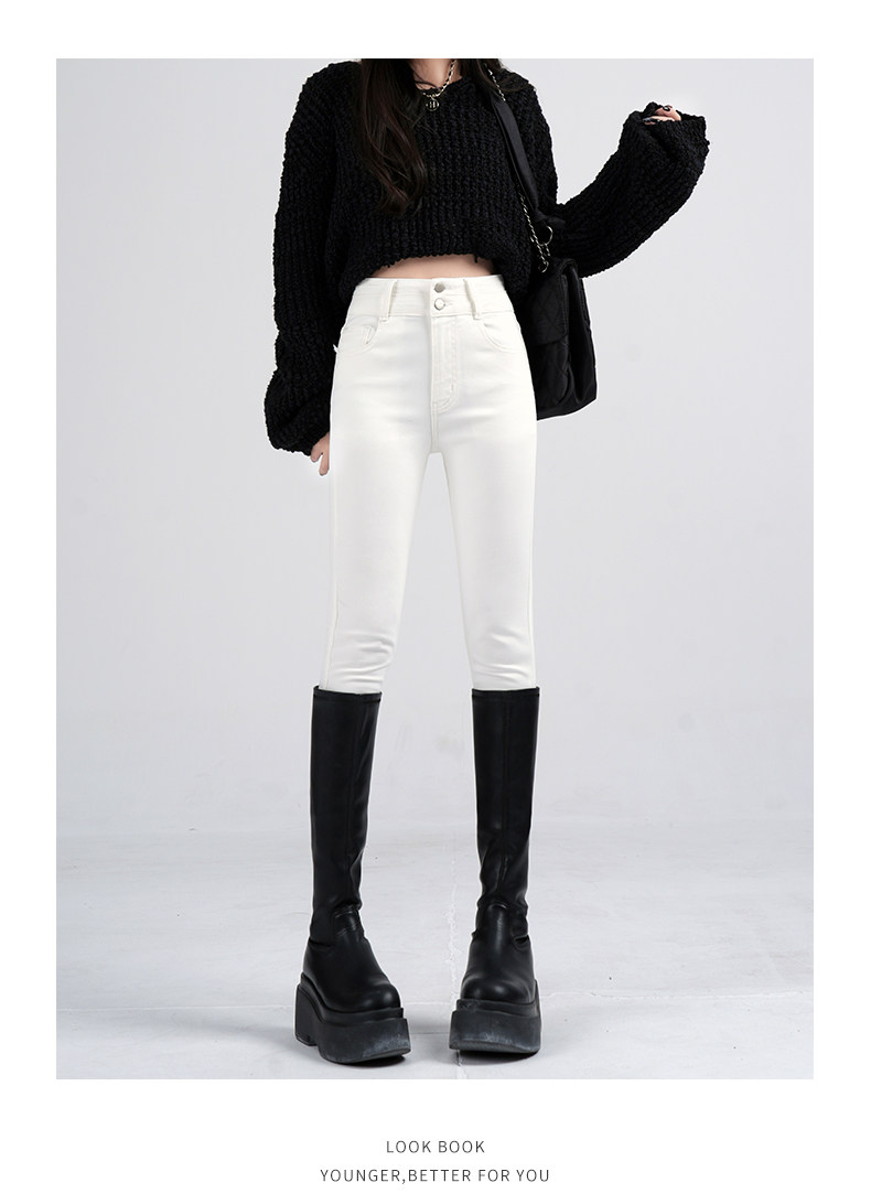 High-Waisted Women's Jeans 2026 Spring New Slim-Fit Smoky Gray Skinny Pencil Pants with Fleece Lining