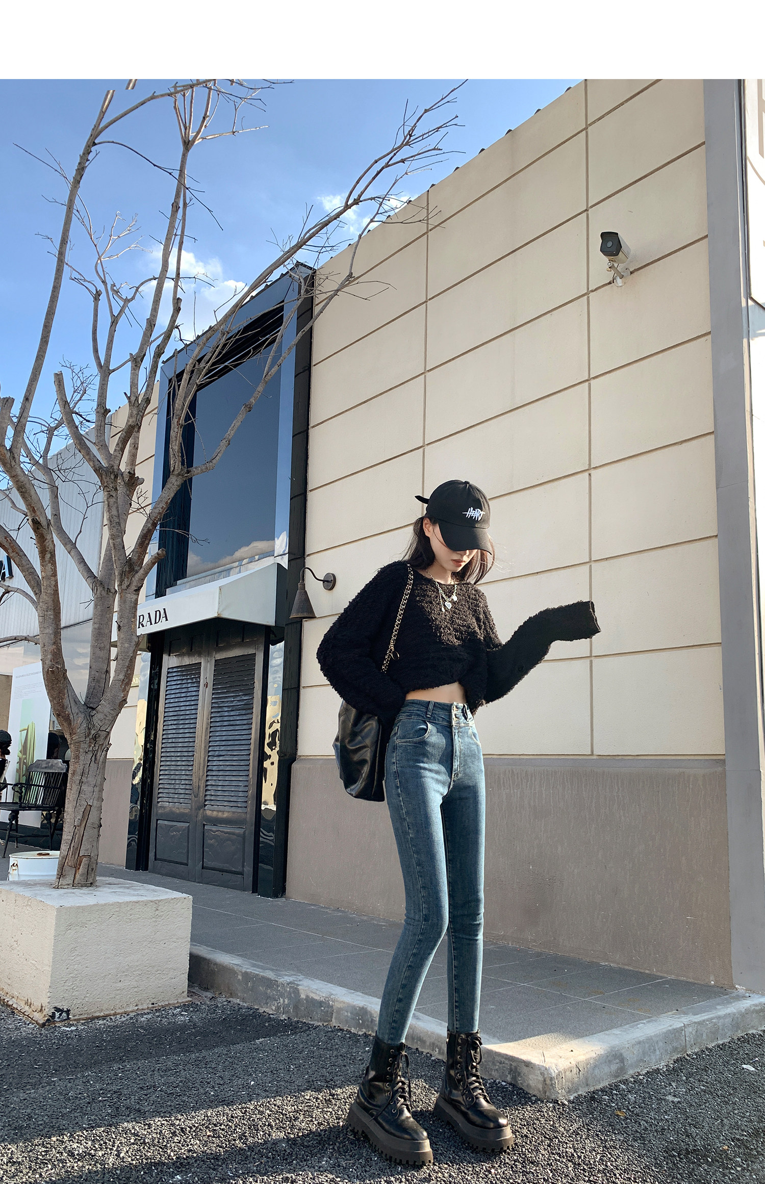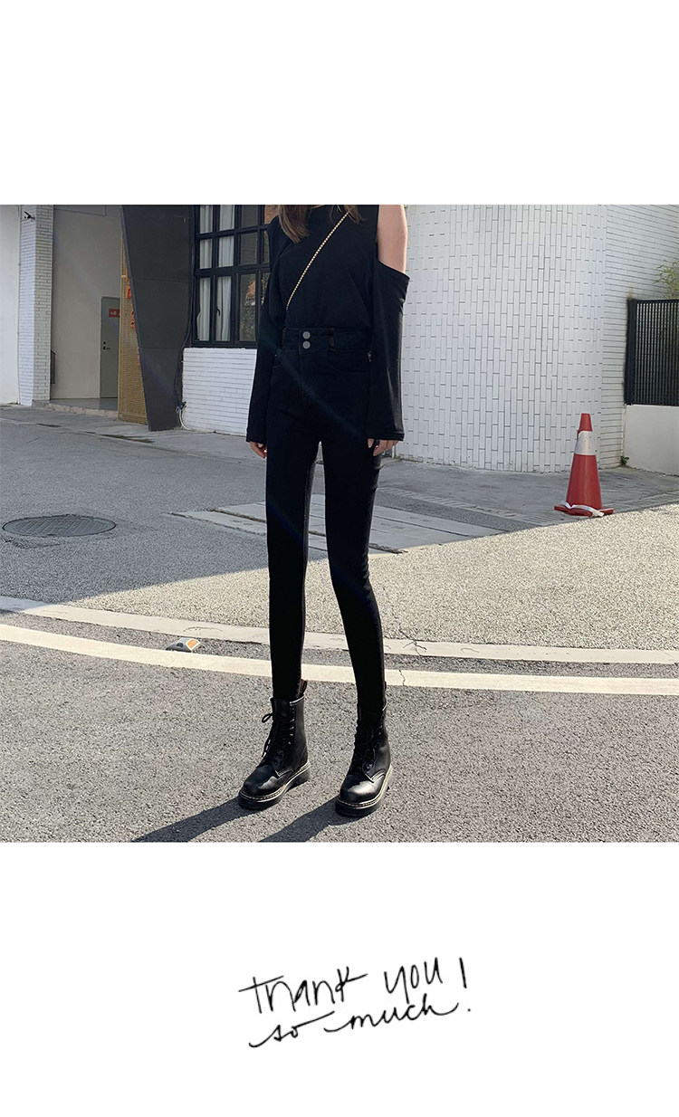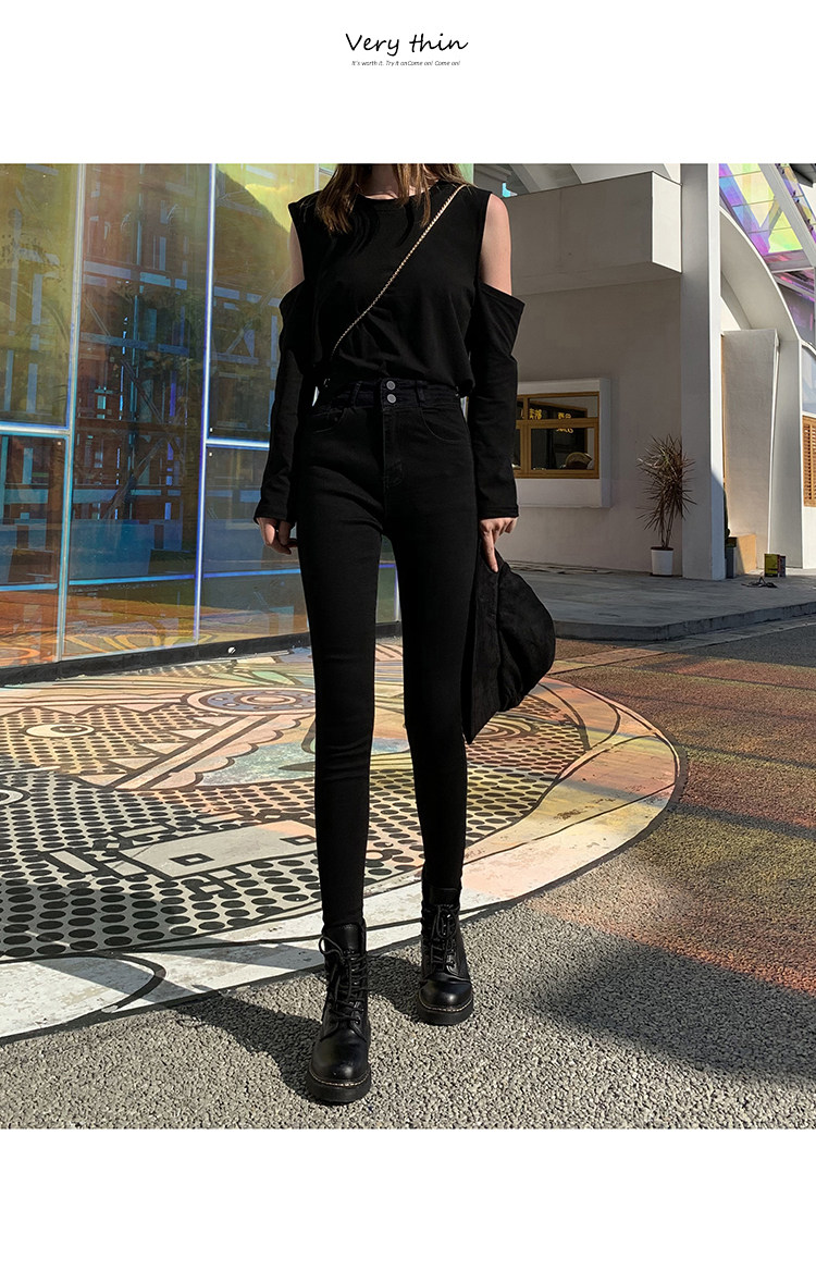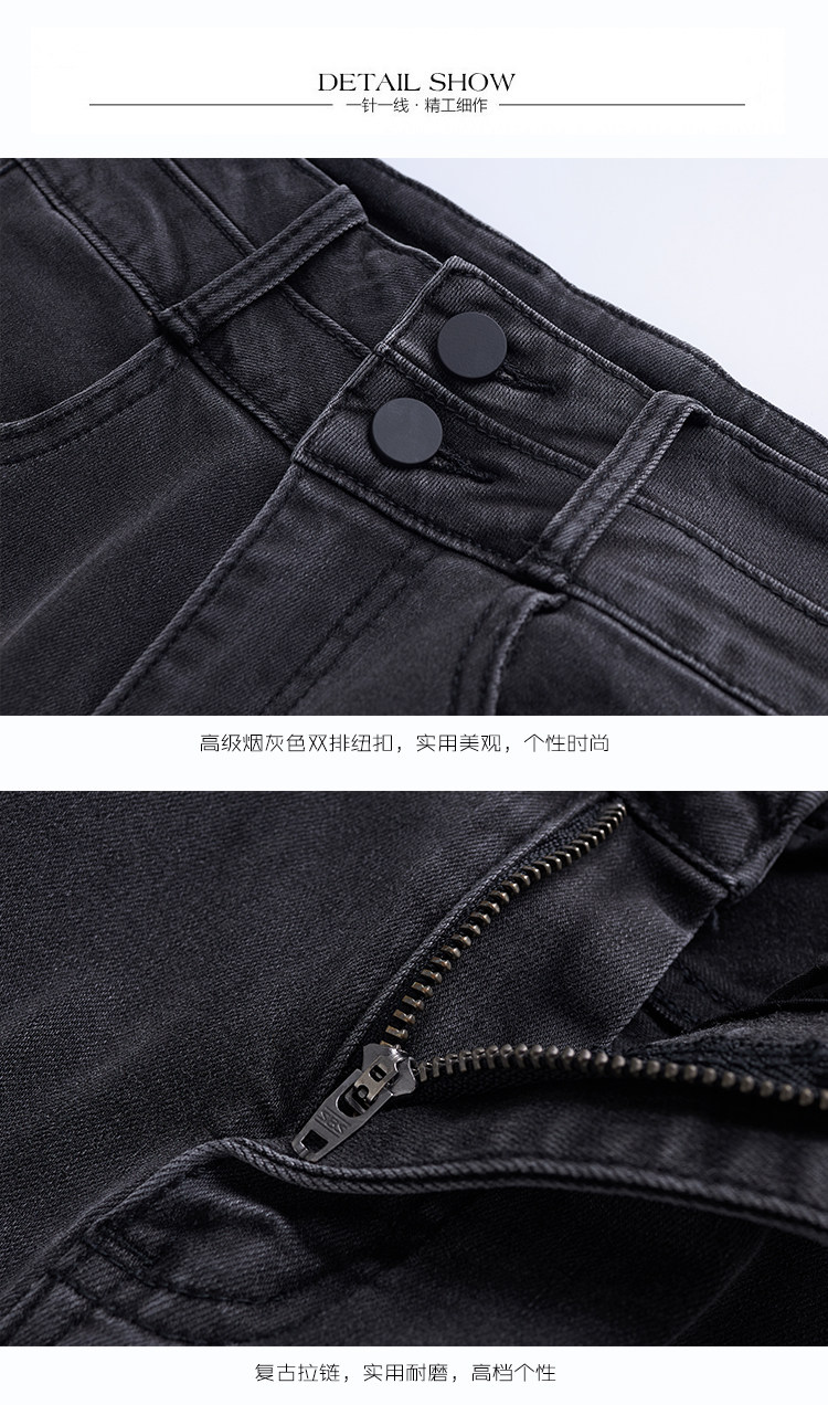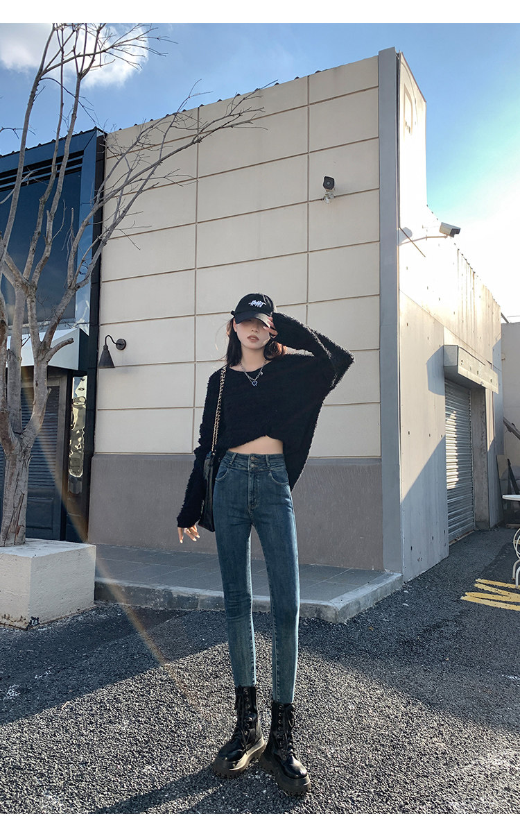 High-Waisted Women's Jeans 2026 Spring New Slim-Fit Smoky Gray Skinny Pencil Pants with Fleece Lining