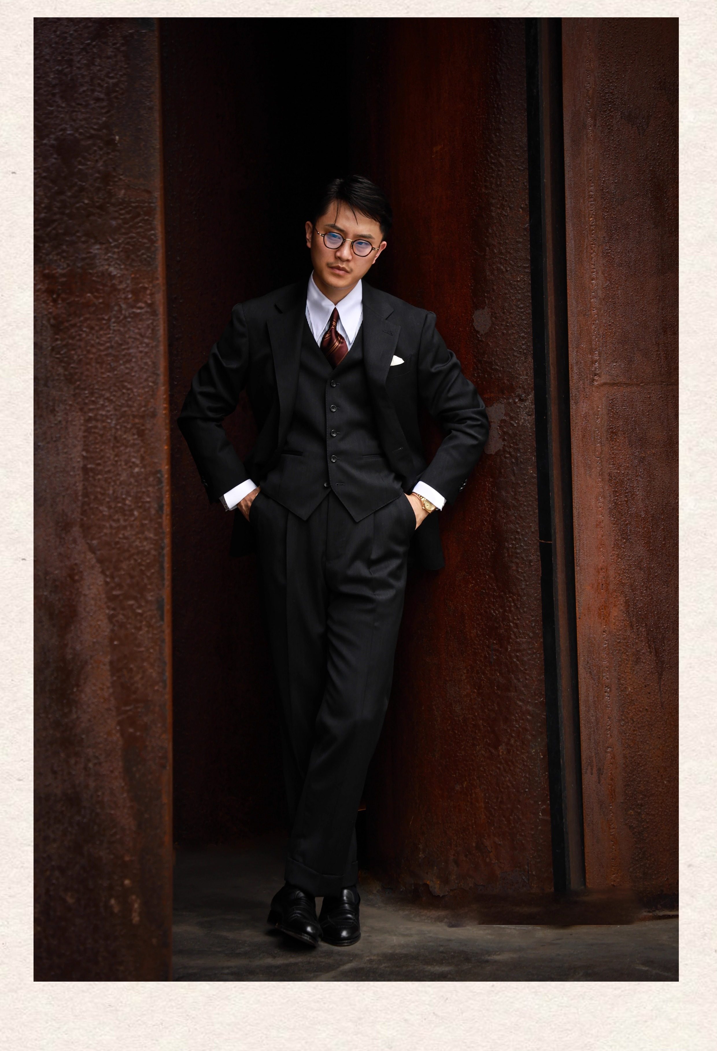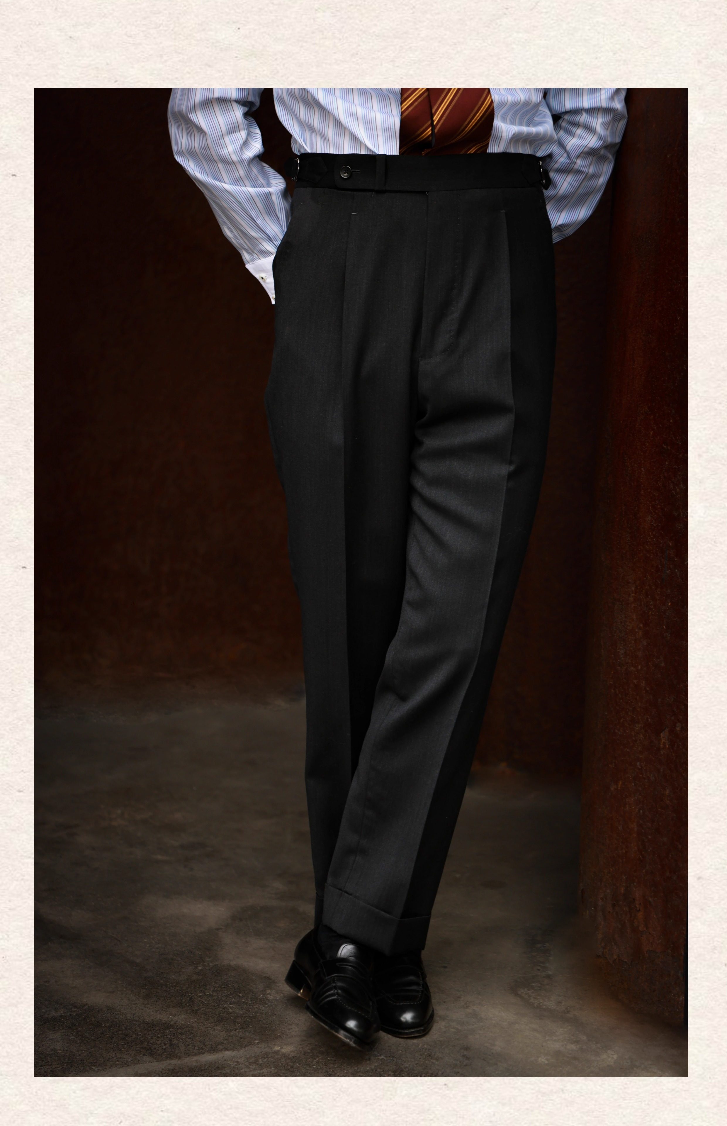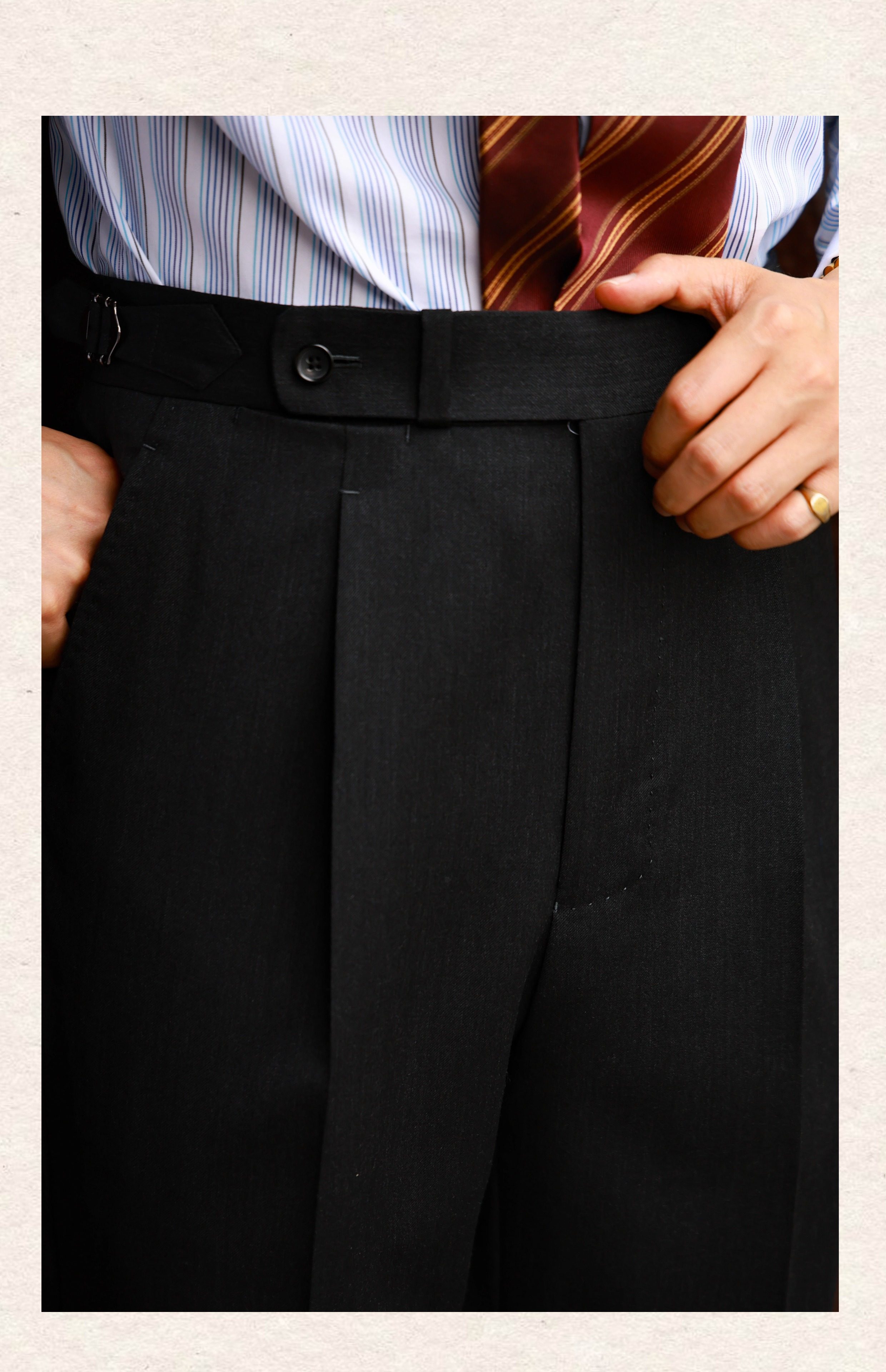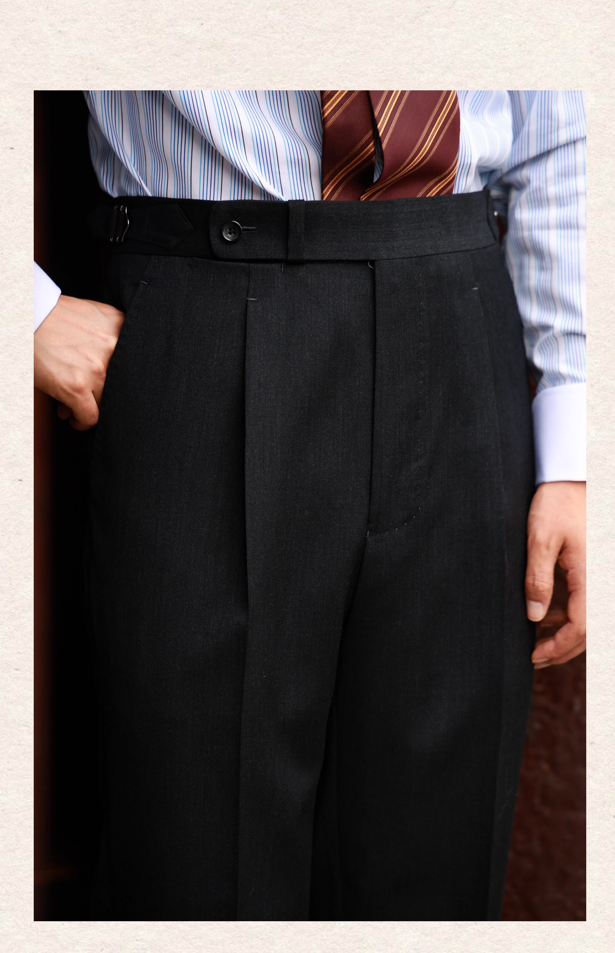 Ugentle Men's Clothing High-End Craftsmanship'Wilderness Gray' Italian Retro High-Waisted Paris Button Wool Trousers