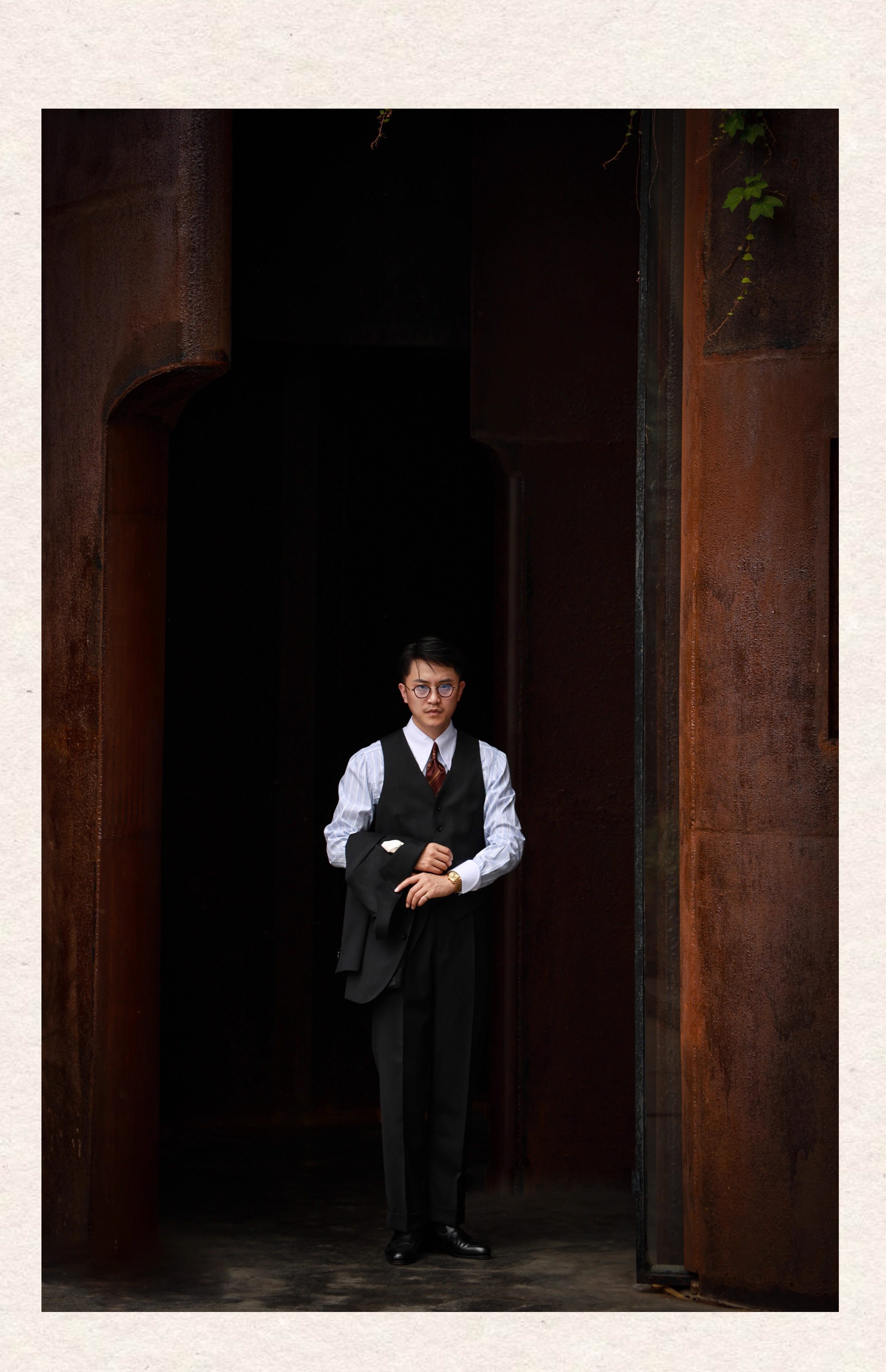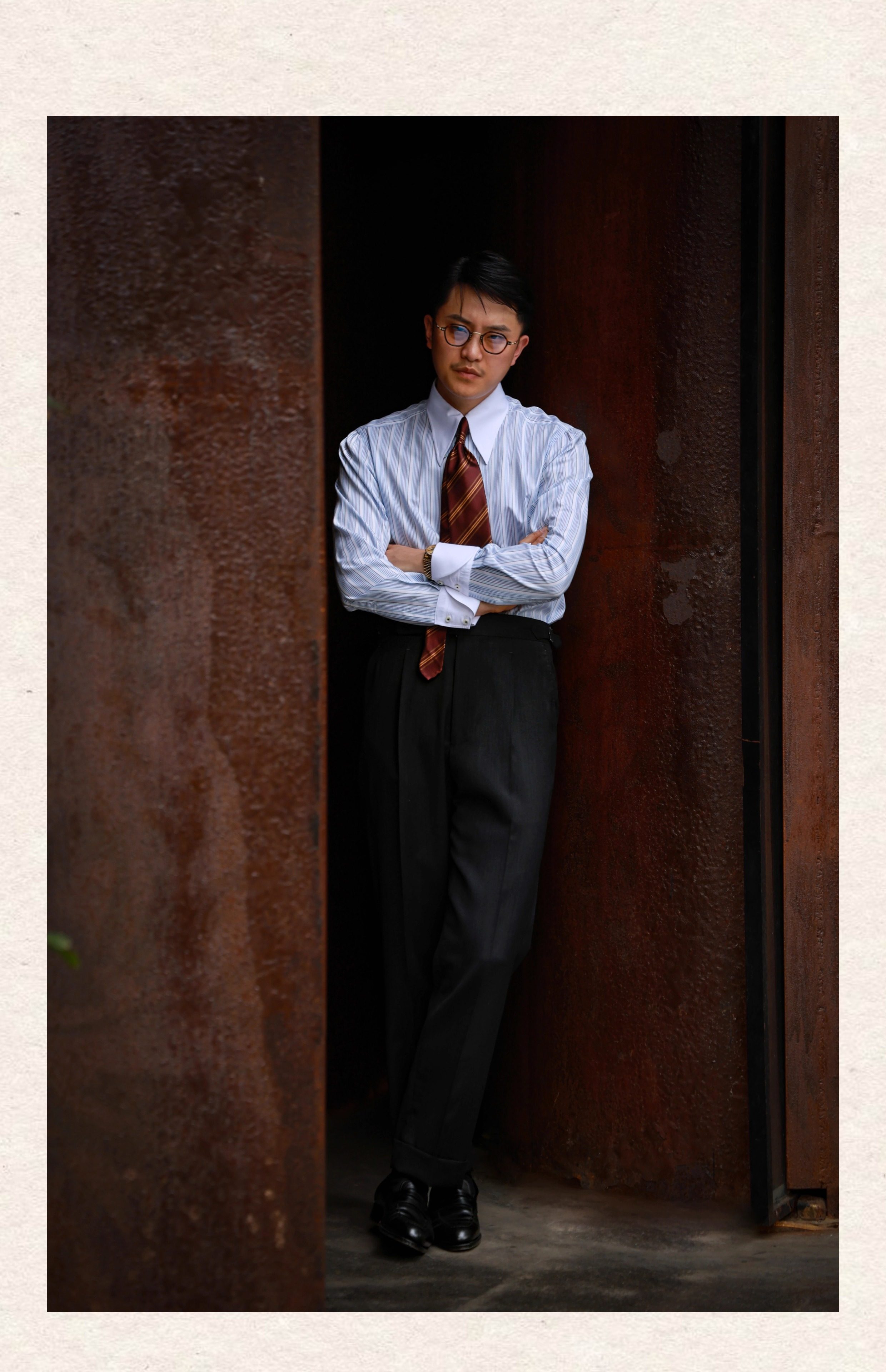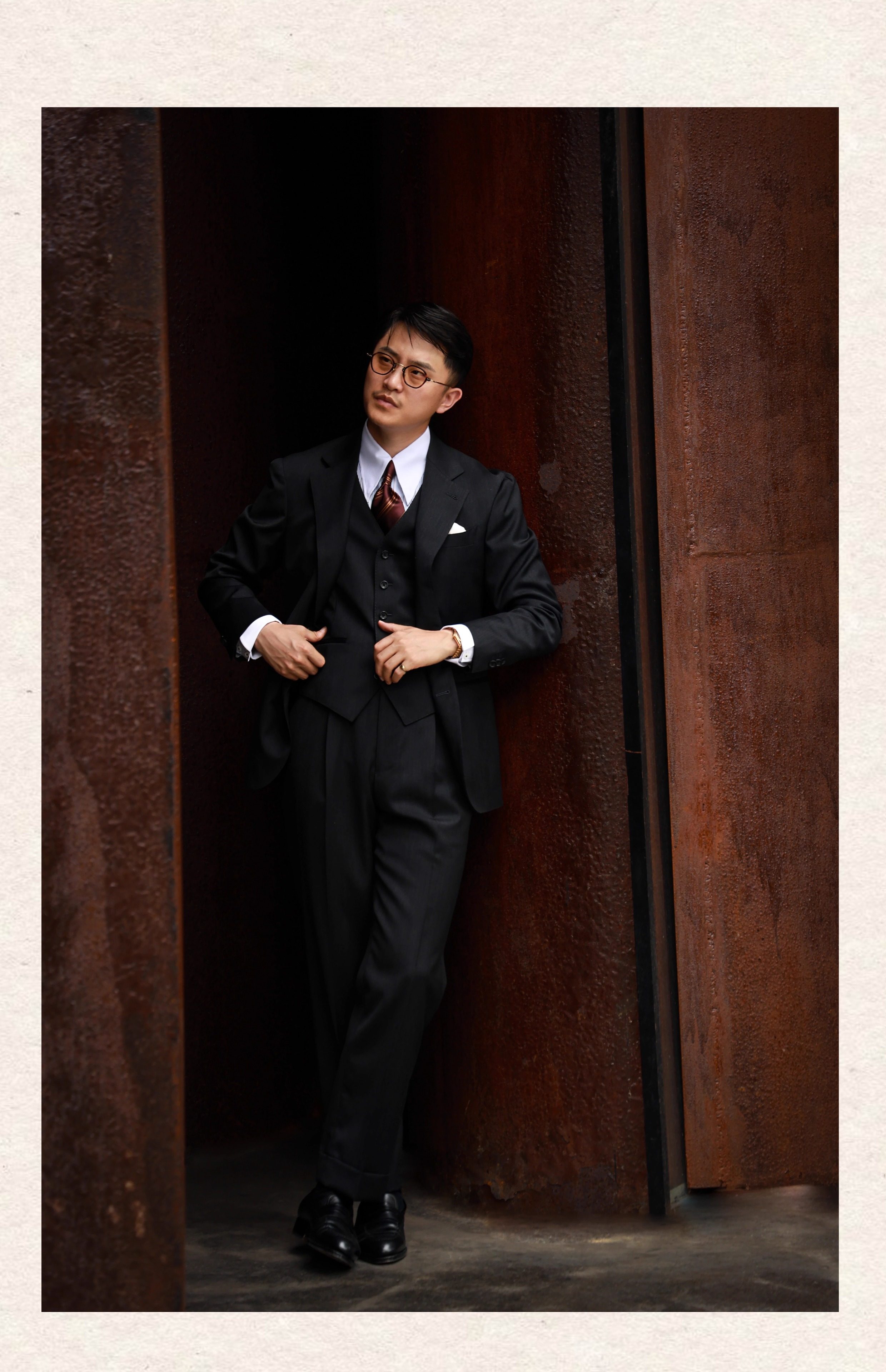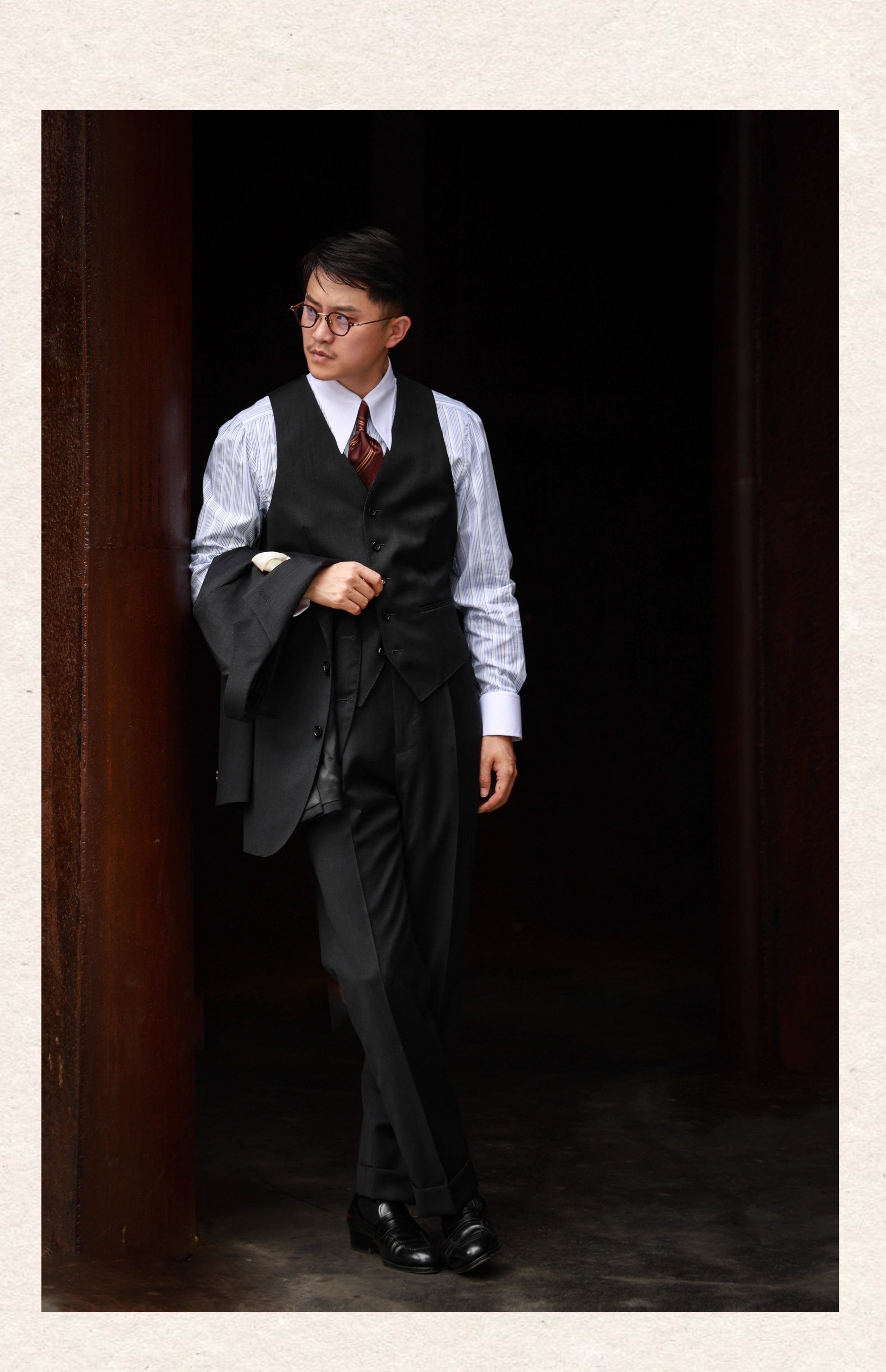 Ugentle Men's Clothing High-End Craftsmanship'Wilderness Gray' Italian Retro High-Waisted Paris Button Wool Trousers