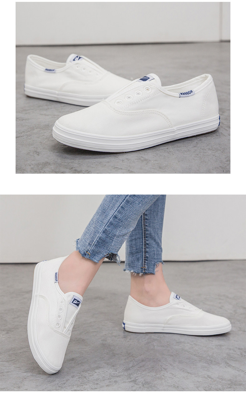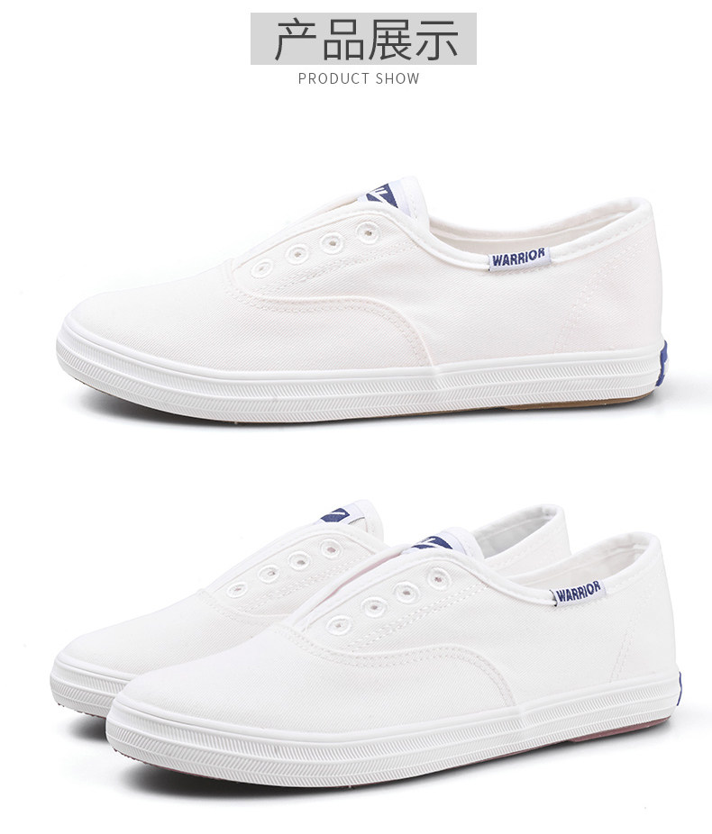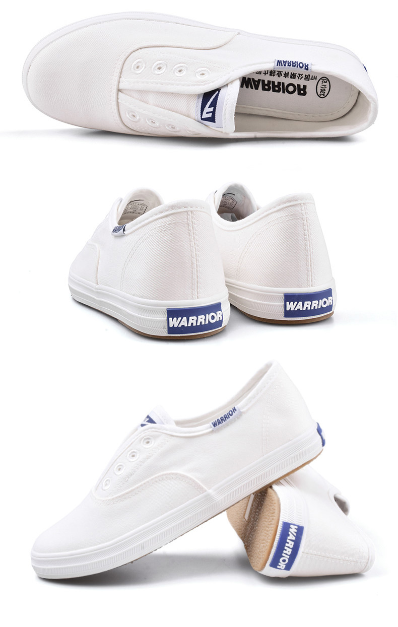 Authentic Warrior Brand White Sneakers for Women, 2025 Spring/Summer New Canvas Shoes, Versatile Slip-On Flat White Sneakers