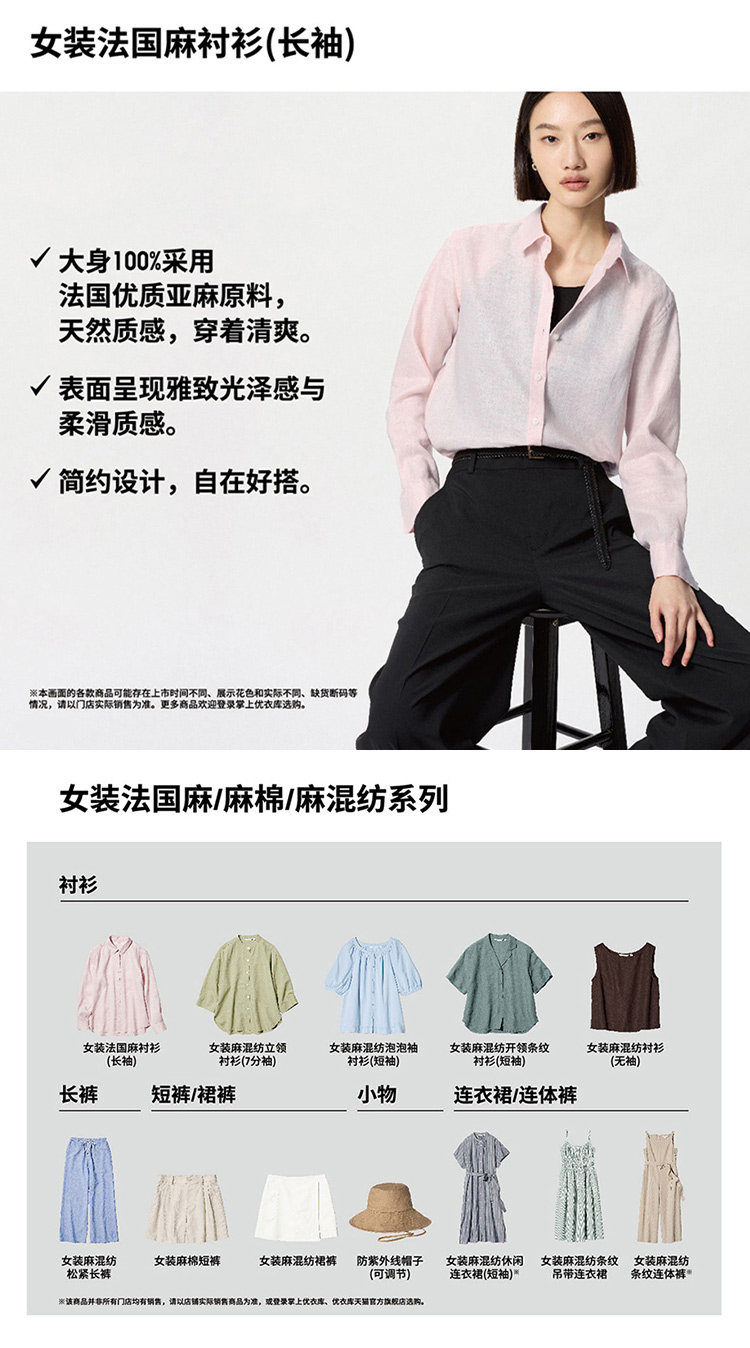 Uniqlo Women's French Linen Striped Shirt Long-Sleeve Blouse Air Conditioning Shirt Thin Jacket 475648