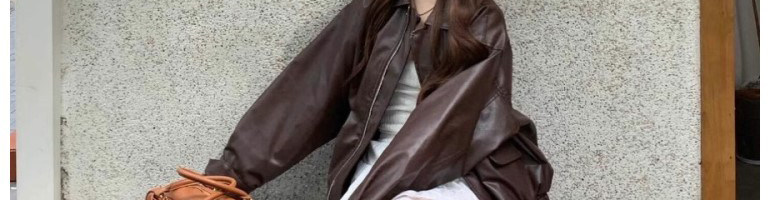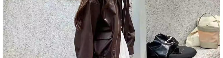 Brown Cool and Stylish Leather Jacket for Women, High-End Feel, Petite Size, 2026 Spring and Autumn New Style, Loose and Thickened Jacket Top