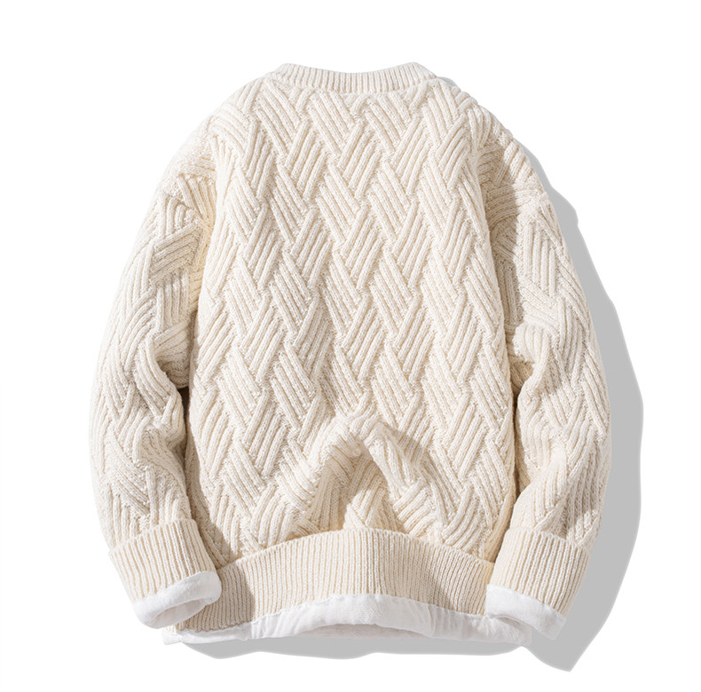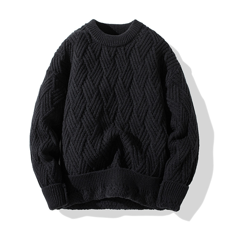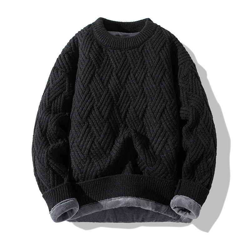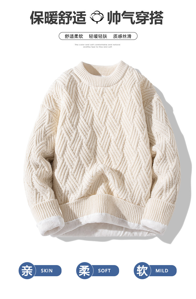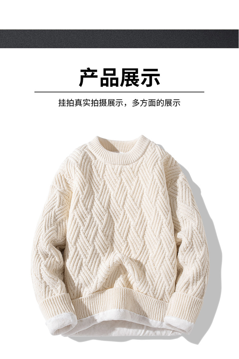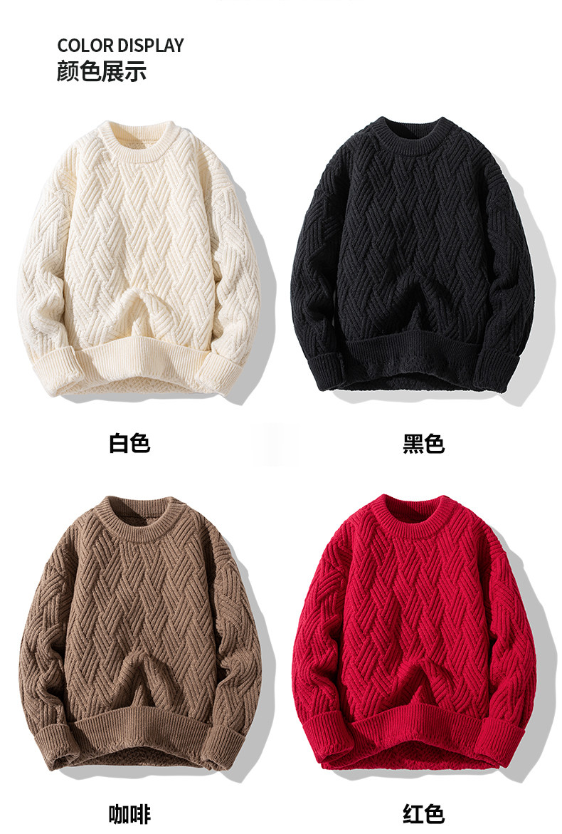 Wassup Shark Thick Cable Knit Sweater for Men, Autumn and Winter, Fleece-Lined, Thick Pullover, Long-Sleeve Knit Base Shirt for Men