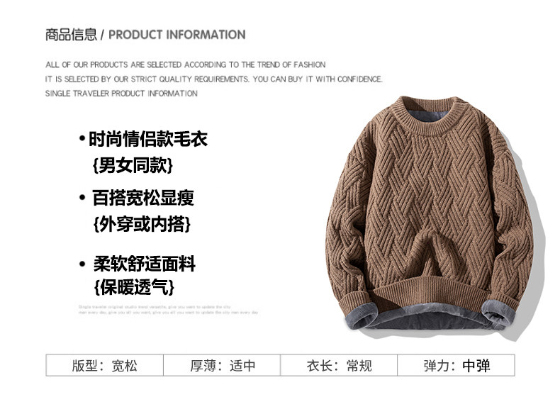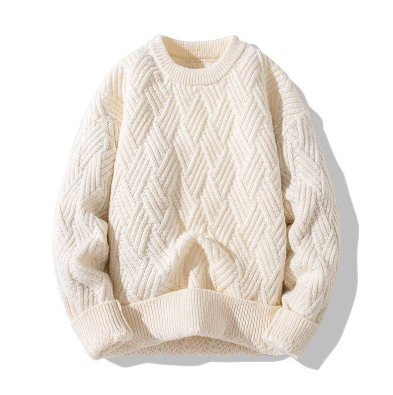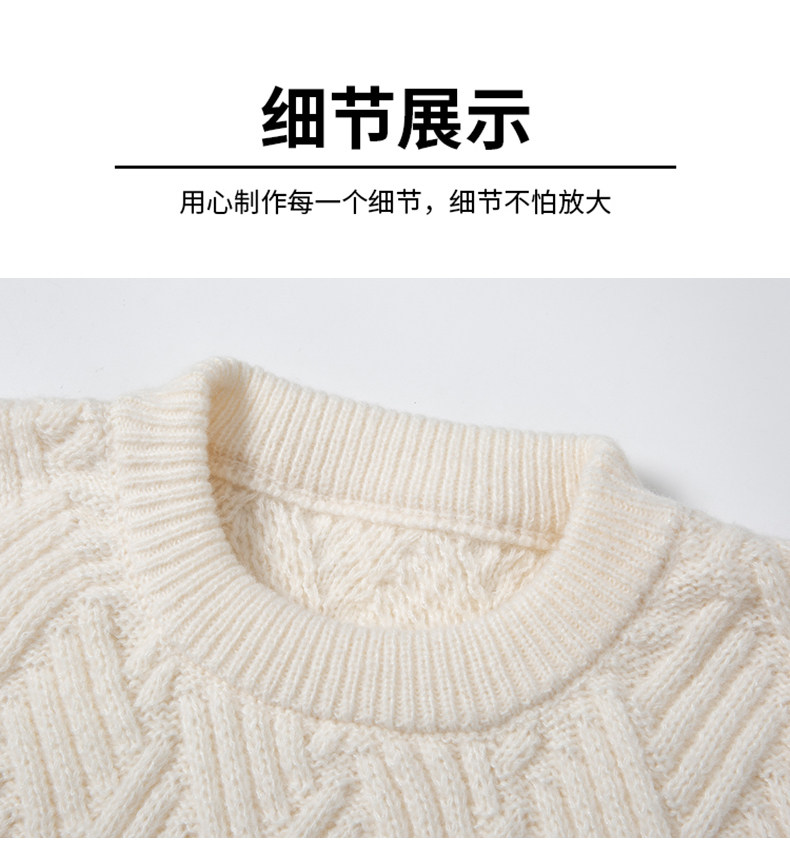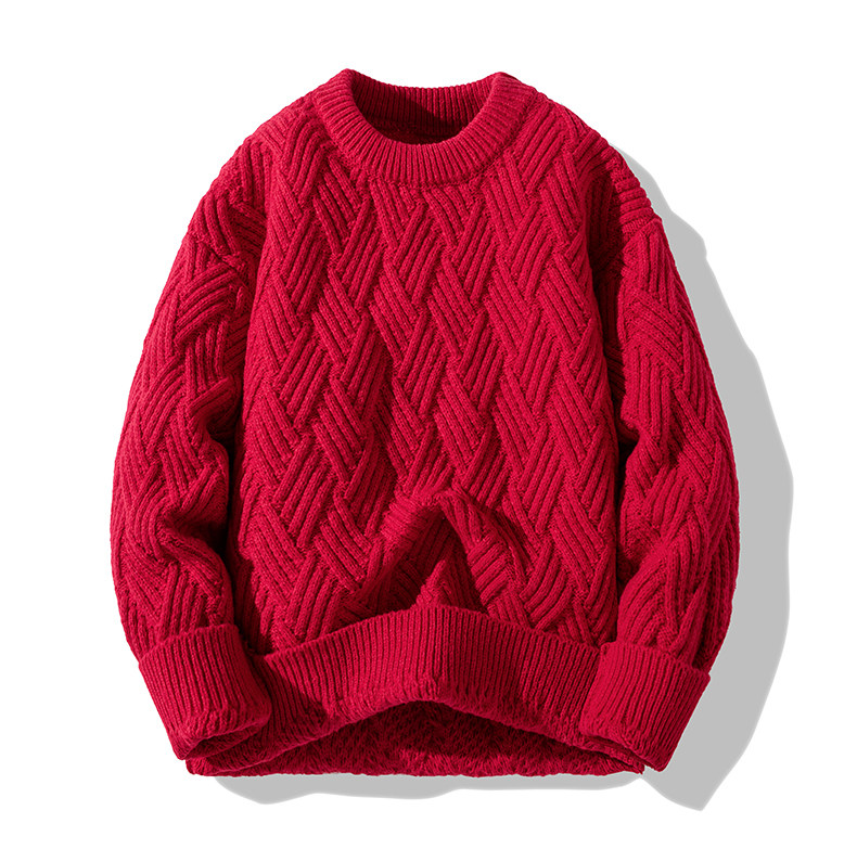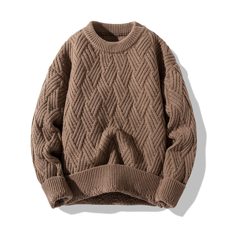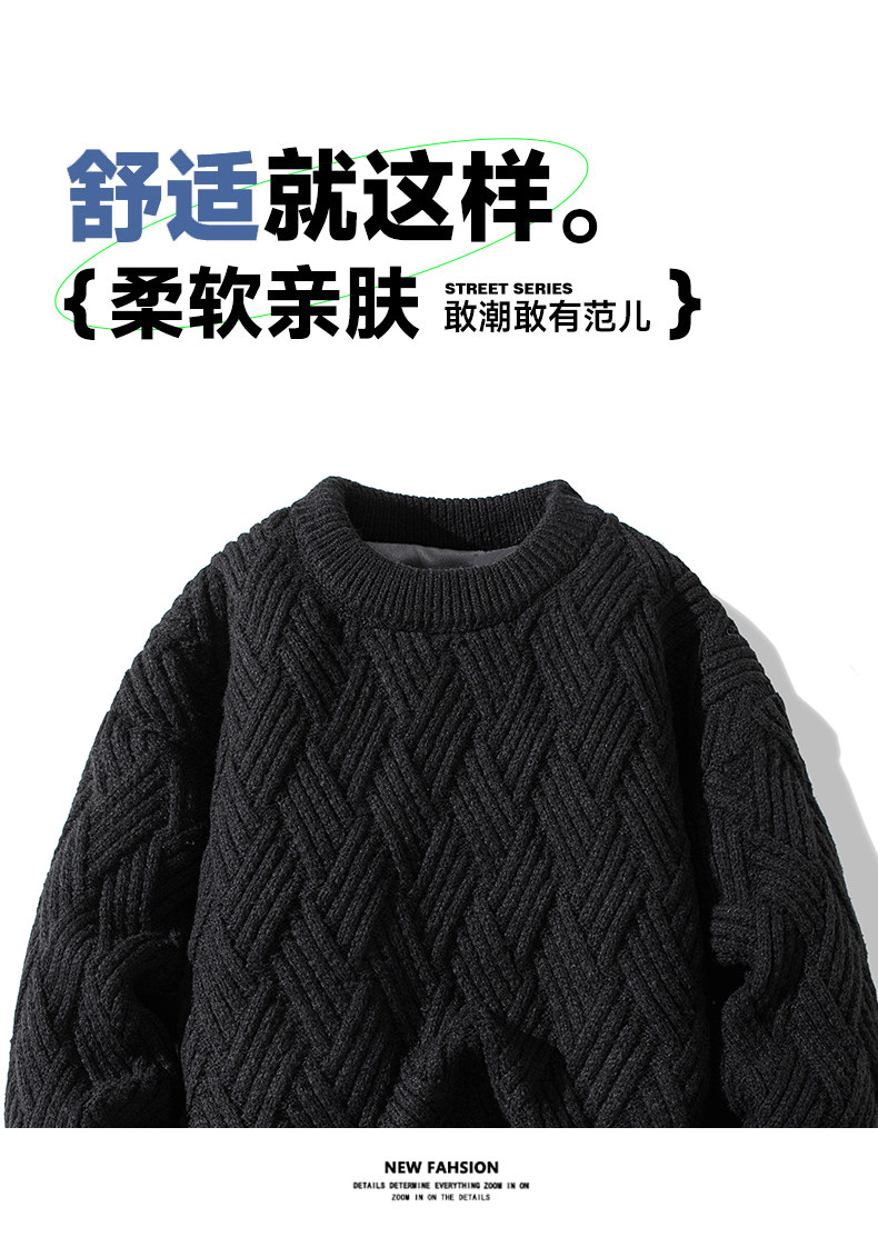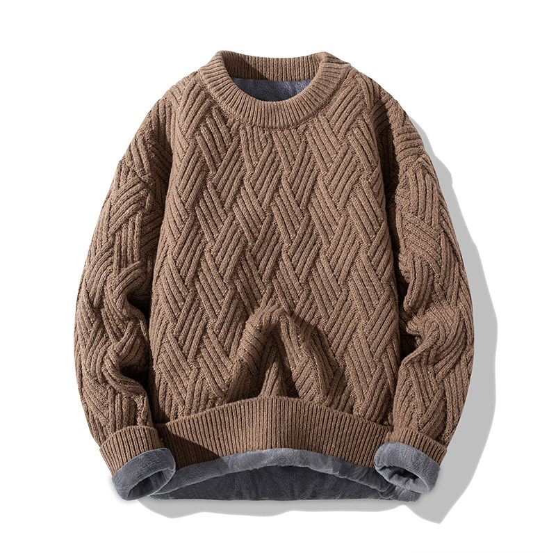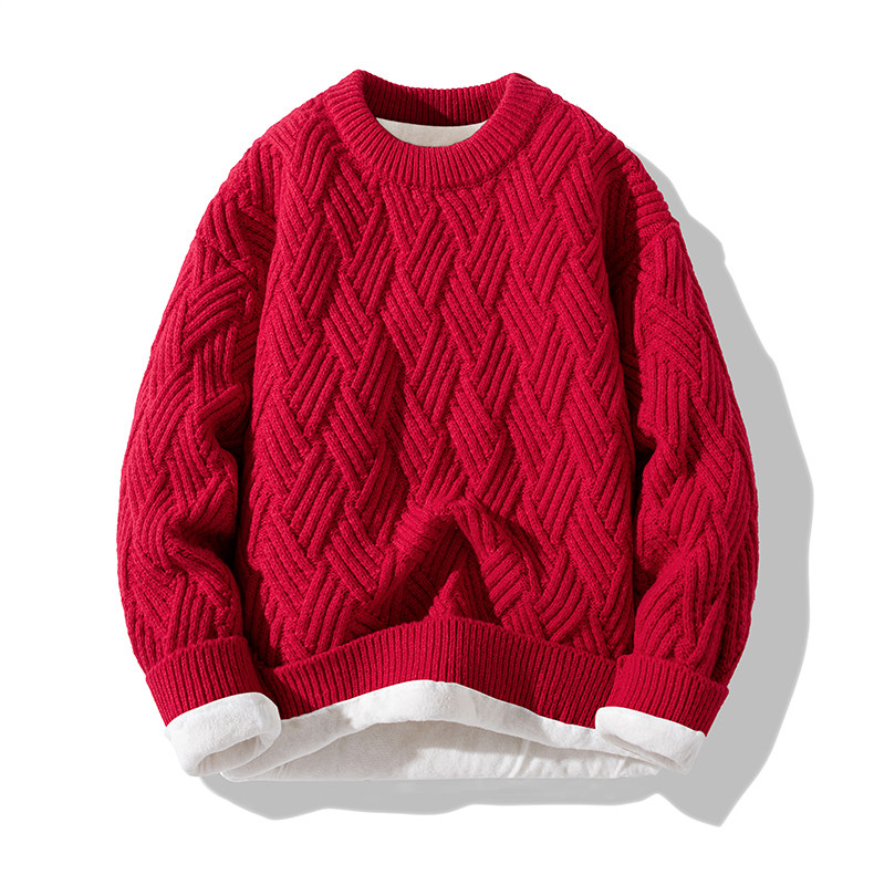 Wassup Shark Thick Cable Knit Sweater for Men, Autumn and Winter, Fleece-Lined, Thick Pullover, Long-Sleeve Knit Base Shirt for Men