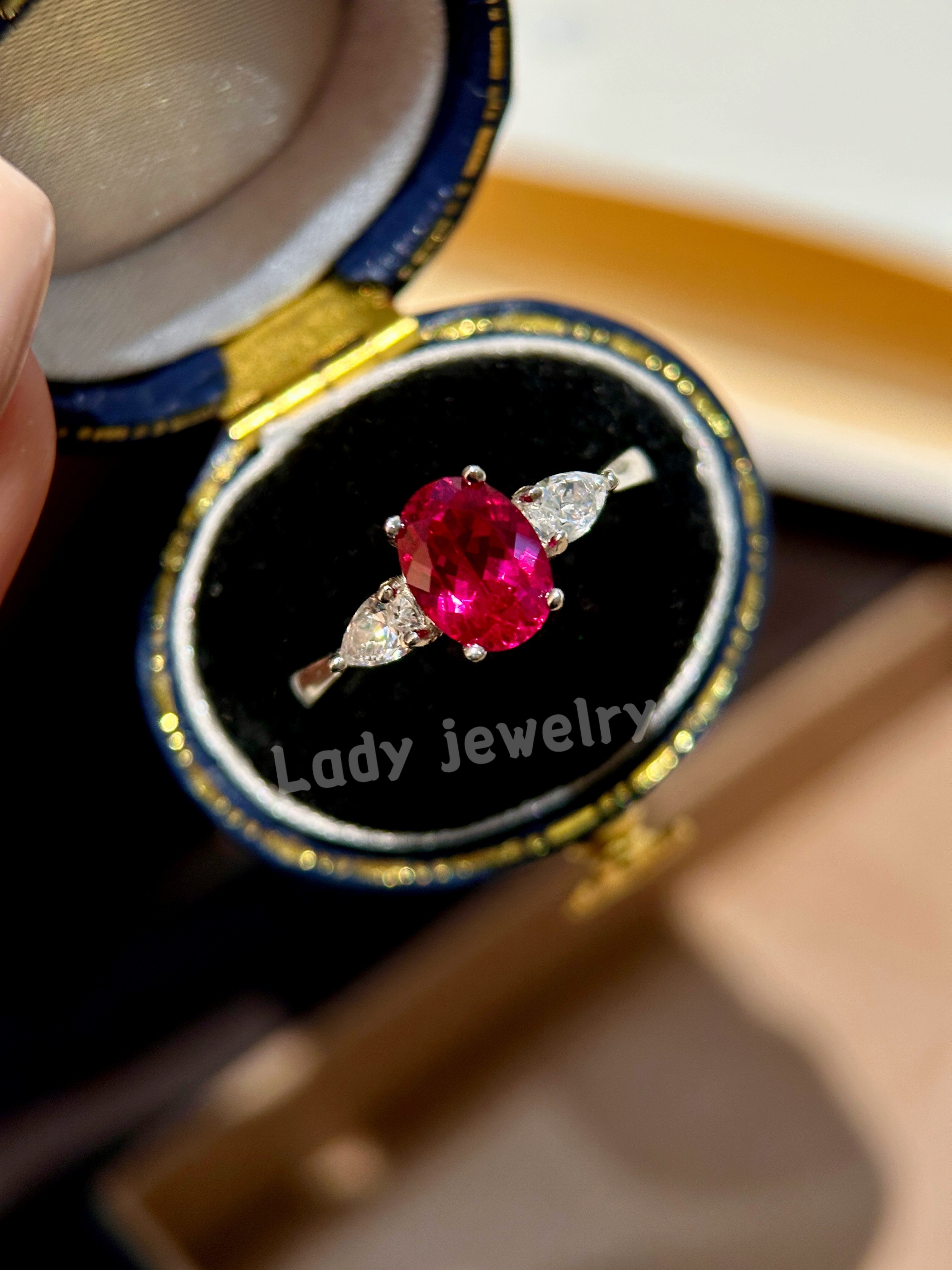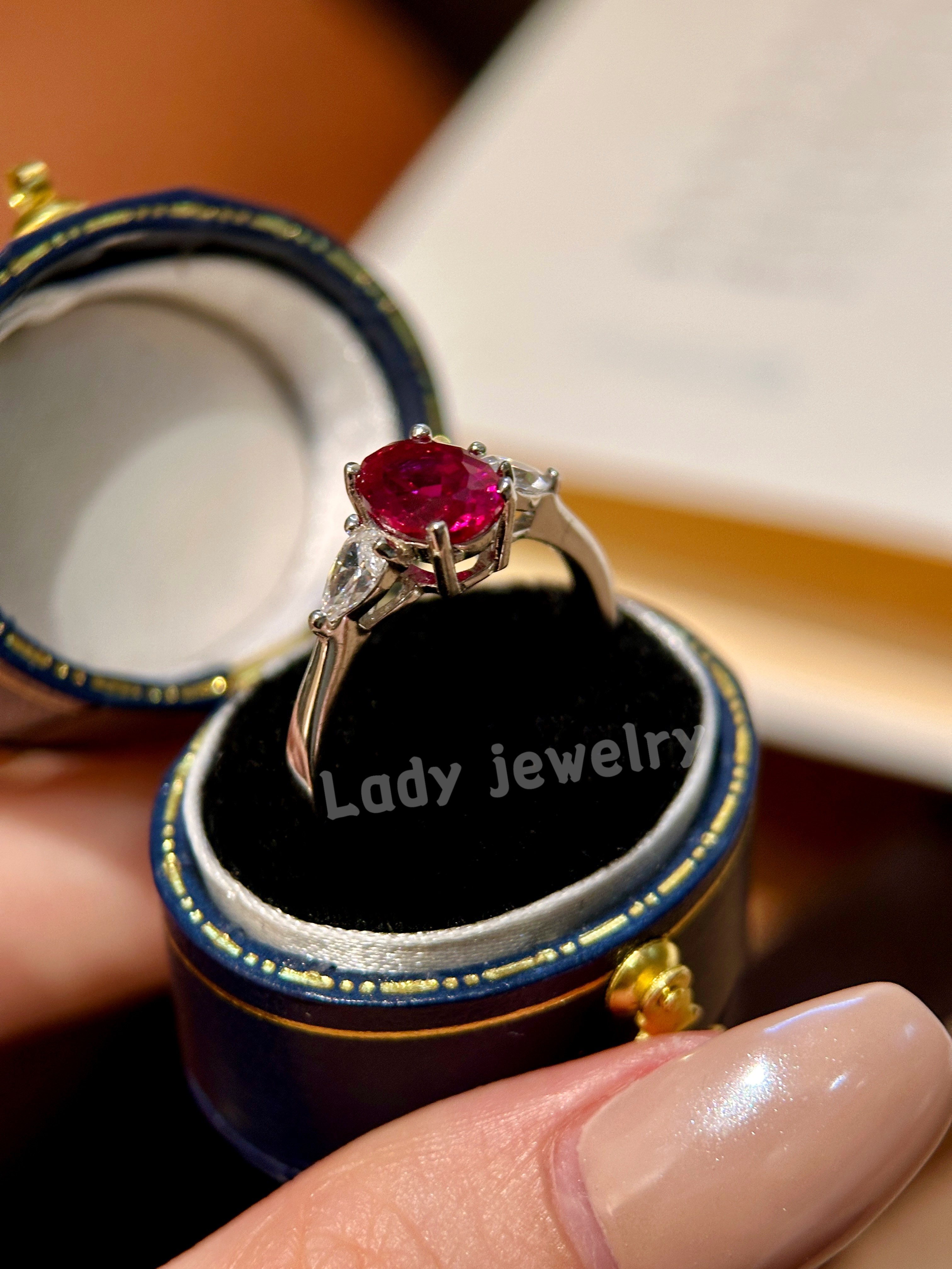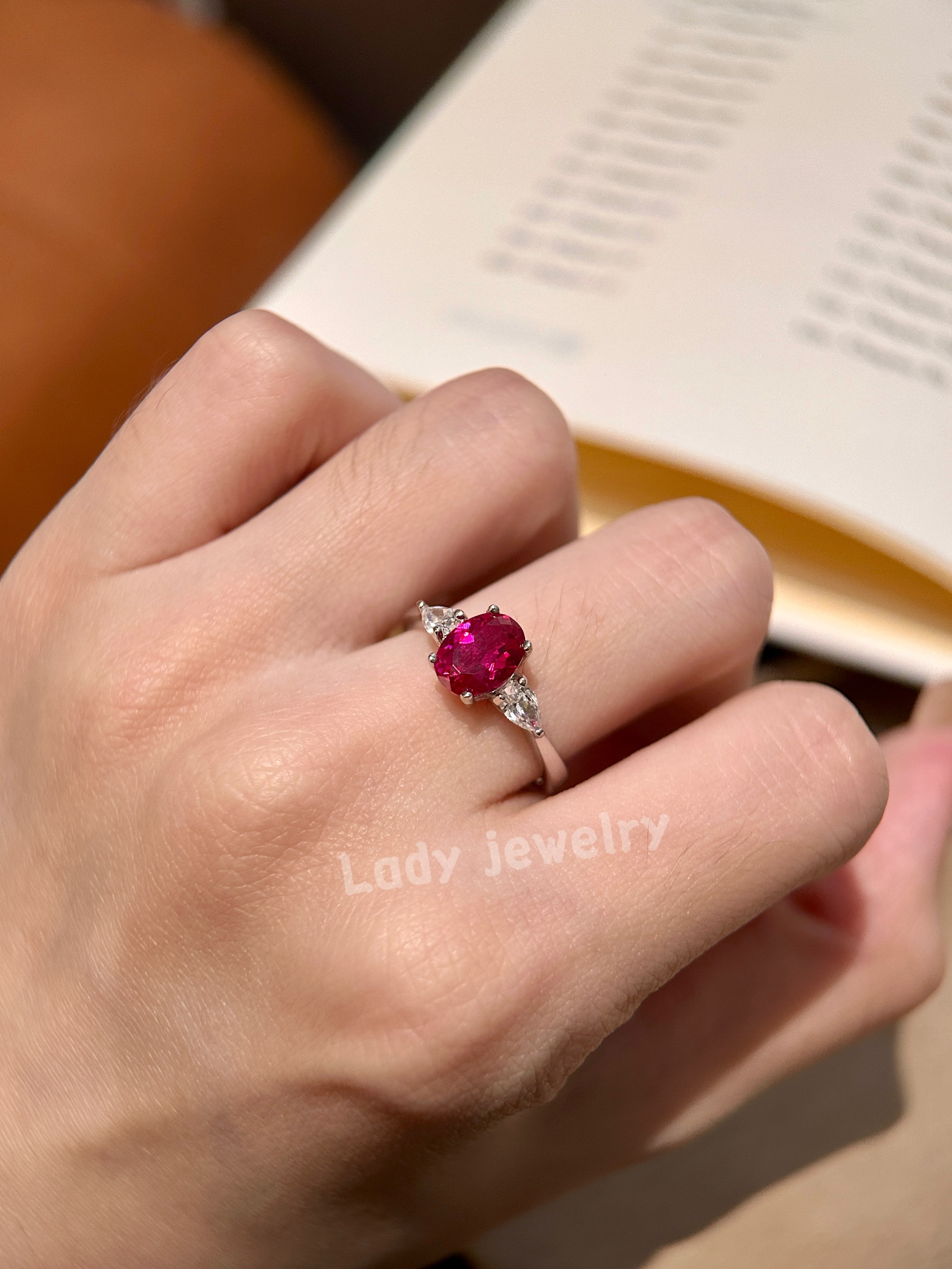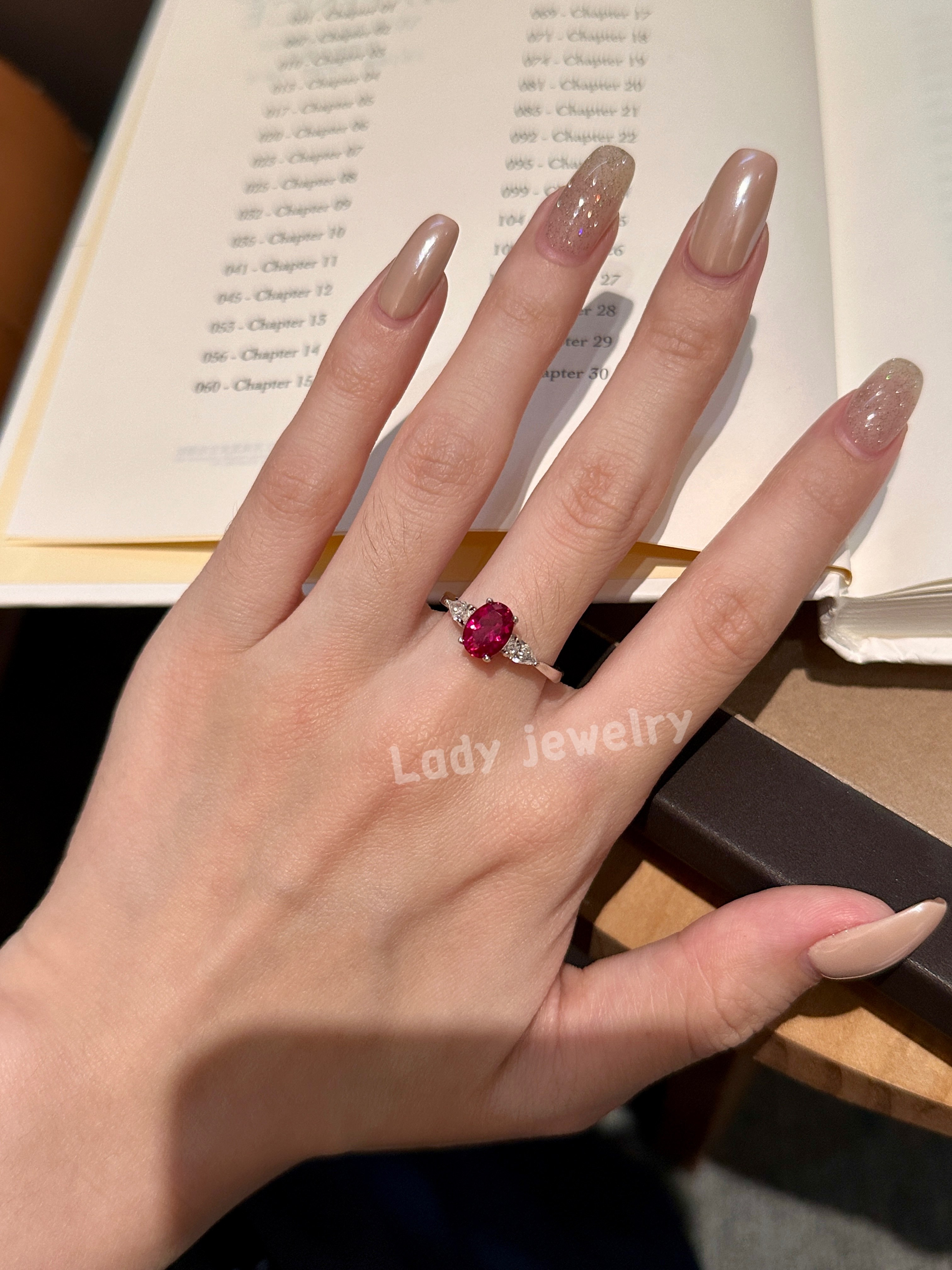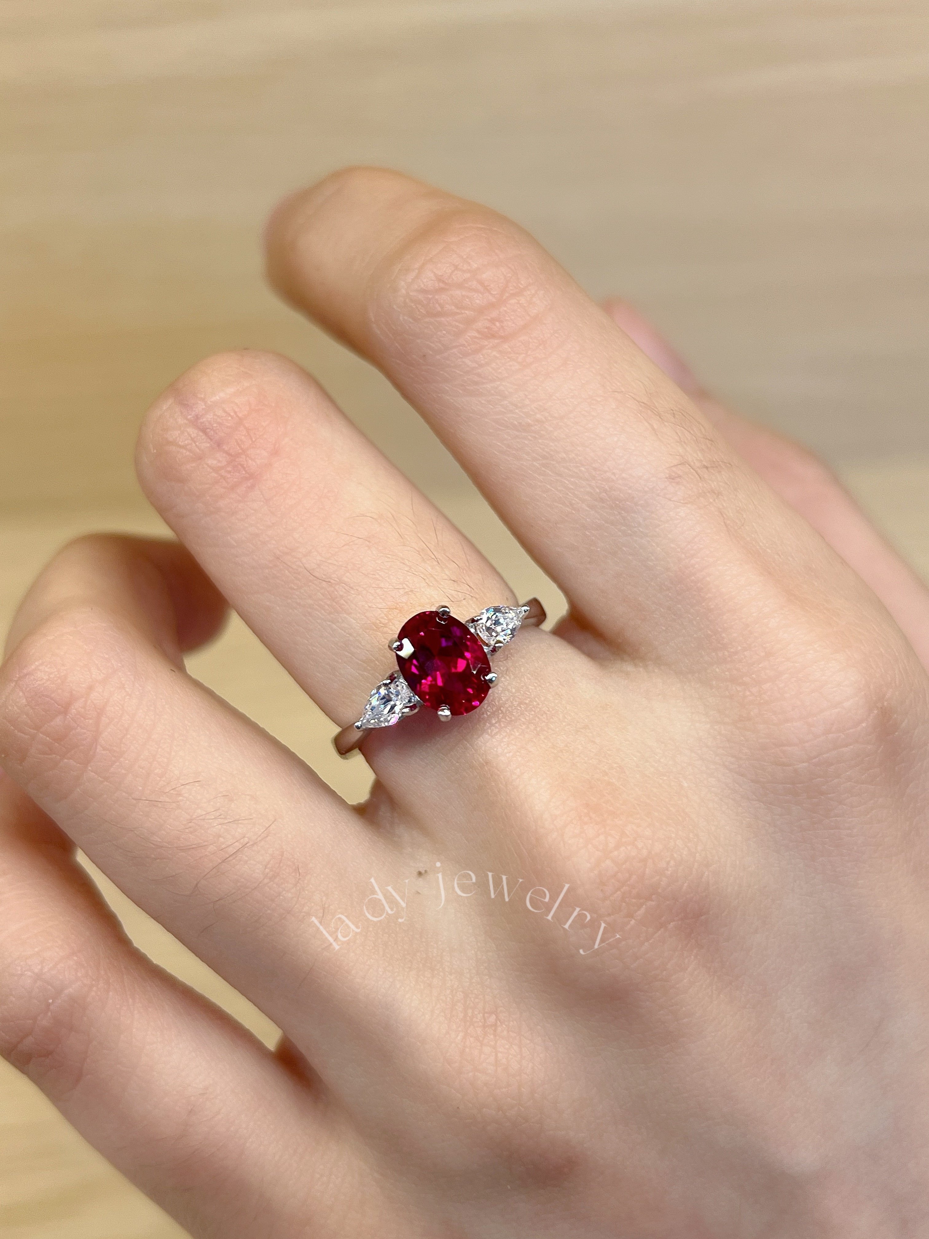 Lady's Classic Three-Stone 1.5 Carat Lab-Grown Ruby Pigeon Blood Red Niche Light Luxury Versatile Diamond Ring