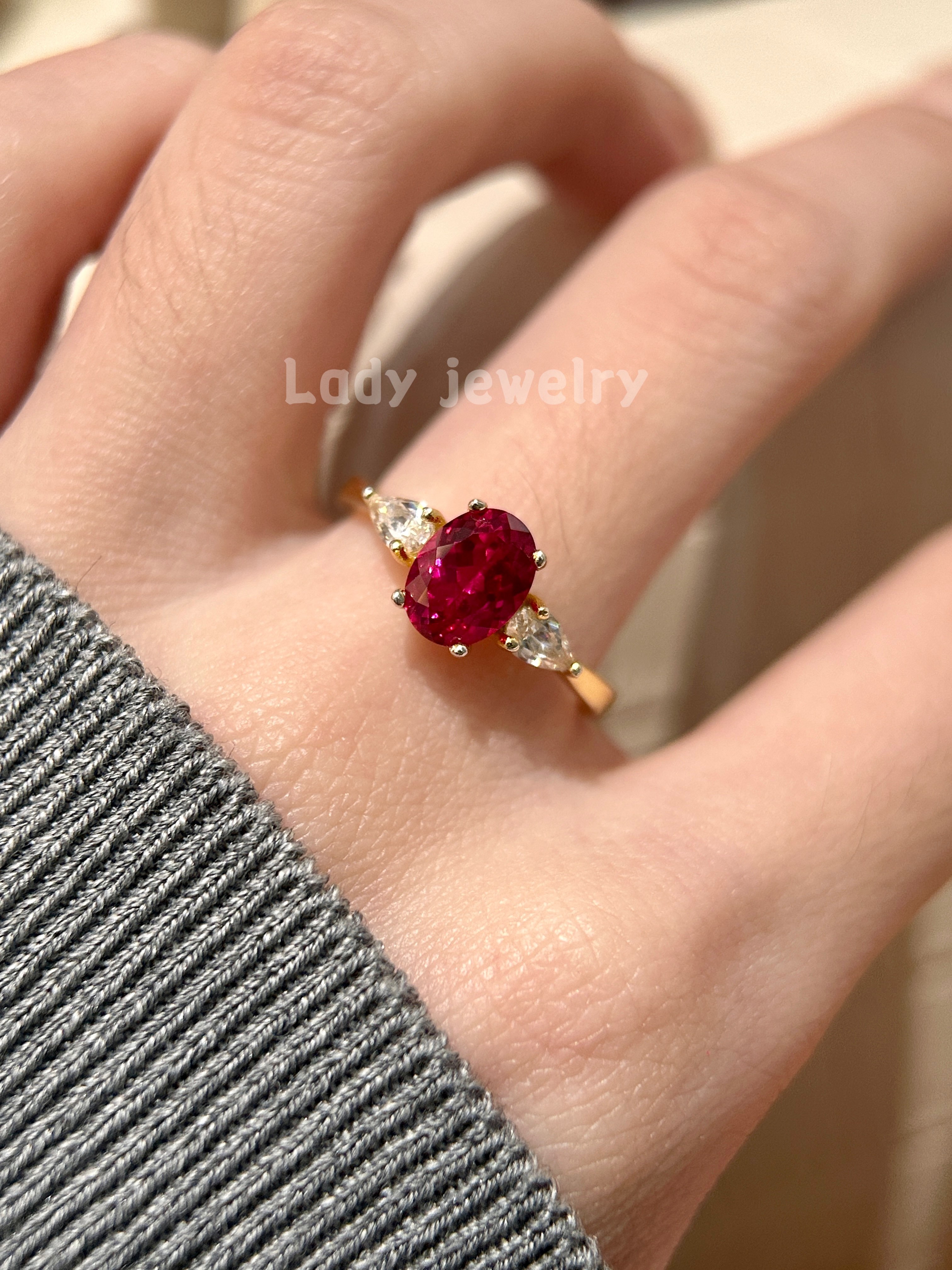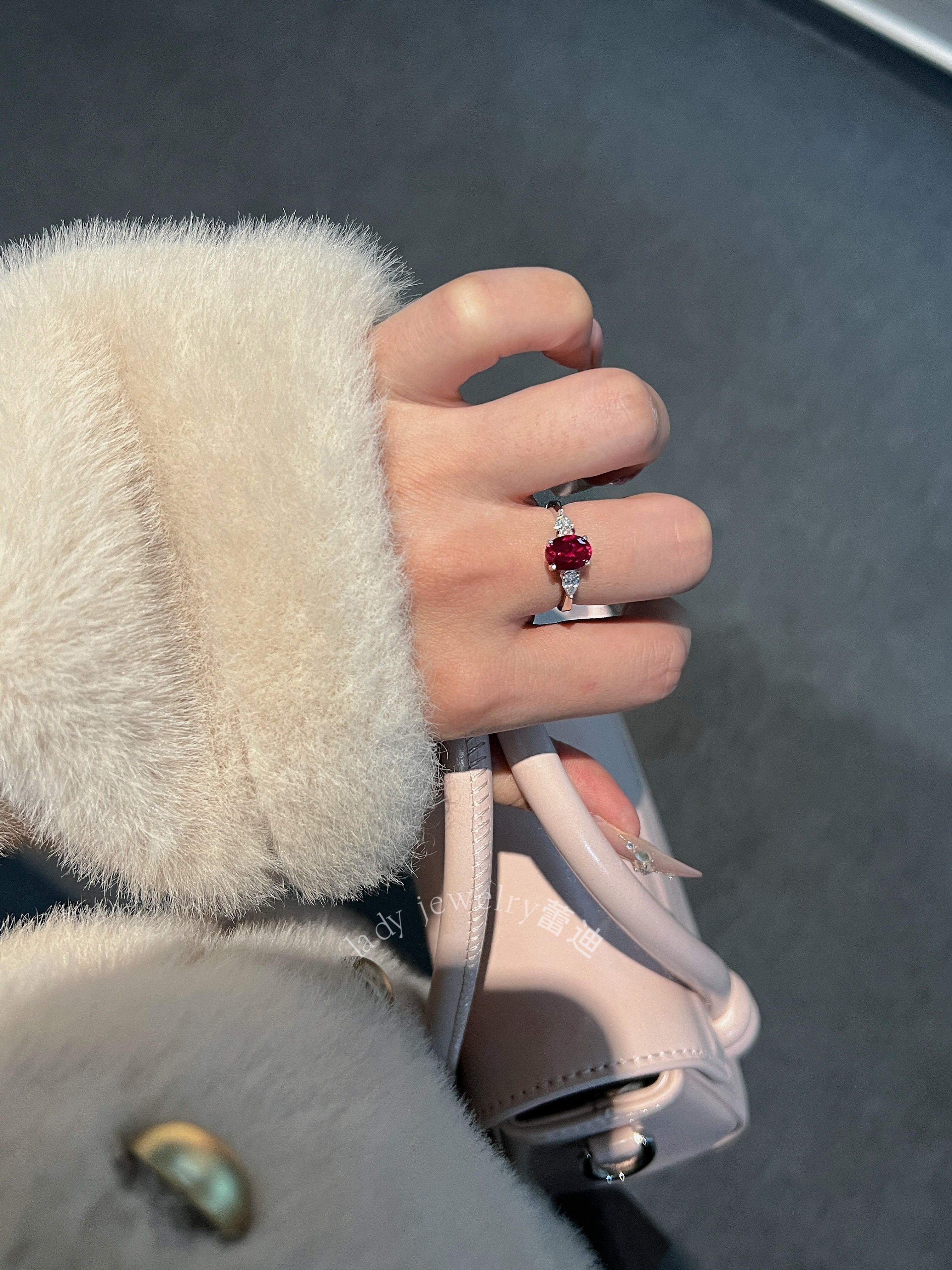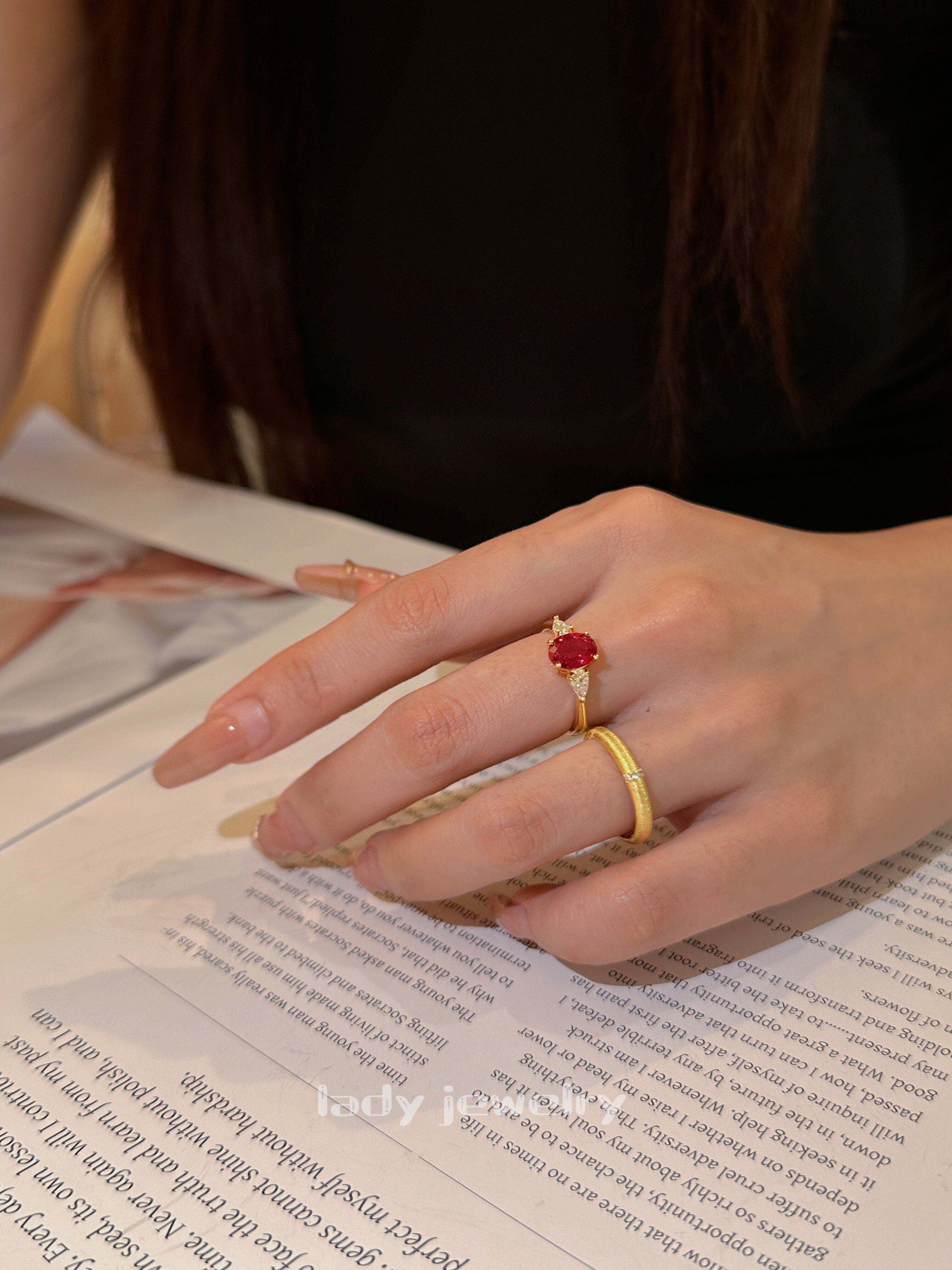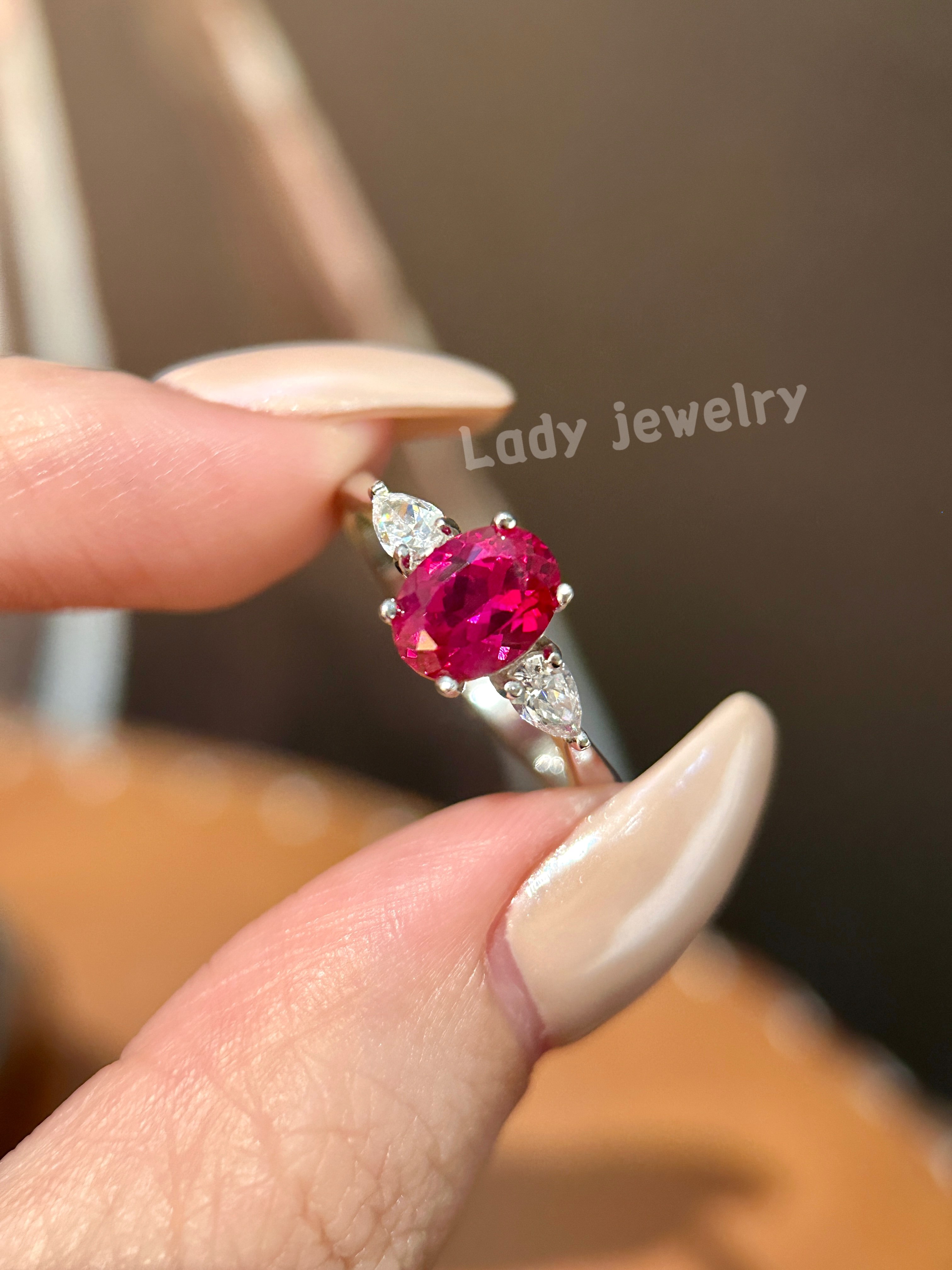 Lady's Classic Three-Stone 1.5 Carat Lab-Grown Ruby Pigeon Blood Red Niche Light Luxury Versatile Diamond Ring