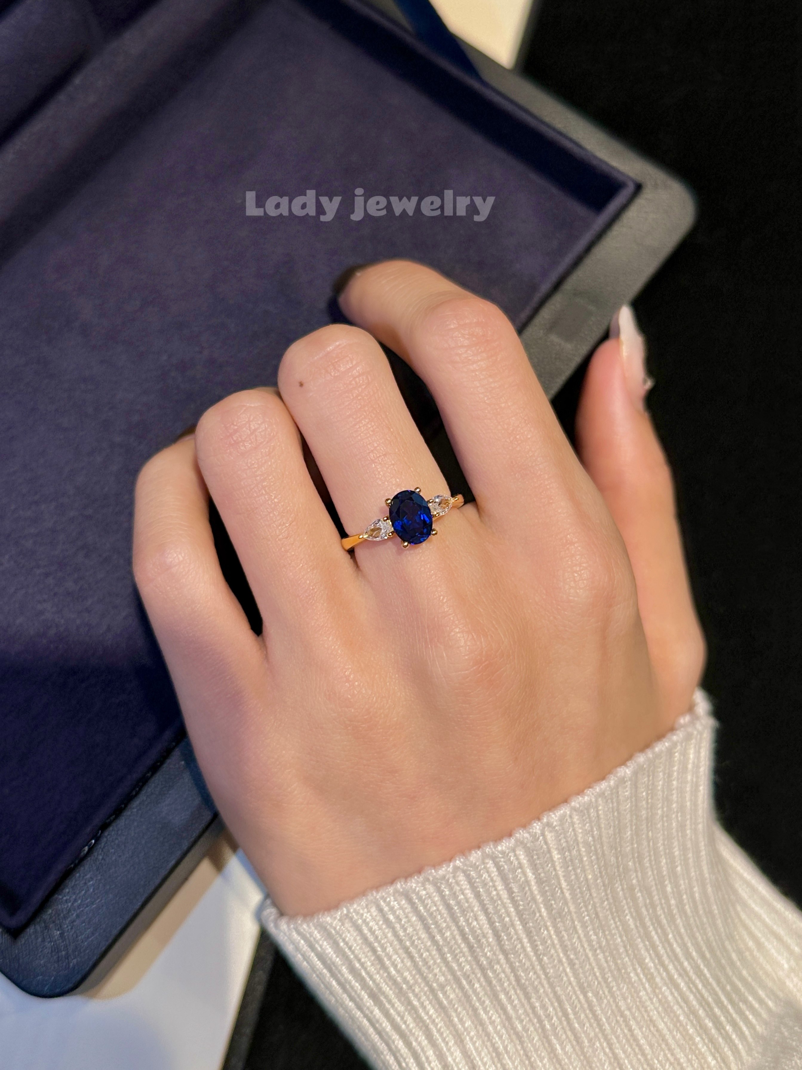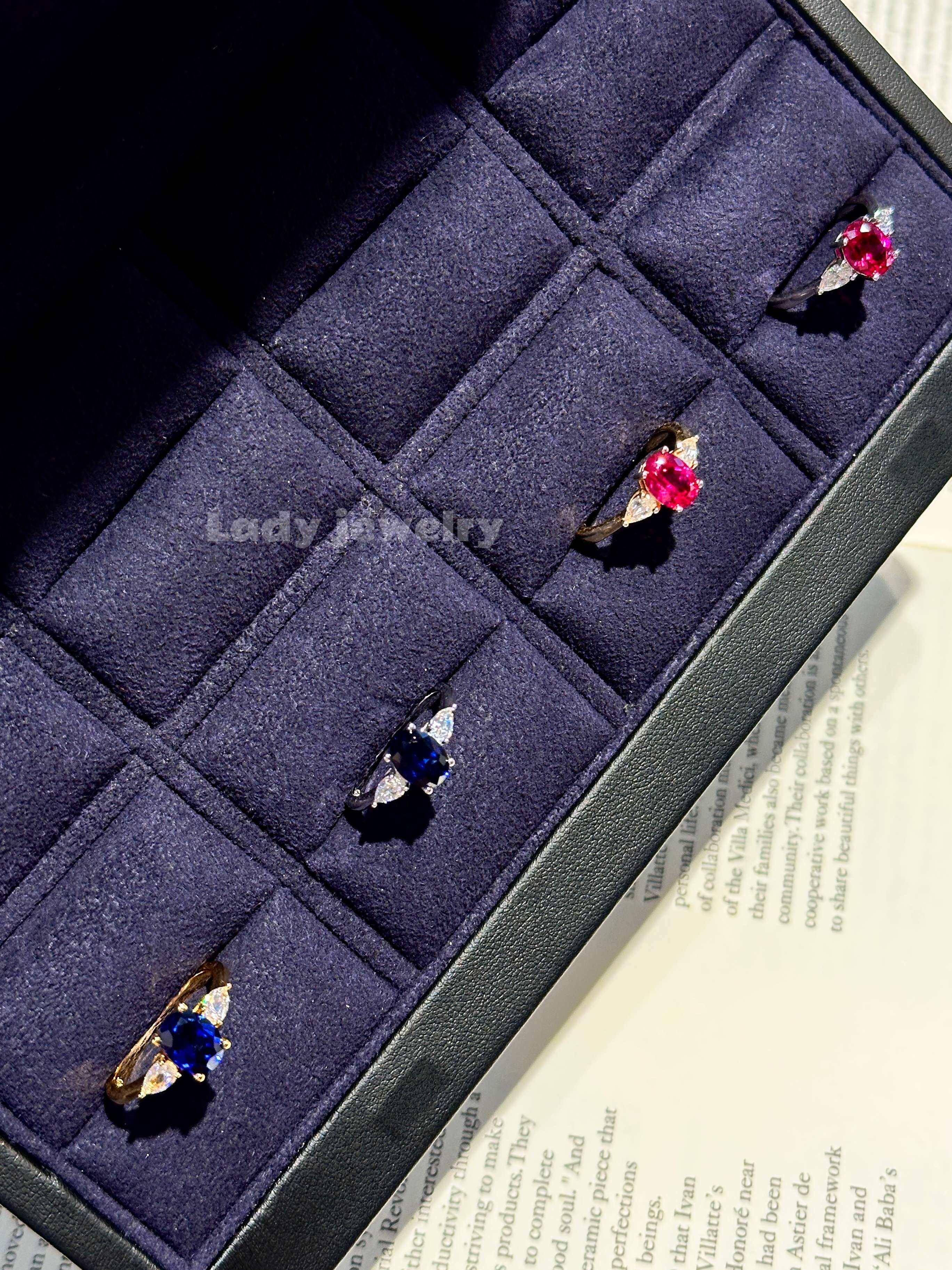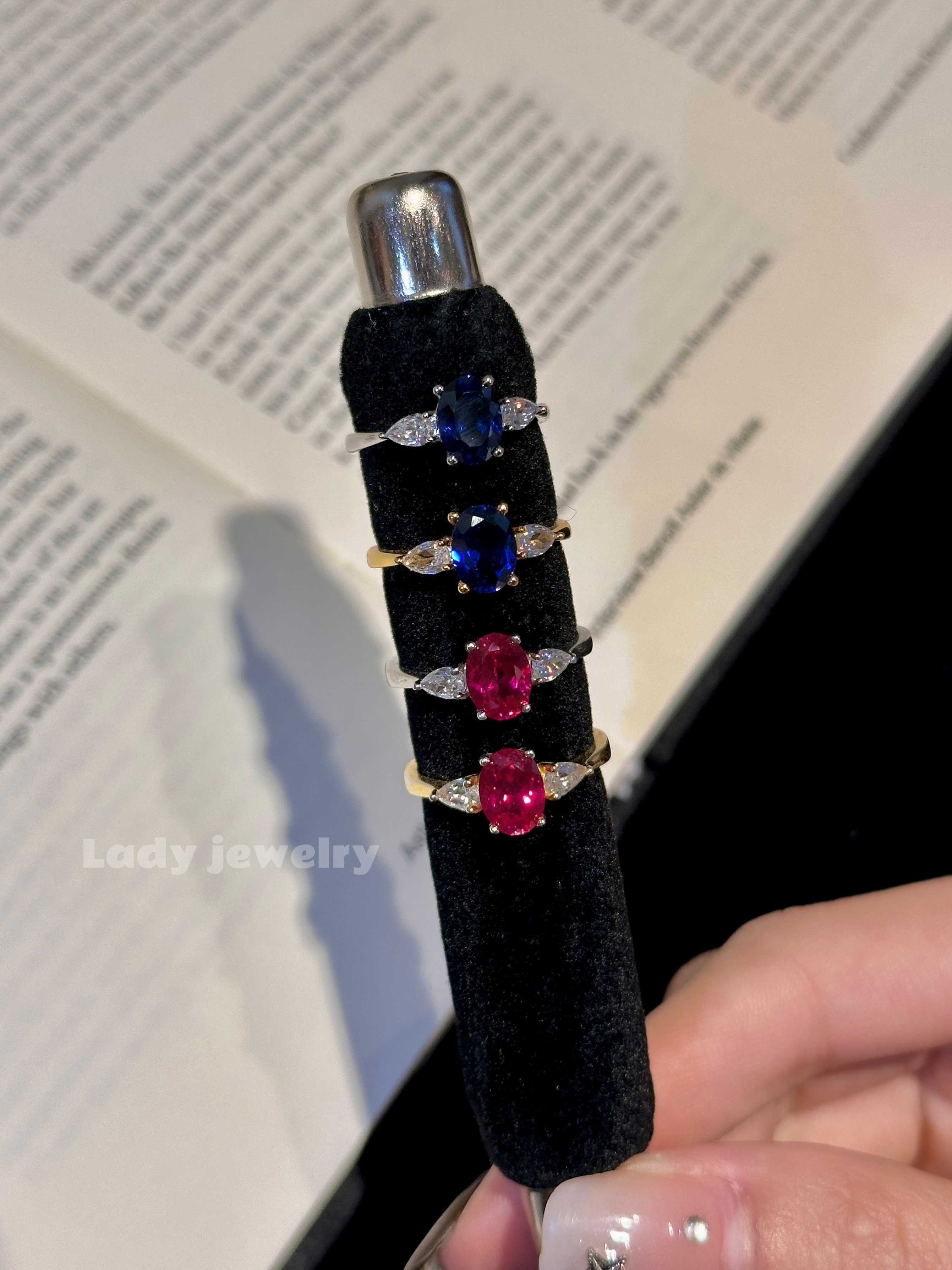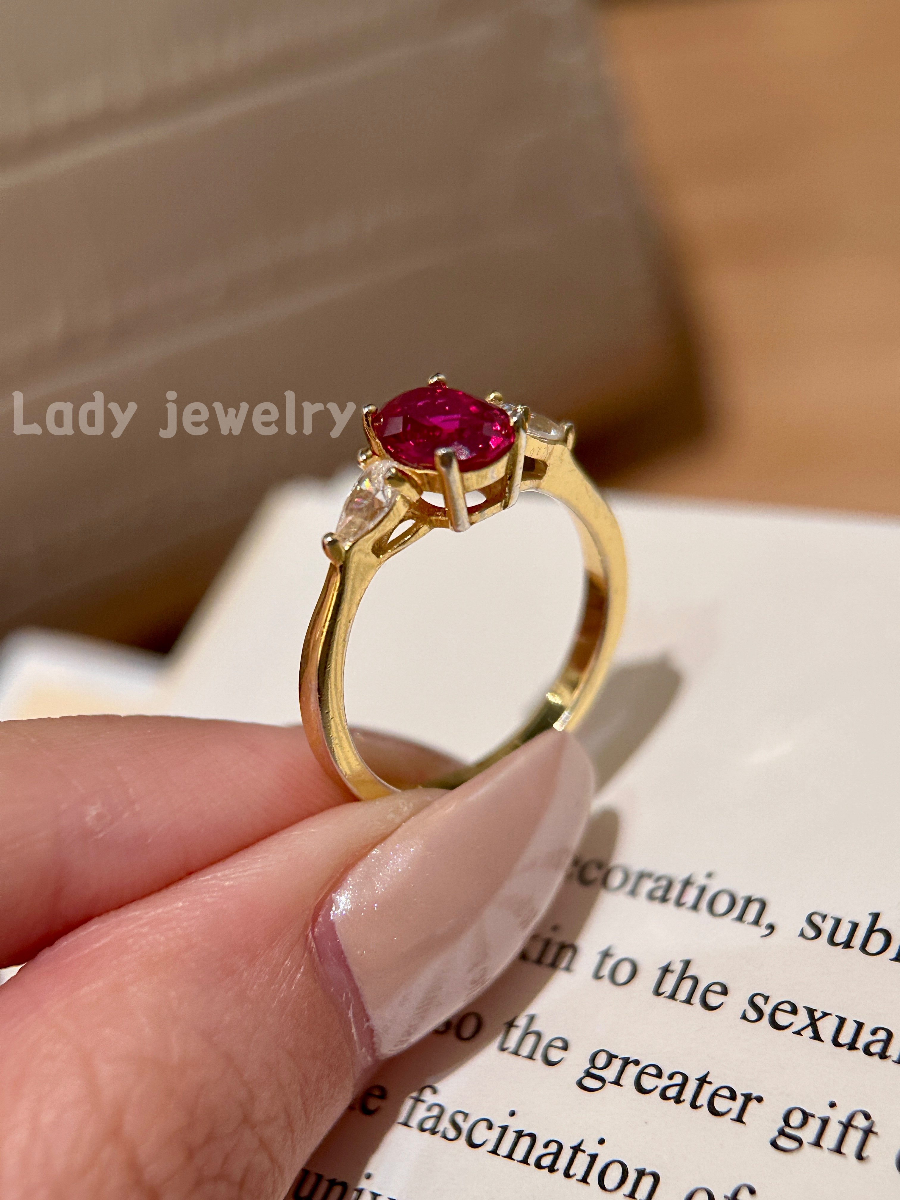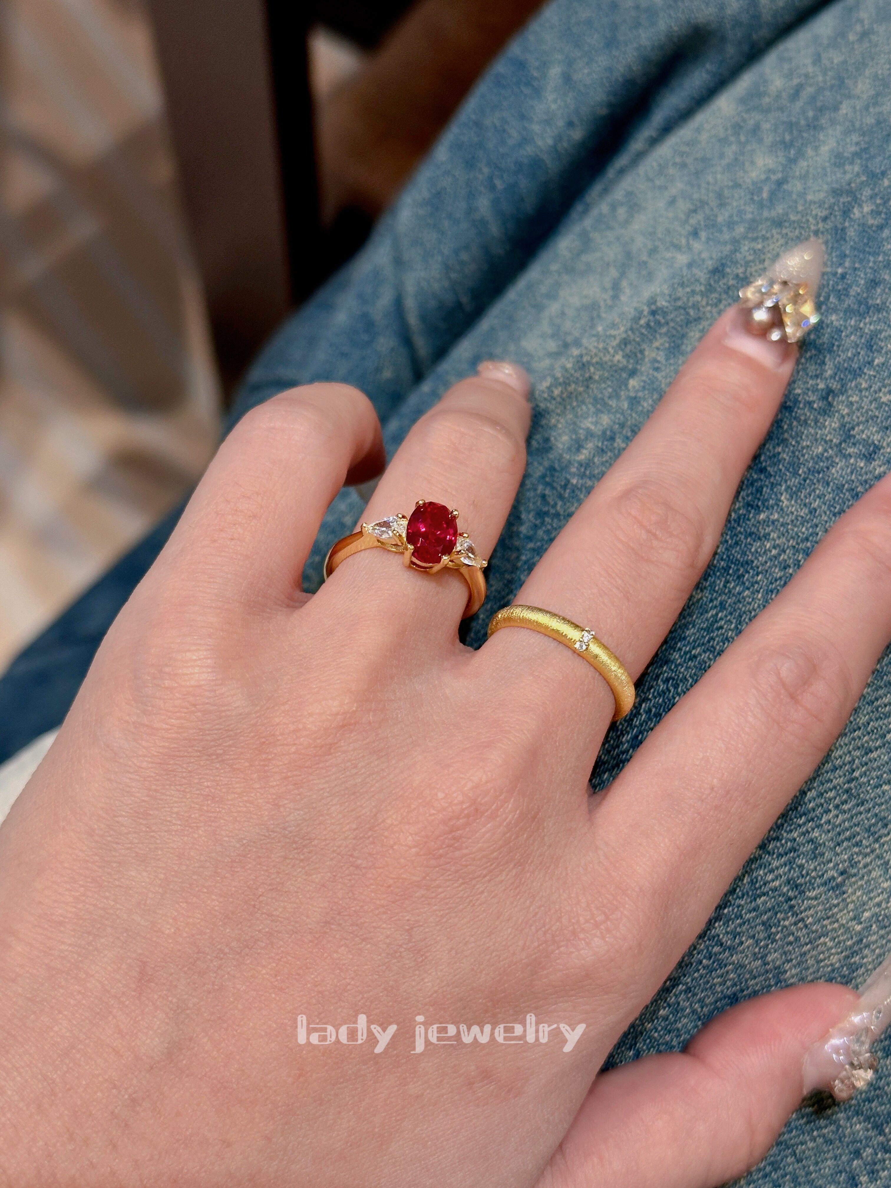 Lady's Classic Three-Stone 1.5 Carat Lab-Grown Ruby Pigeon Blood Red Niche Light Luxury Versatile Diamond Ring