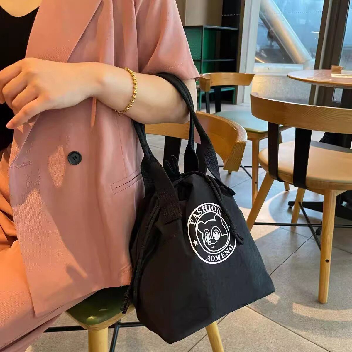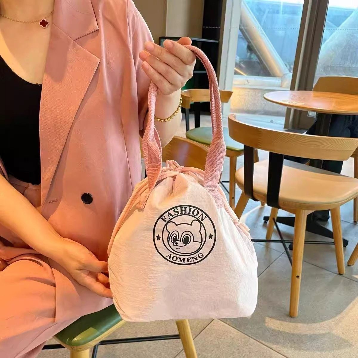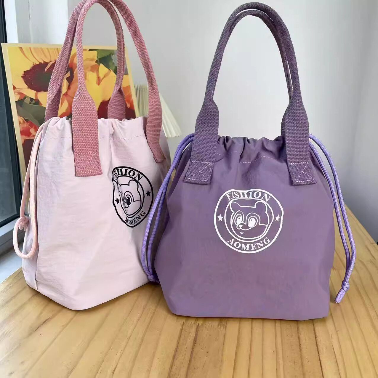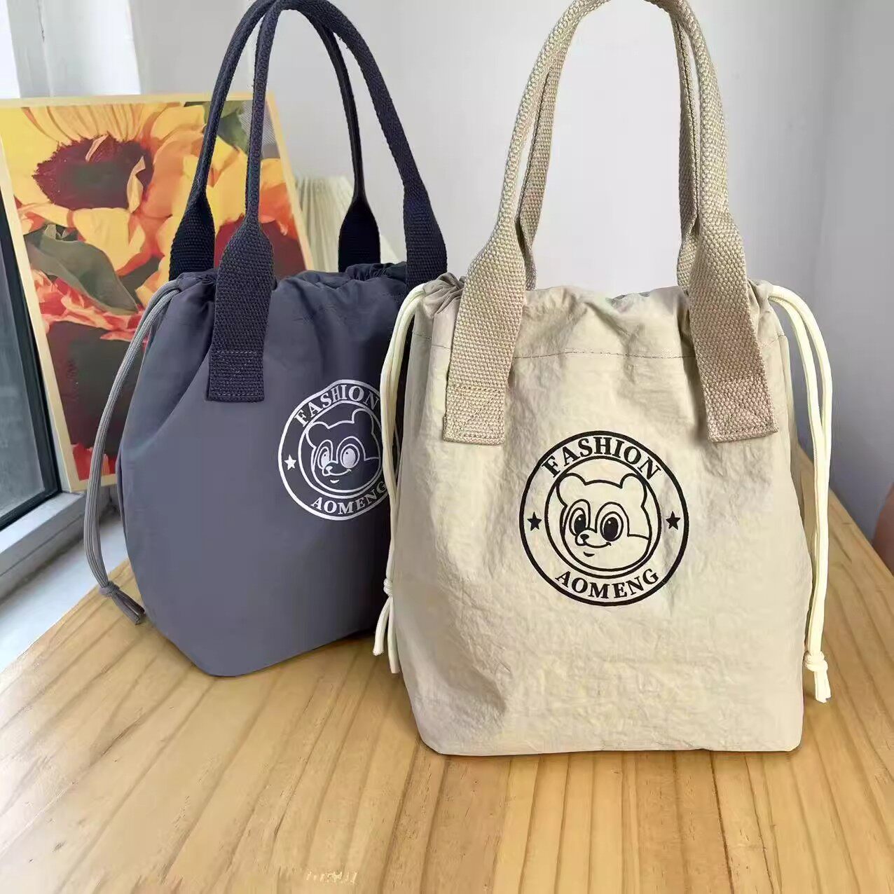 New Fashionable Water-Repellent Drawstring Bag, Portable Insulated Lunch Box Bag, Commuter-Friendly, Portable Mommy Bag 2508