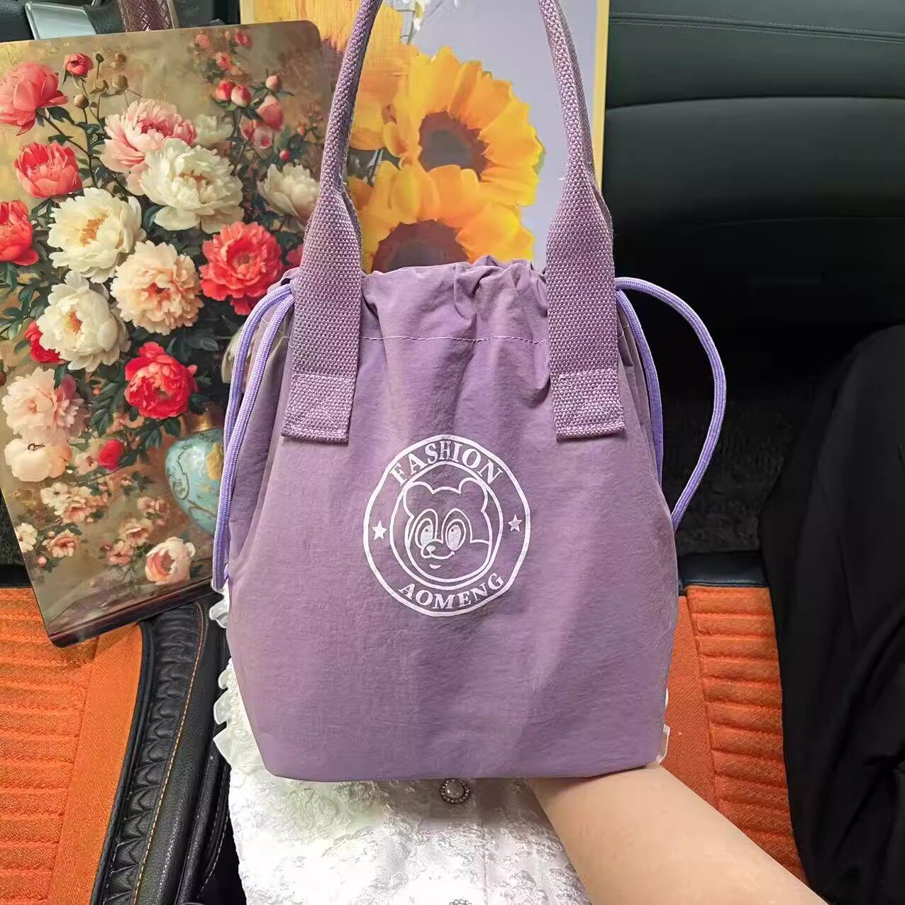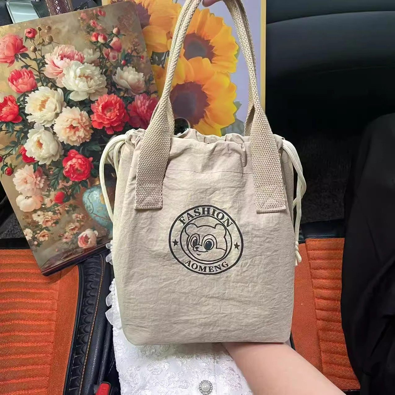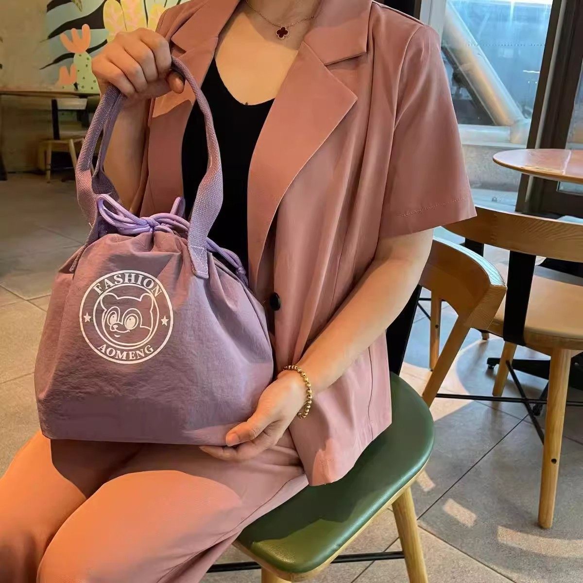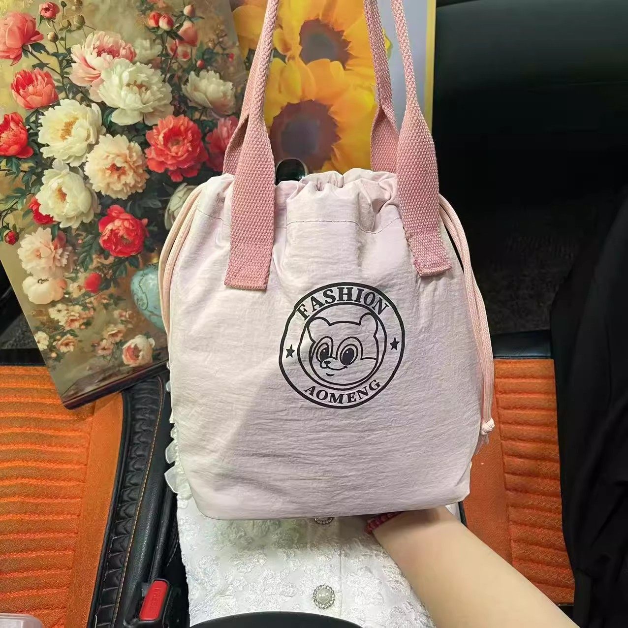 New Fashionable Water-Repellent Drawstring Bag, Portable Insulated Lunch Box Bag, Commuter-Friendly, Portable Mommy Bag 2508