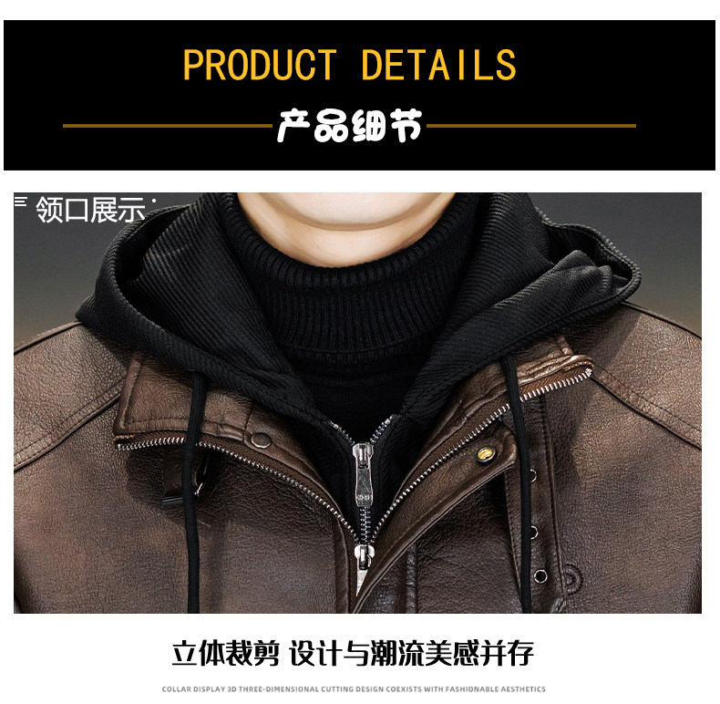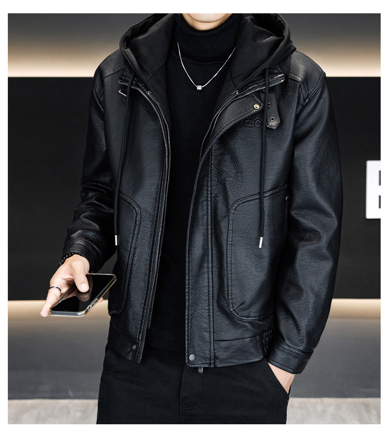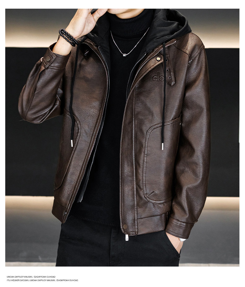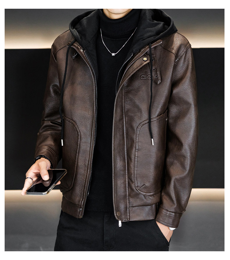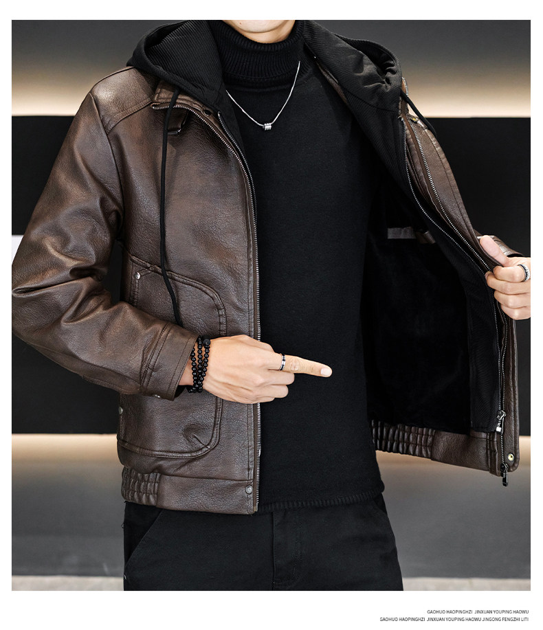 Men's Leather Jacket 2026 New Style Fleece-Lined Thickened Men's Faux Two-Piece Leather Jacket Warm Hooded Winter Clothing