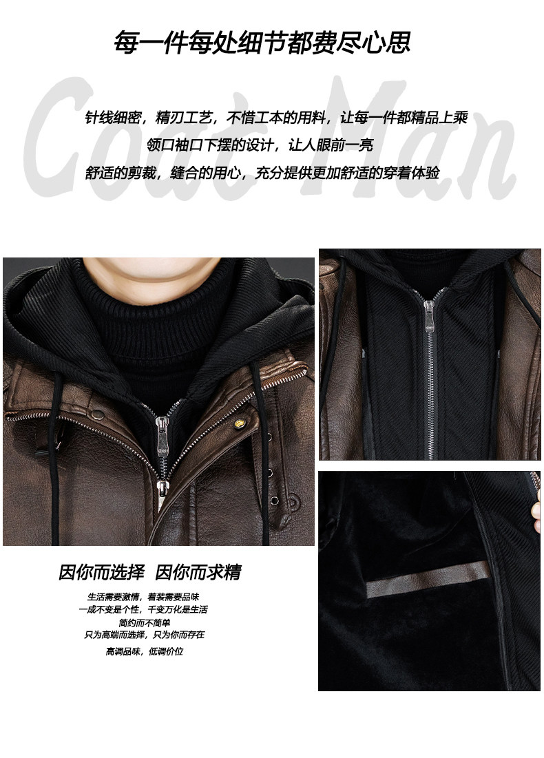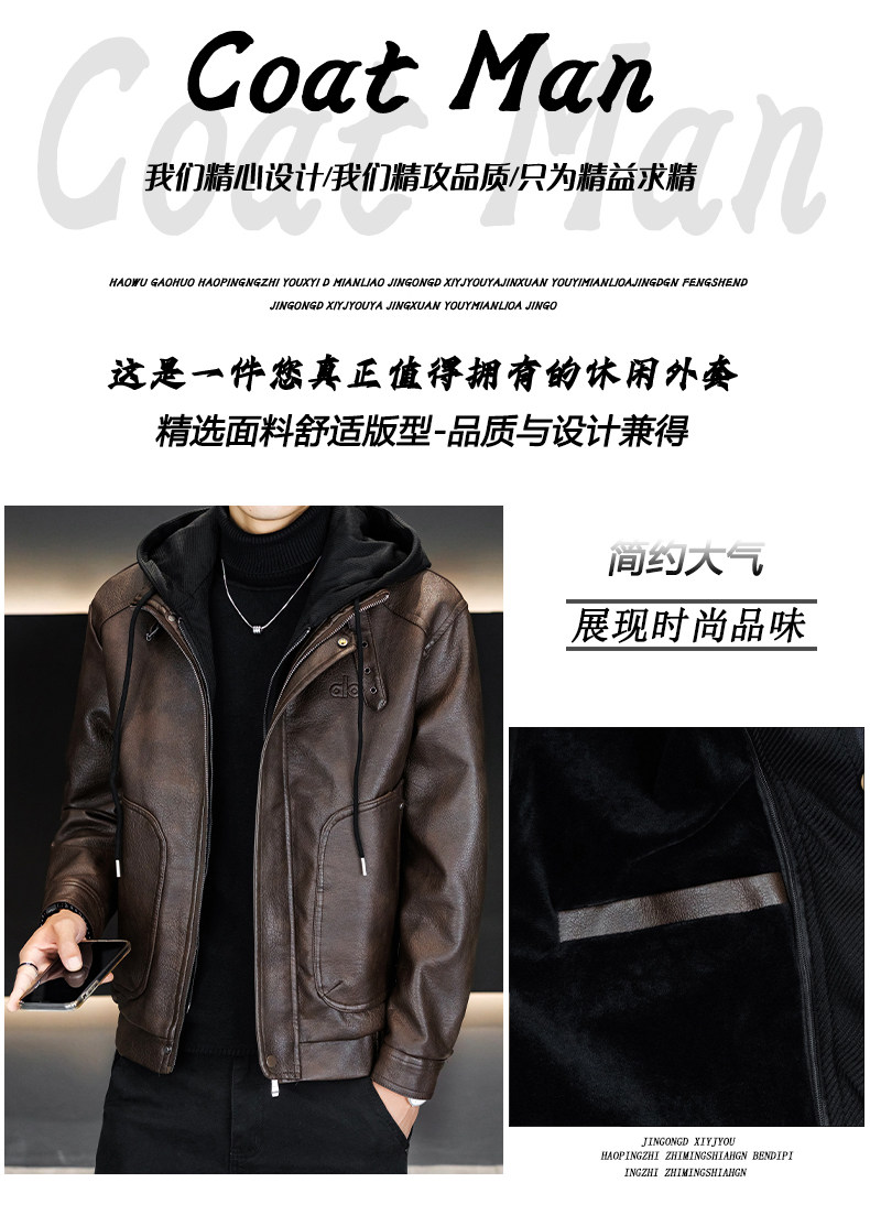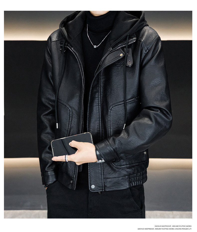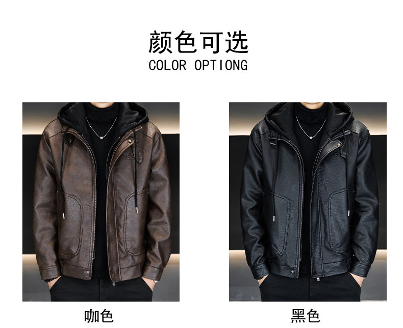 Men's Leather Jacket 2026 New Style Fleece-Lined Thickened Men's Faux Two-Piece Leather Jacket Warm Hooded Winter Clothing