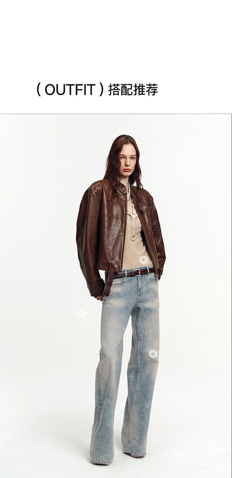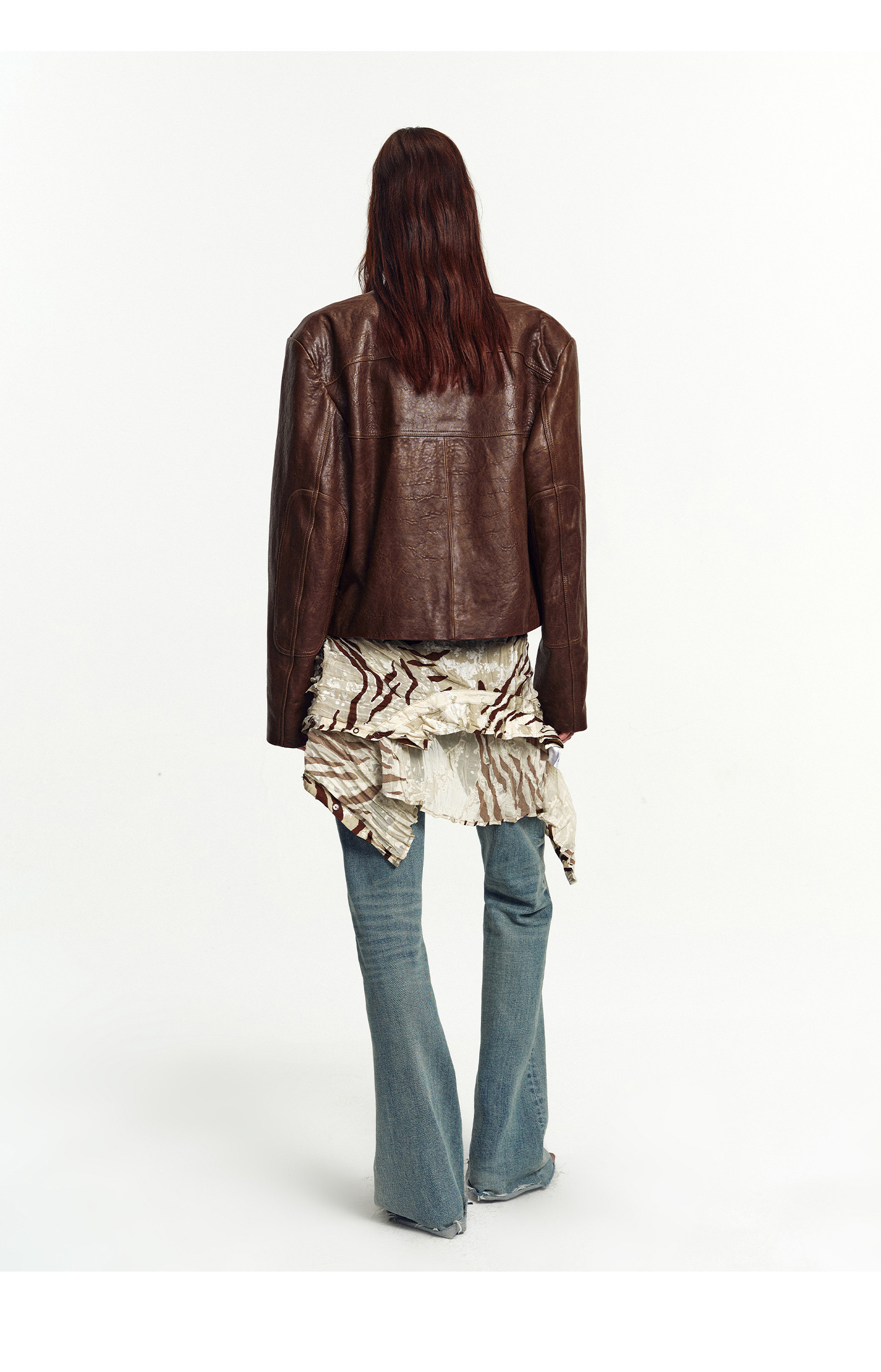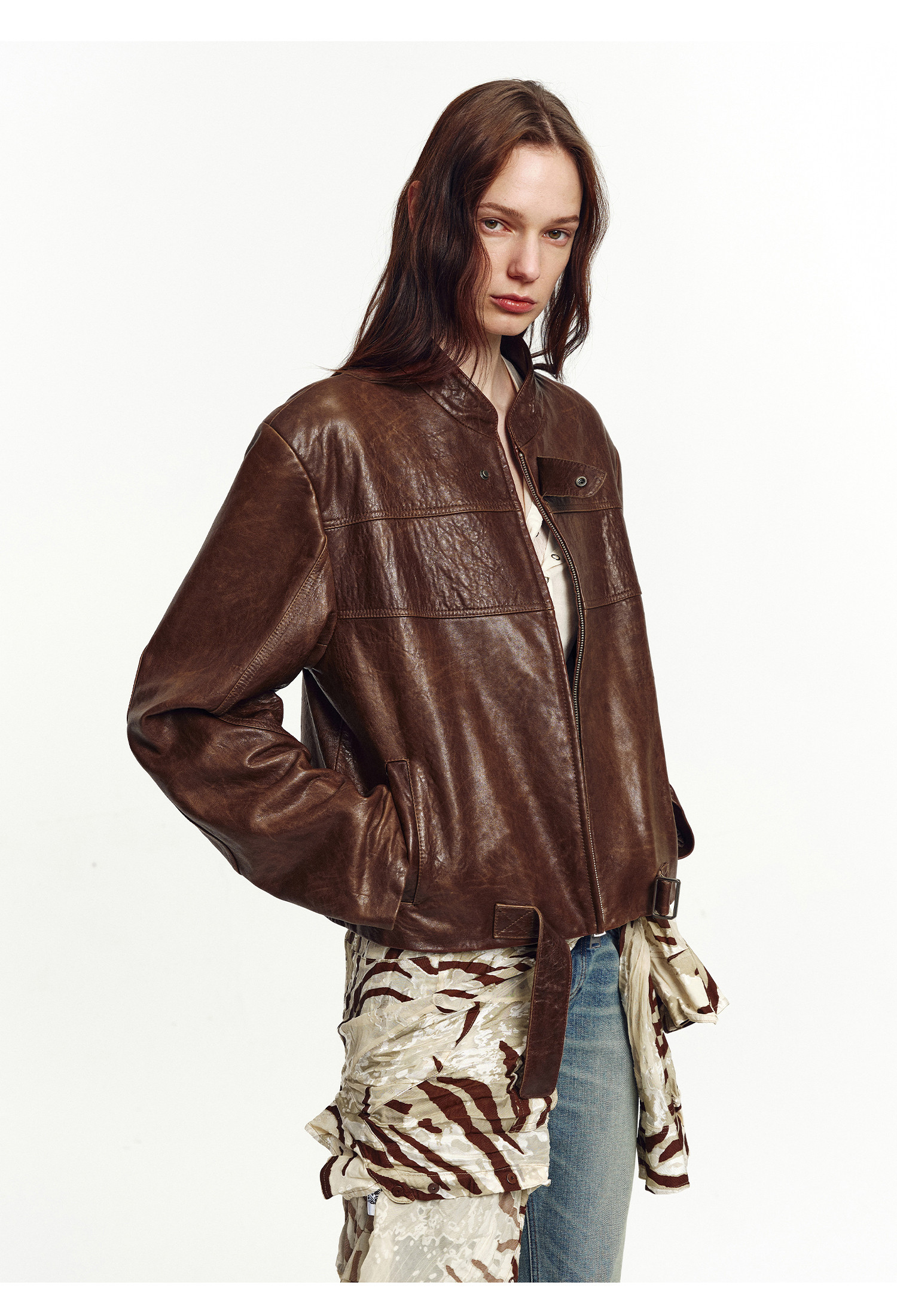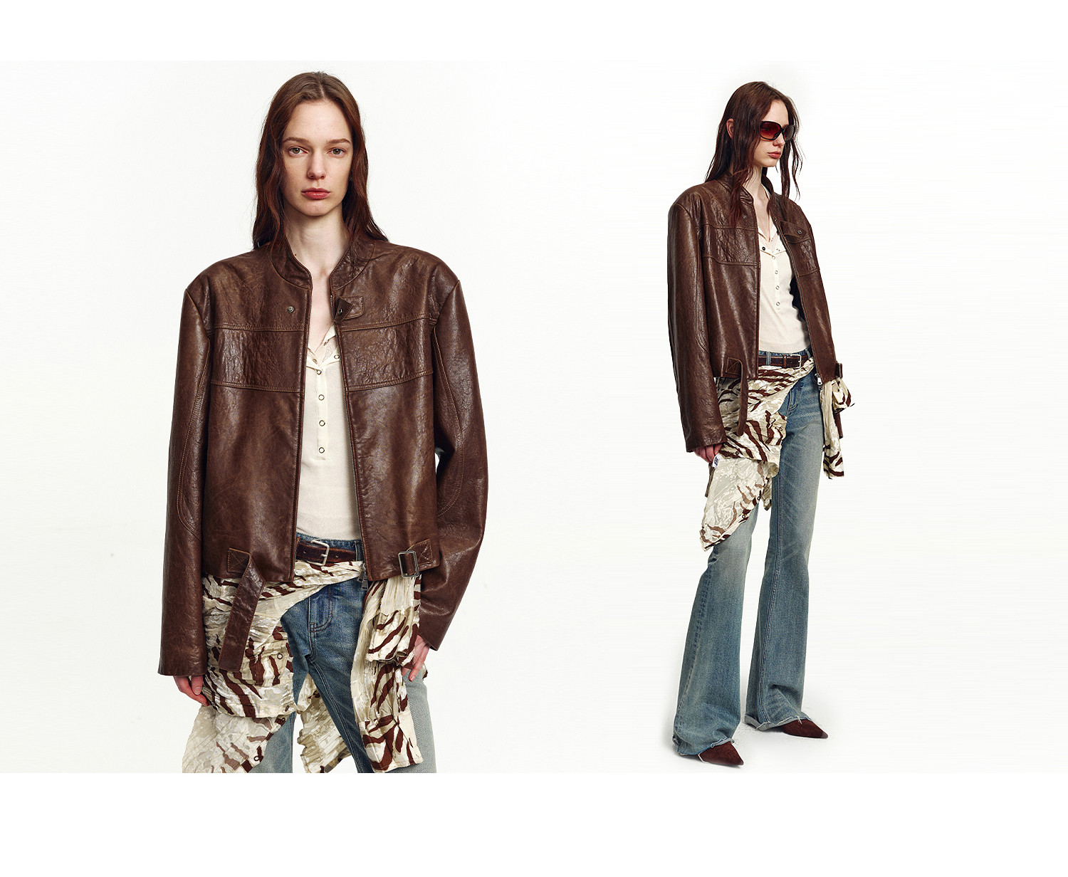 [Same Style as Huang Baobao] Fu Zhi'En Caramel Mountain Imported Oil Wax Vegetable-Tanned Sheepskin Motorcycle Genuine Leather Jacket