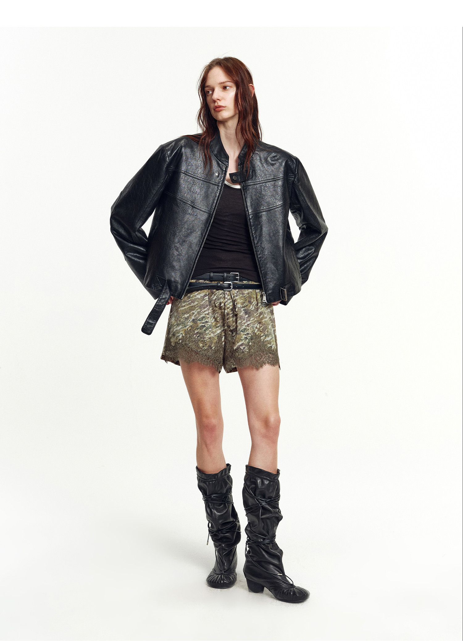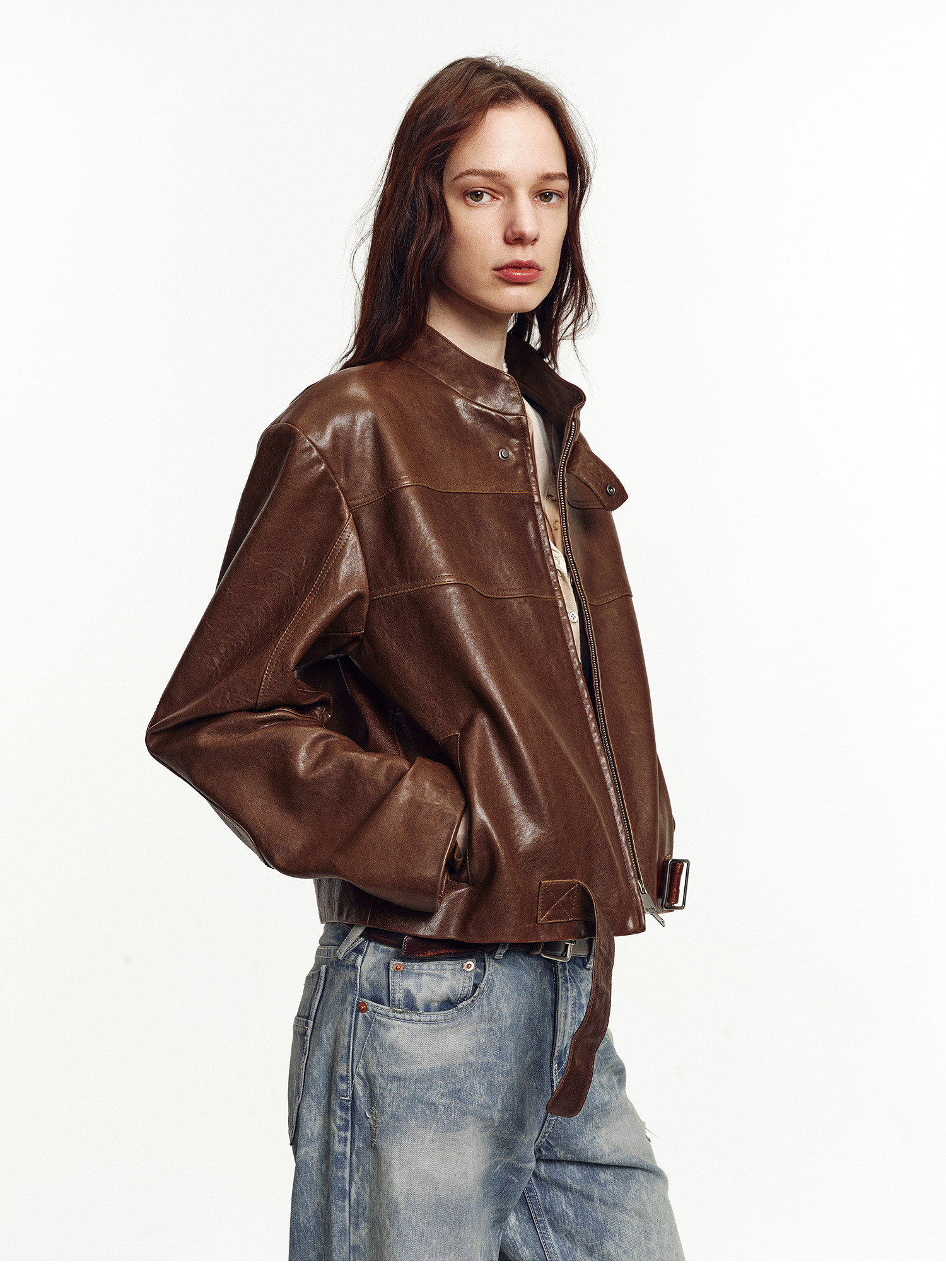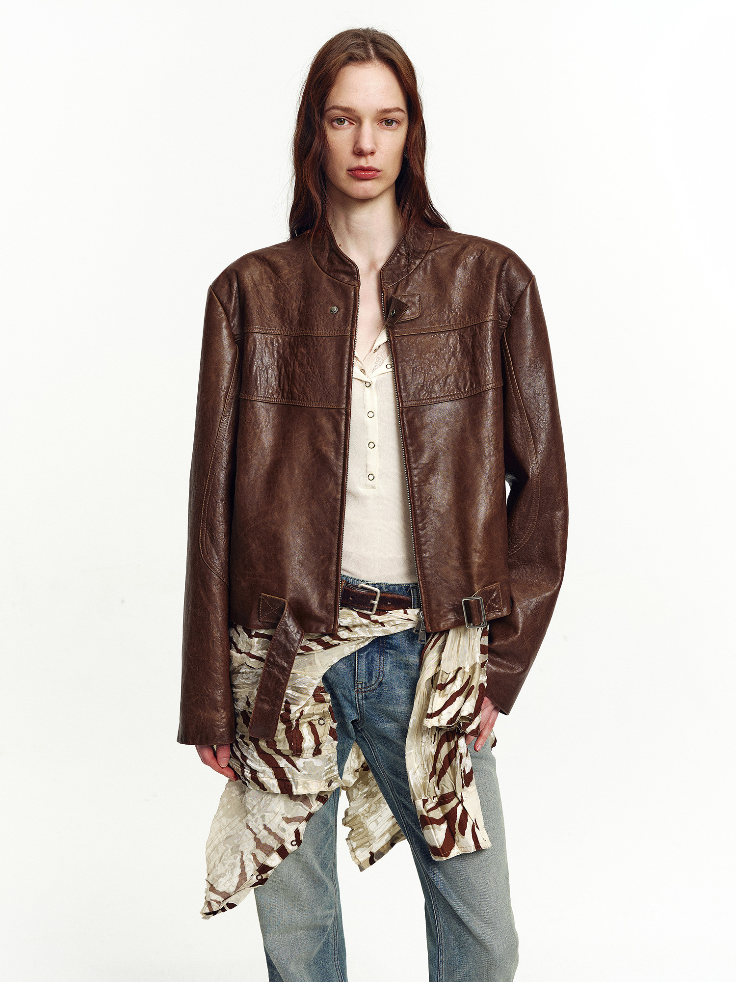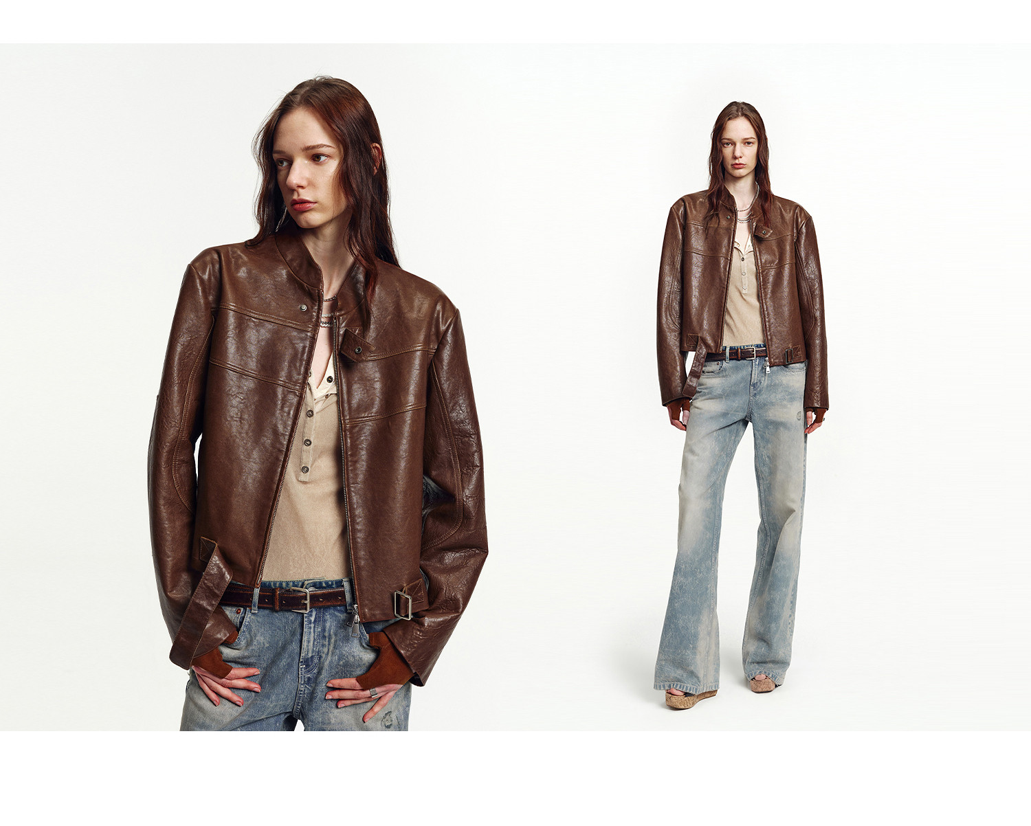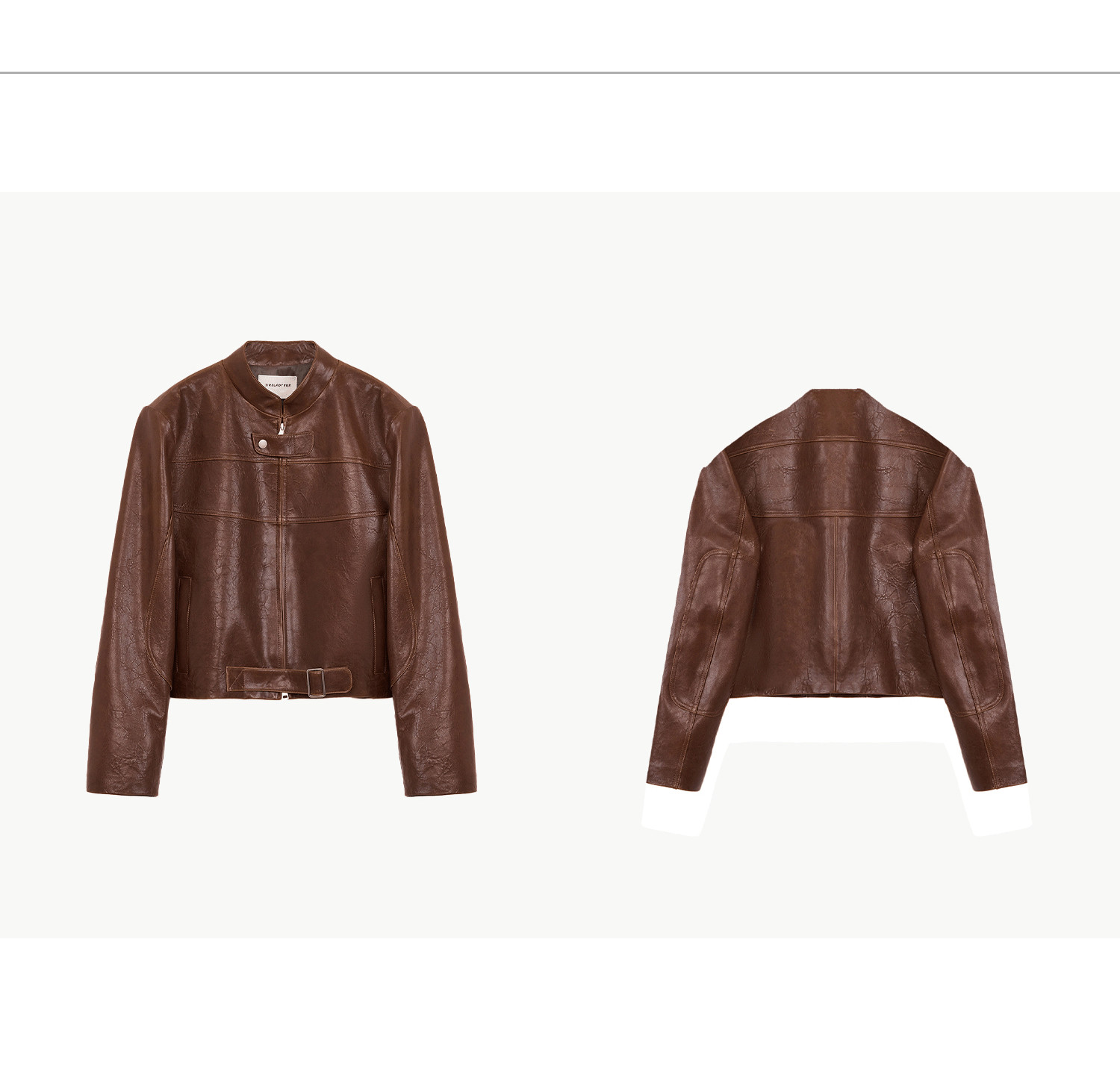 [Same Style as Huang Baobao] Fu Zhi'En Caramel Mountain Imported Oil Wax Vegetable-Tanned Sheepskin Motorcycle Genuine Leather Jacket