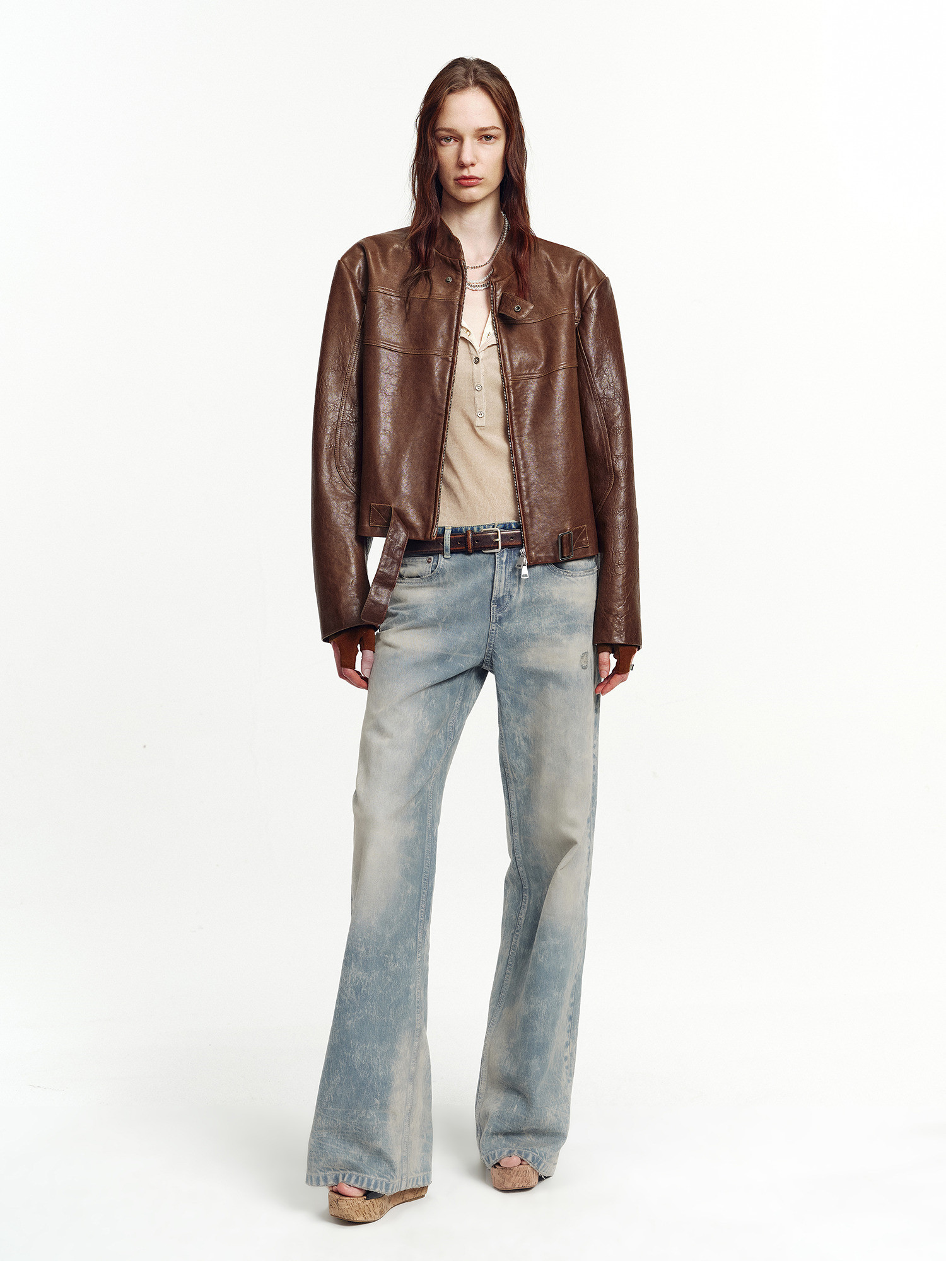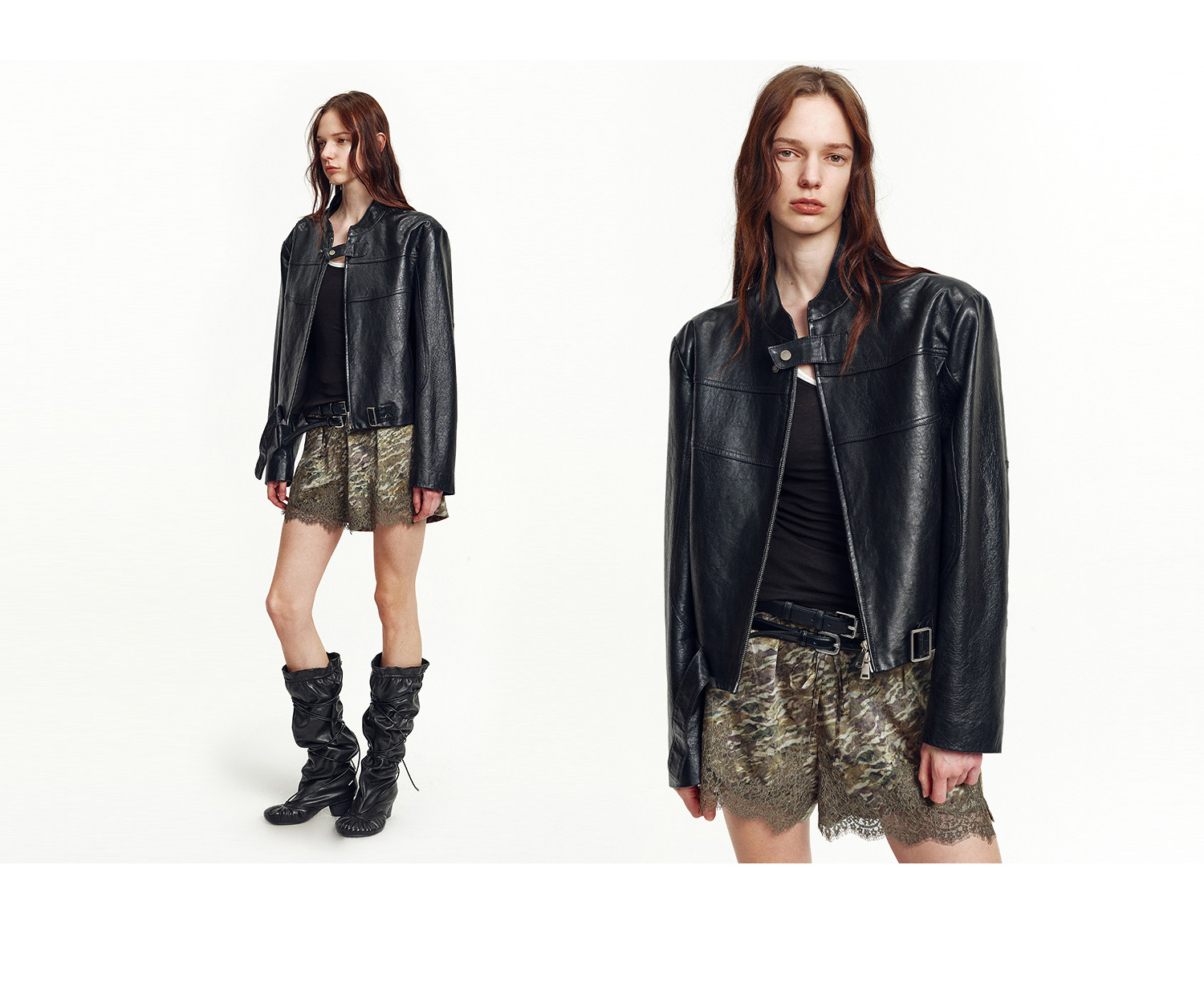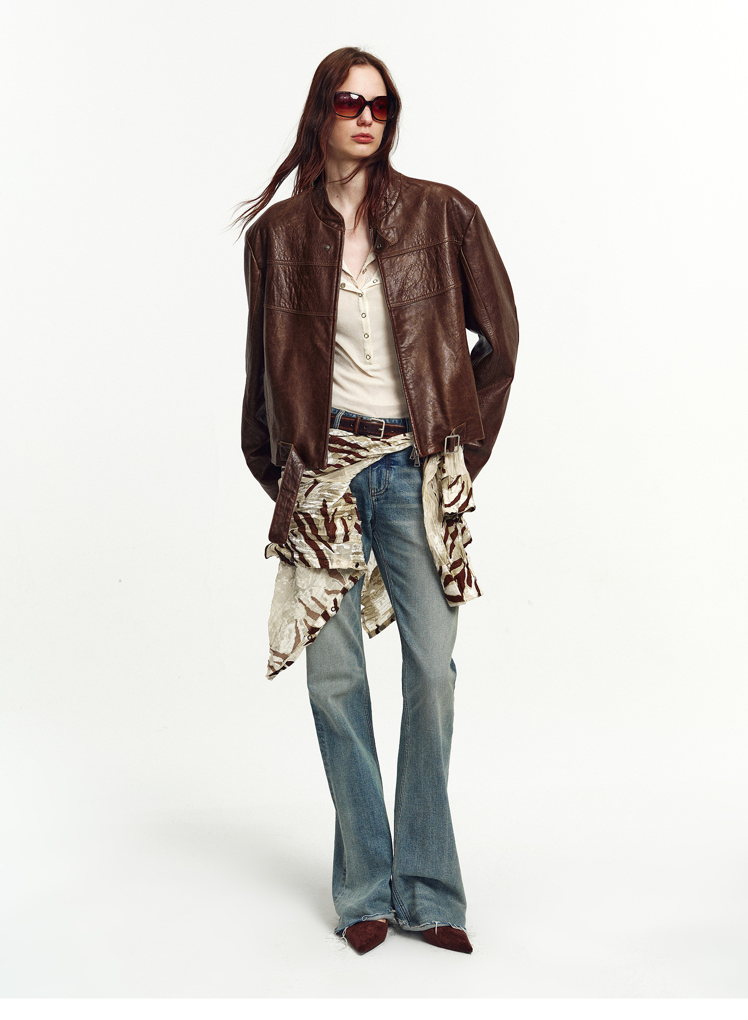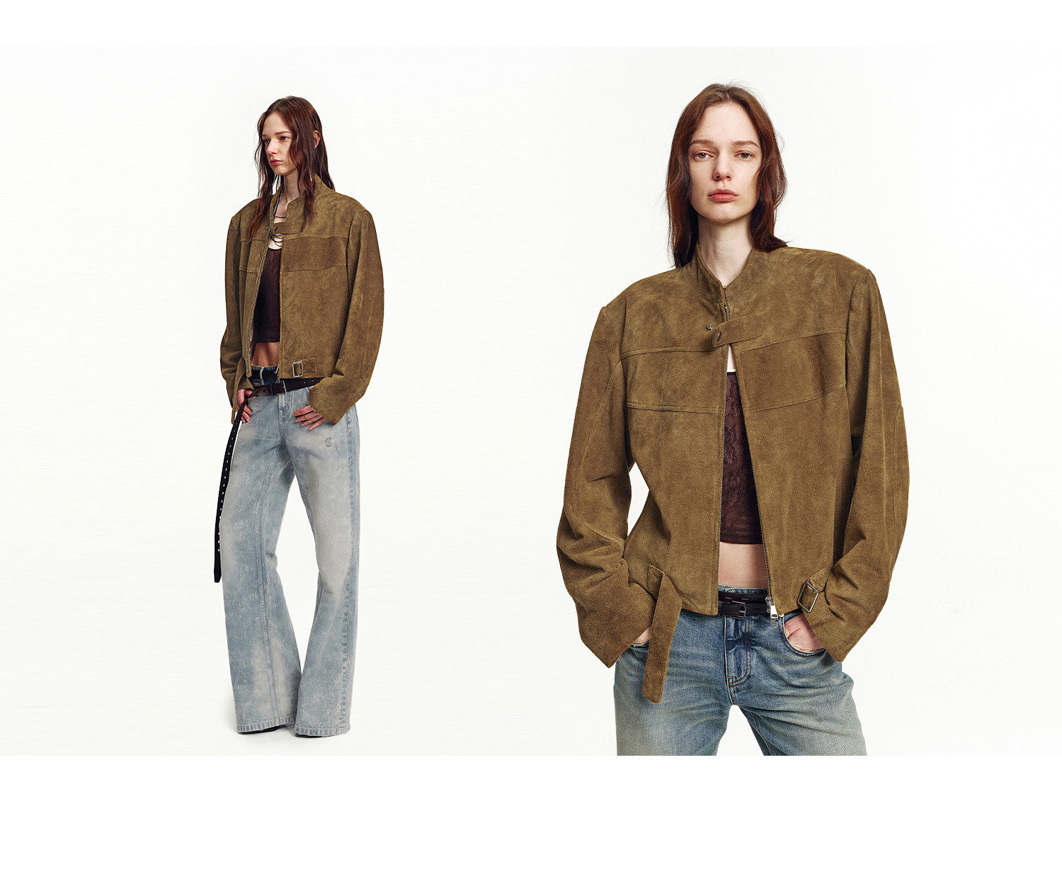 [Same Style as Huang Baobao] Fu Zhi'En Caramel Mountain Imported Oil Wax Vegetable-Tanned Sheepskin Motorcycle Genuine Leather Jacket